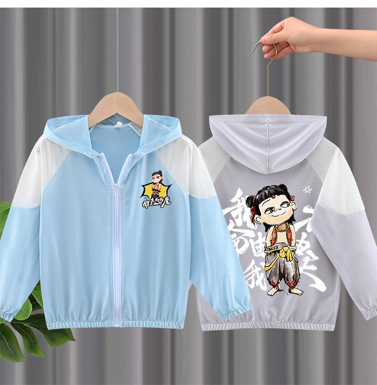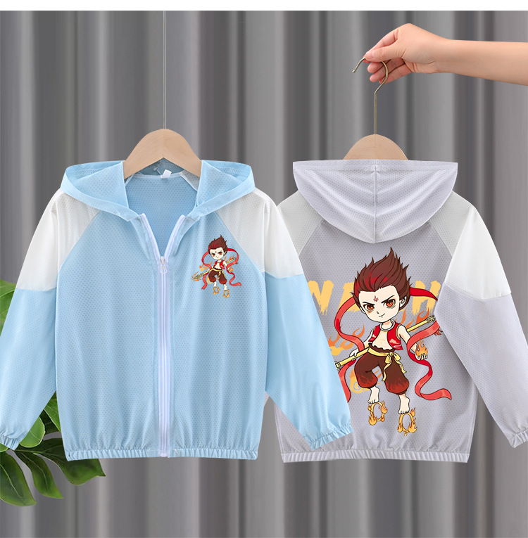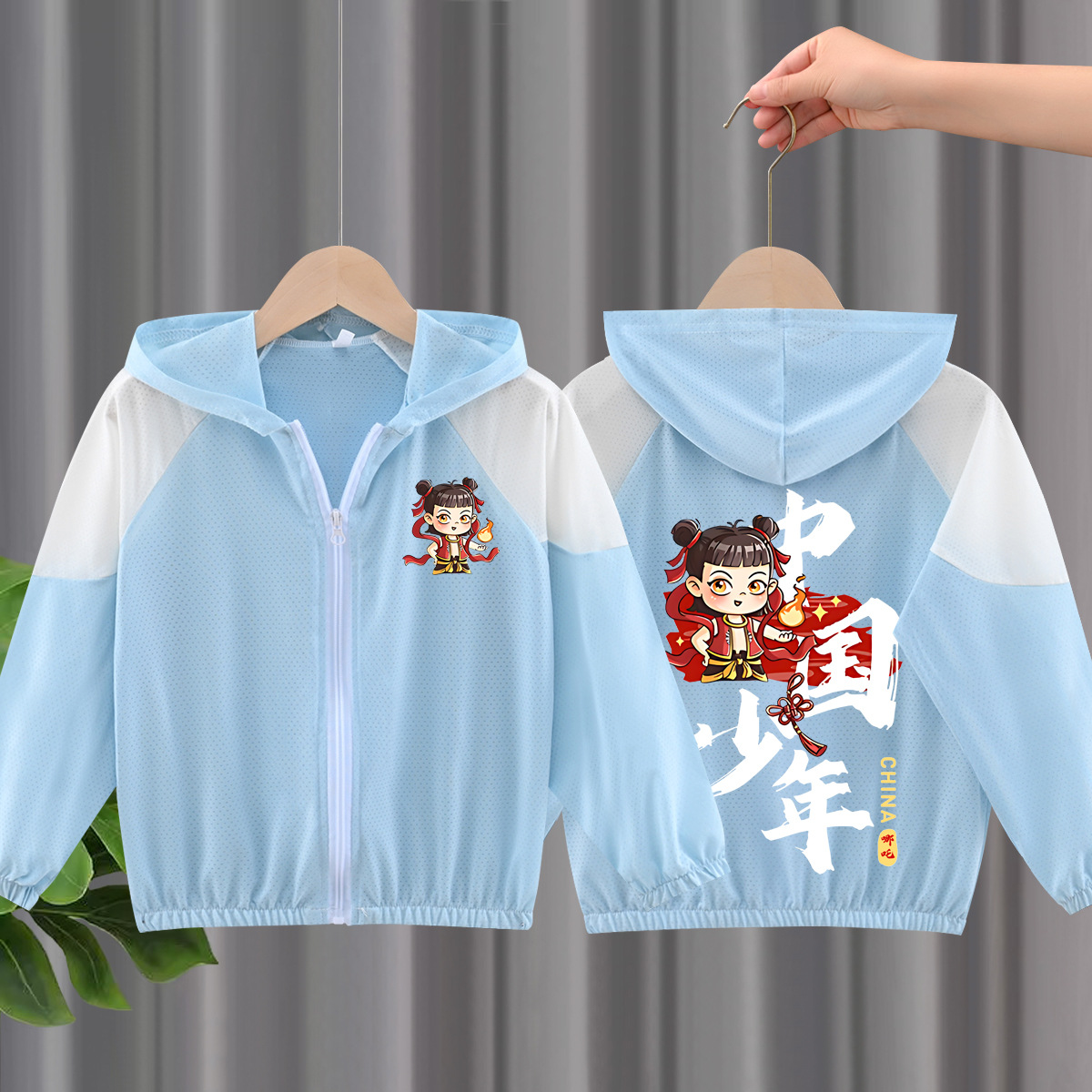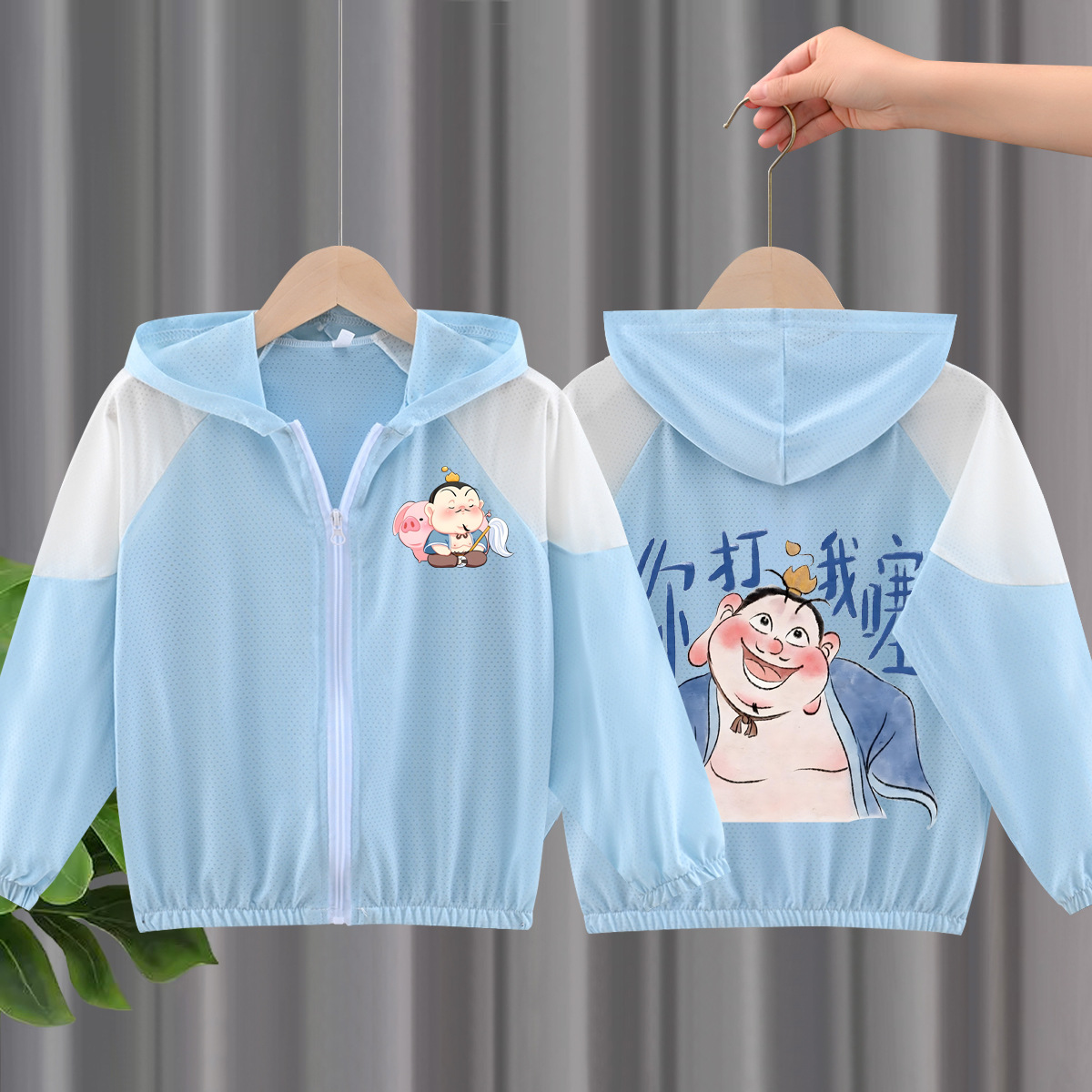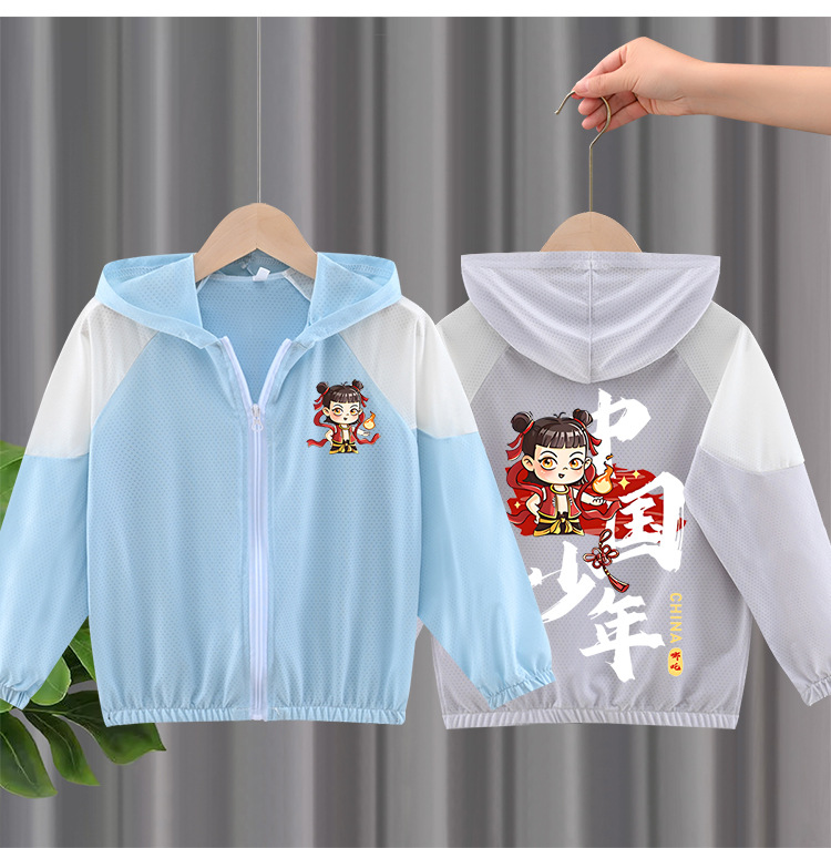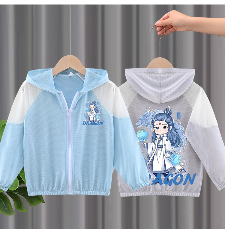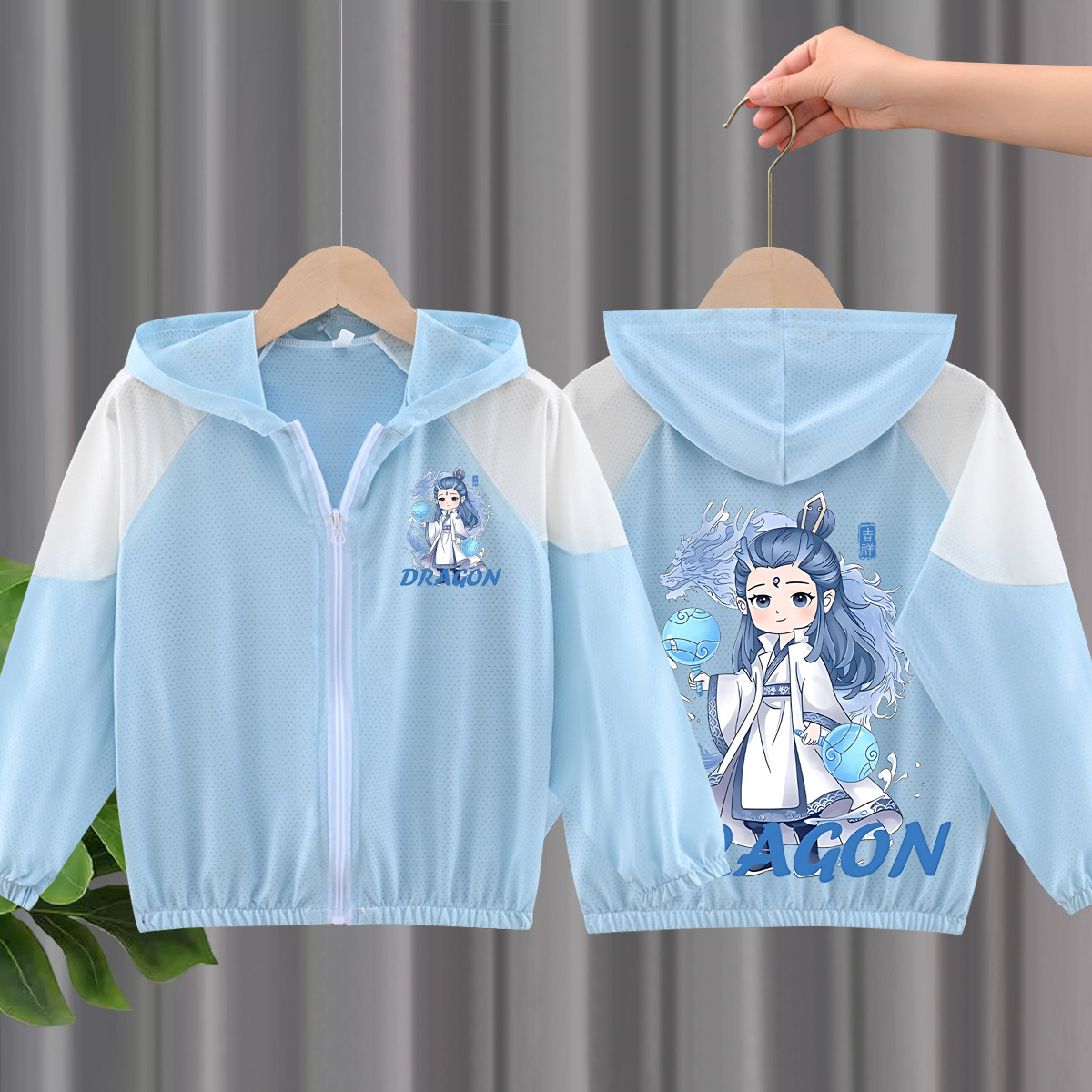 어린이 선 스크린 의류 2025 여름 새 소년 얇은 아이스 실크 재킷 소년을위한 멋진 통기성 선 스크린 의류스토어 가기