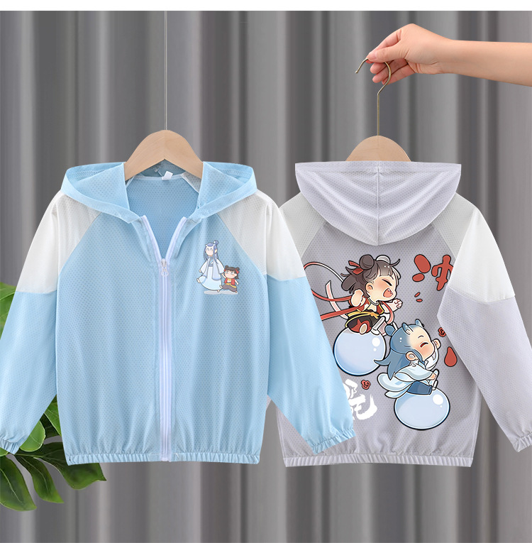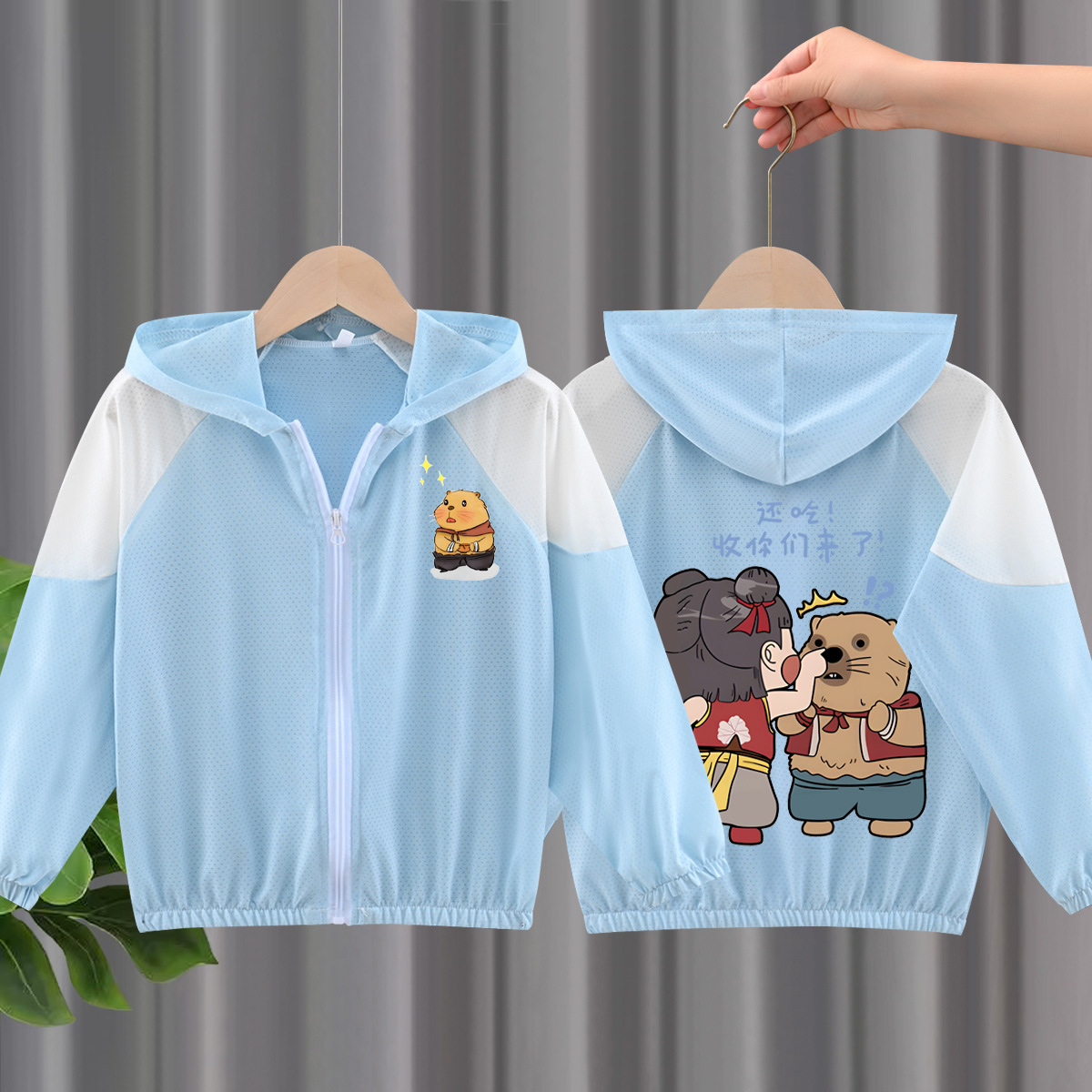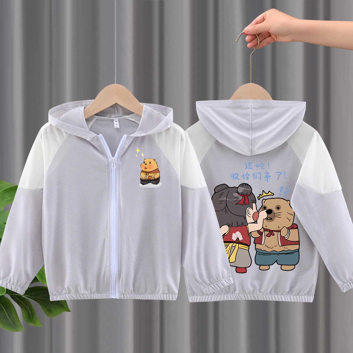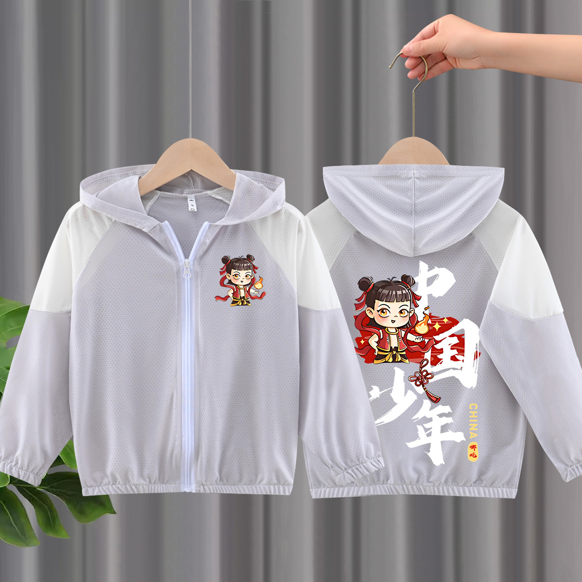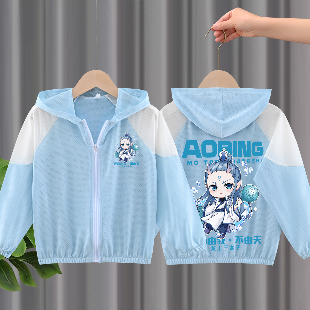 어린이 선 스크린 의류 2025 여름 새 소년 얇은 아이스 실크 재킷 소년을위한 멋진 통기성 선 스크린 의류스토어 가기