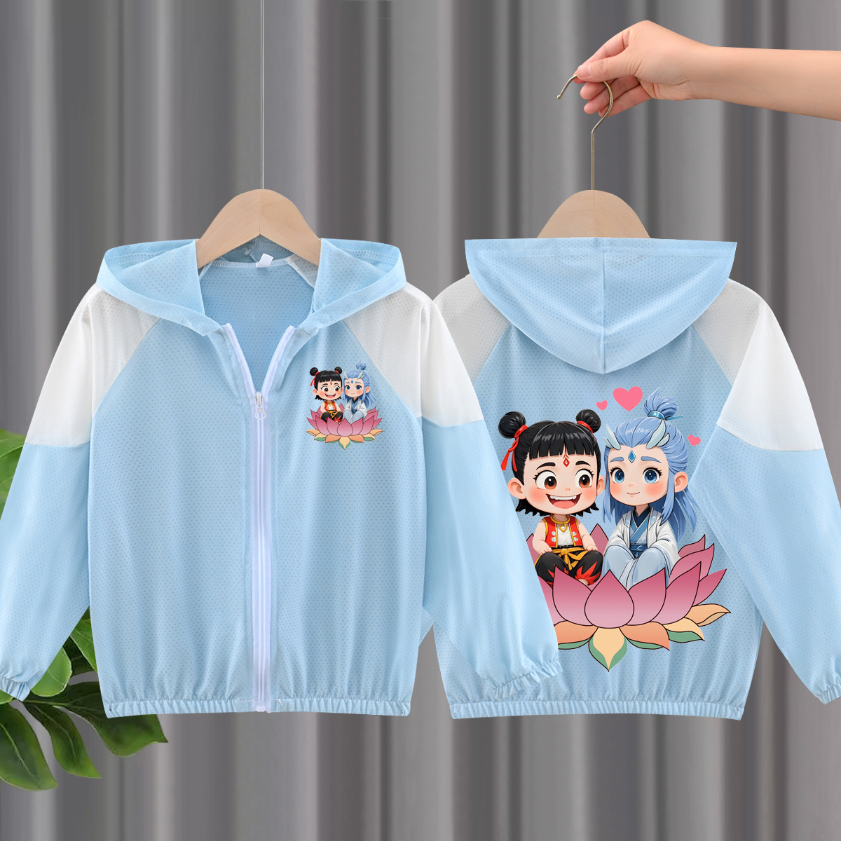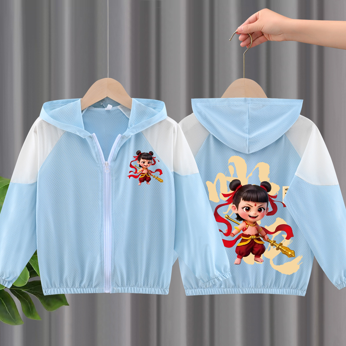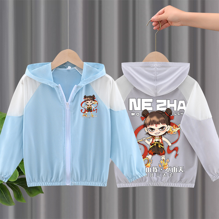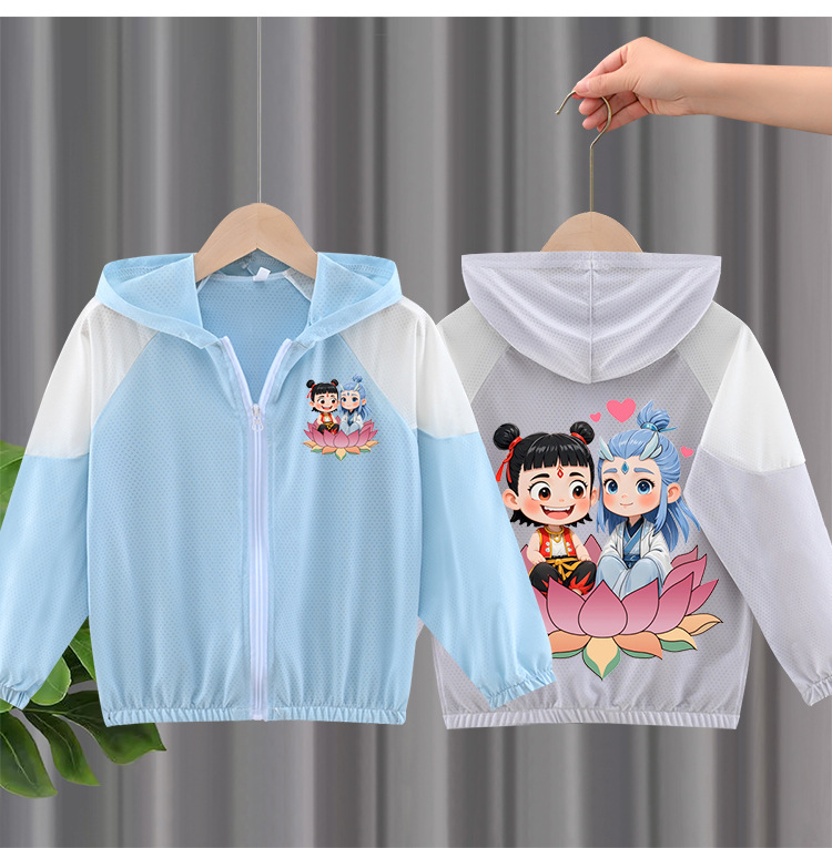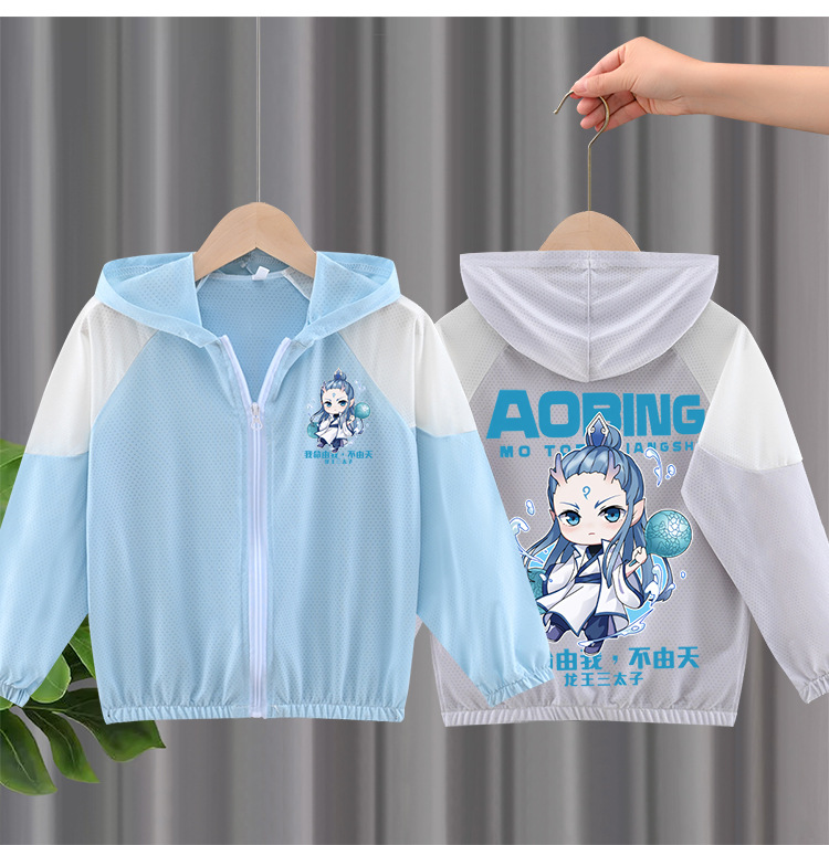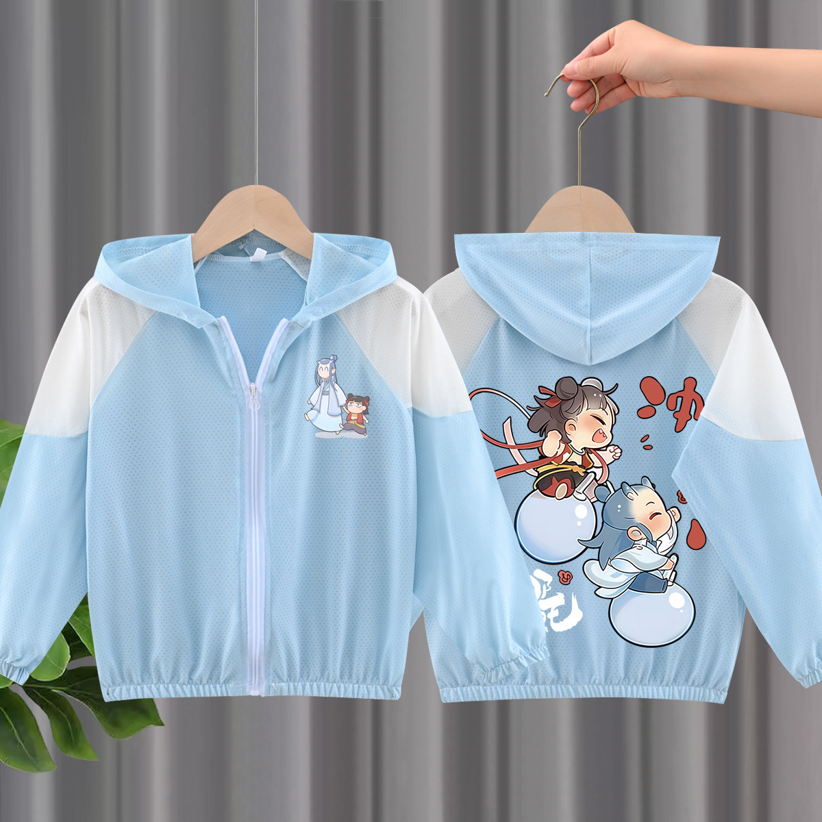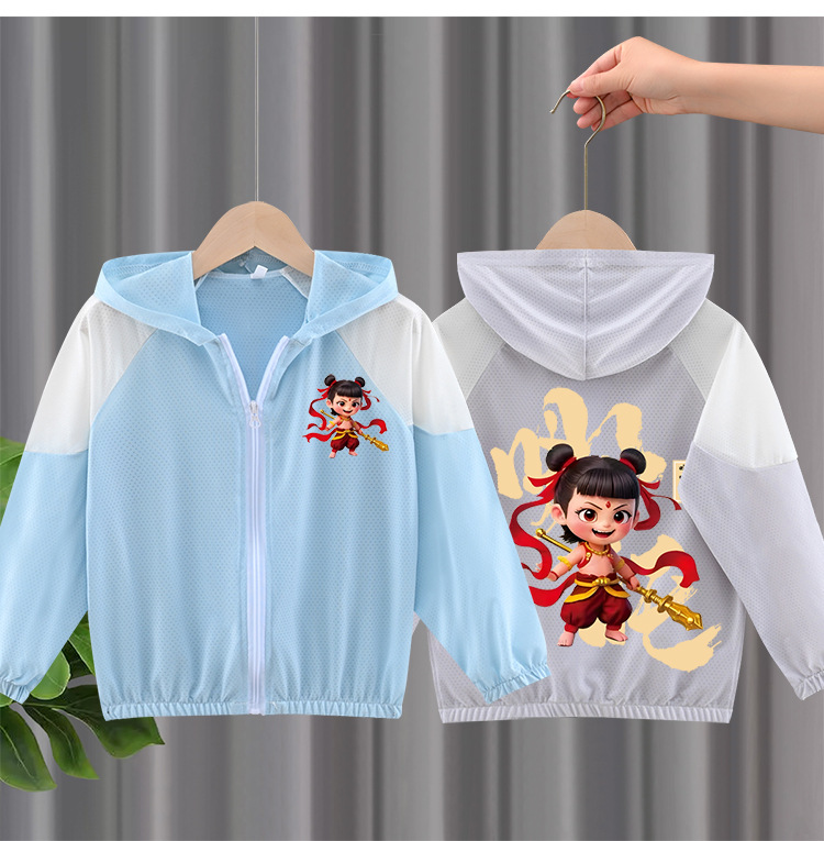 어린이 선 스크린 의류 2025 여름 새 소년 얇은 아이스 실크 재킷 소년을위한 멋진 통기성 선 스크린 의류스토어 가기