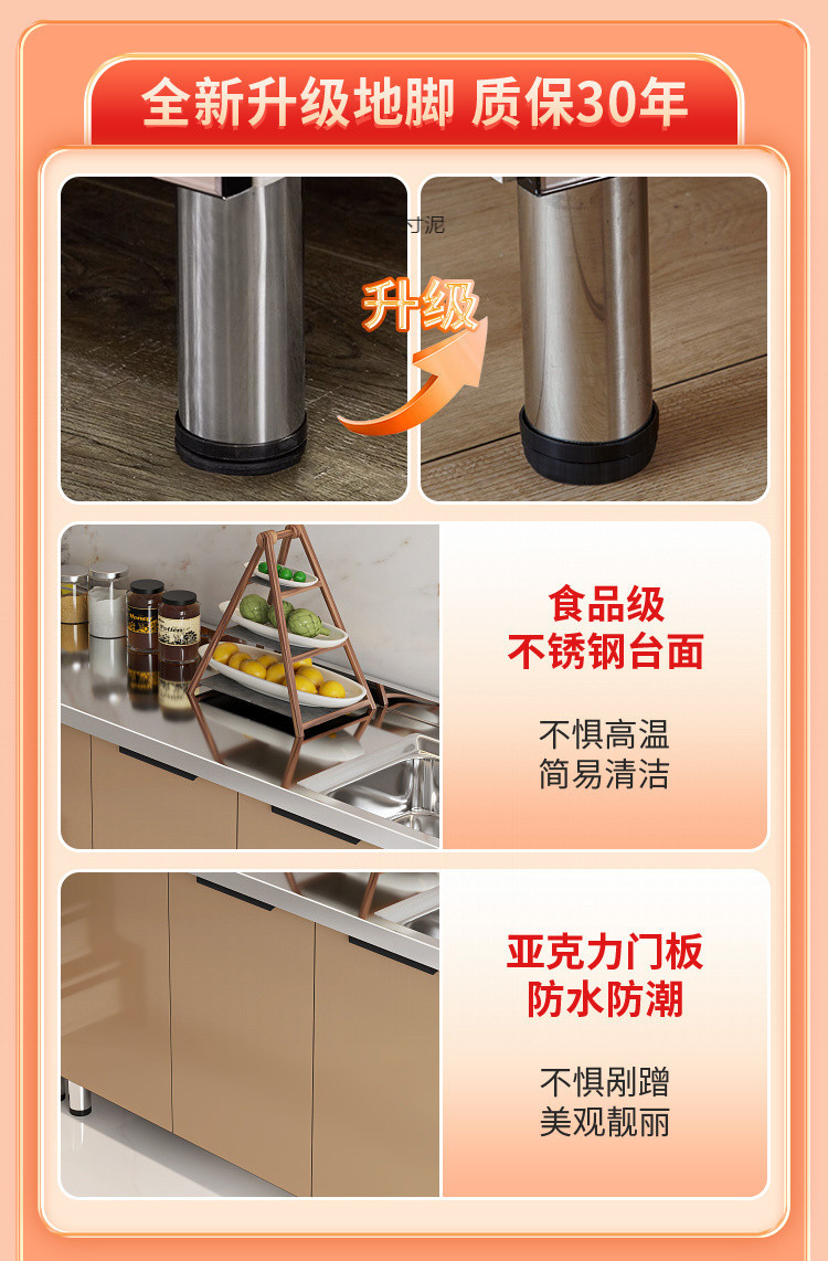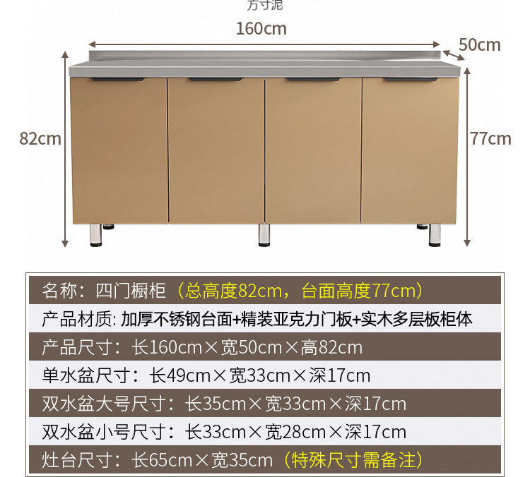 스테인레스 스틸 캐비닛 스토브 캐비닛 통합 간단한 경제적 인 저장 캐비닛 찬장 물 캐비닛 가정용 주방 캐비닛 공장스토어 가기