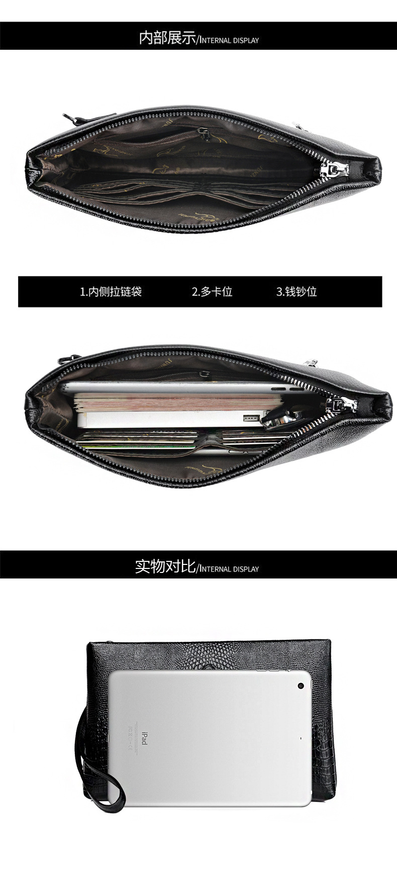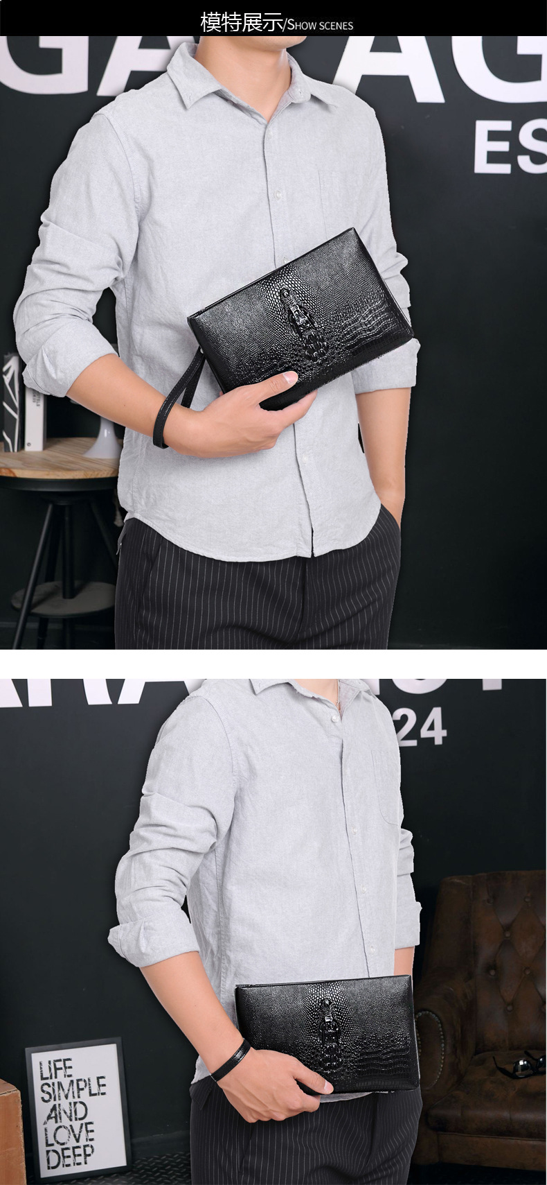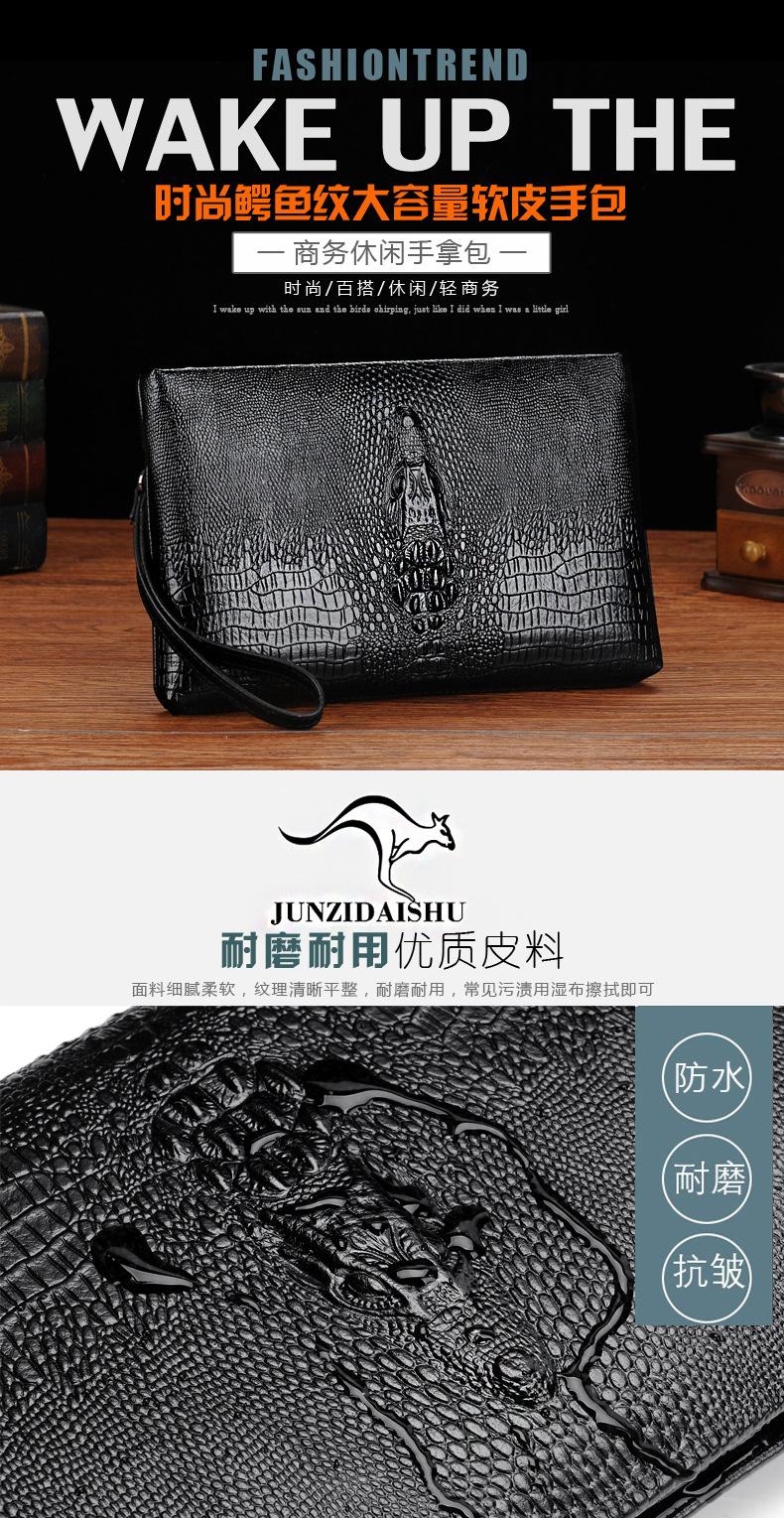 크로스보더 악어 무늬 부드러운 가죽 핸드백 남성용 대용량 비즈니스 지갑 롱 클러치 남성용 봉투 가방 클러치스토어 가기
