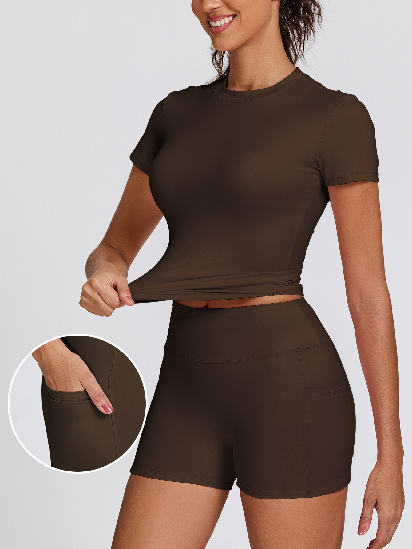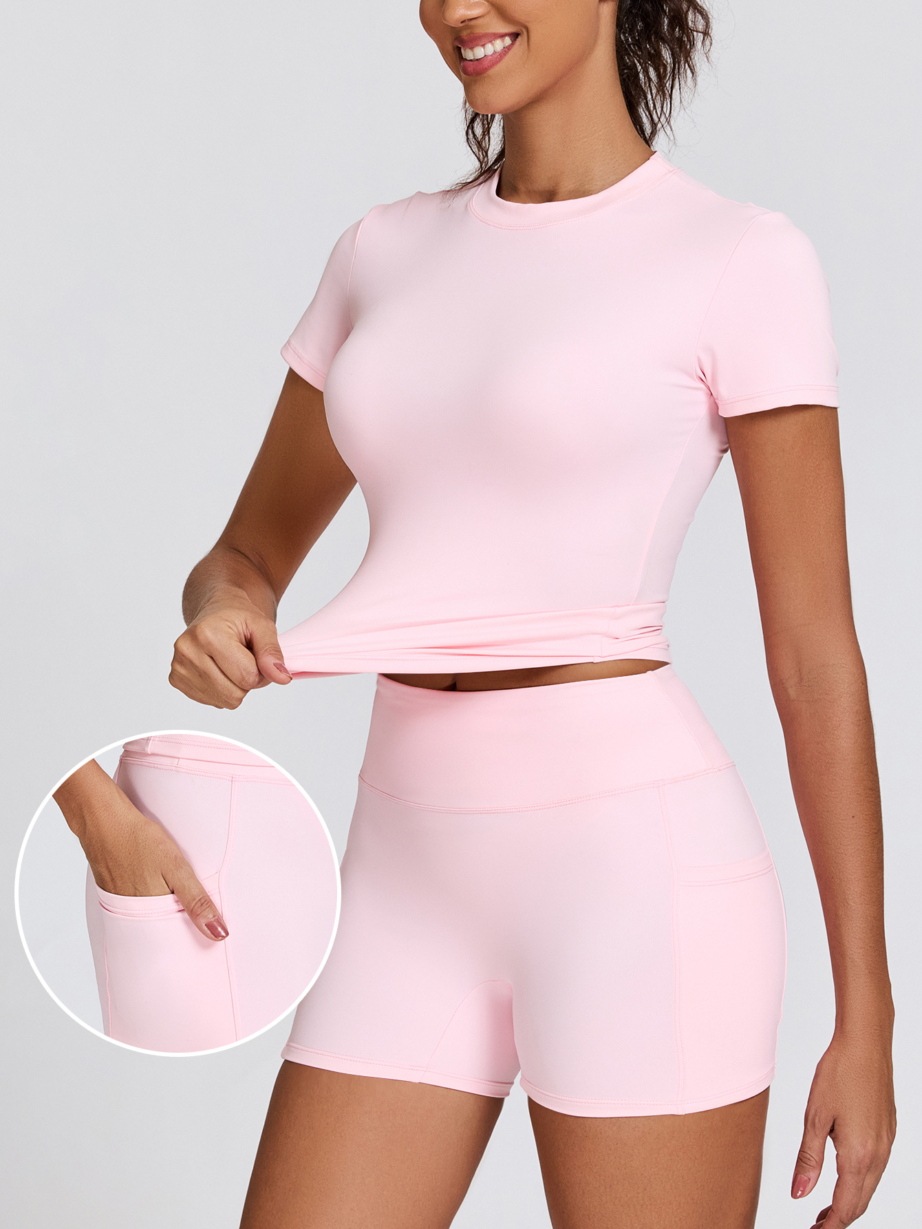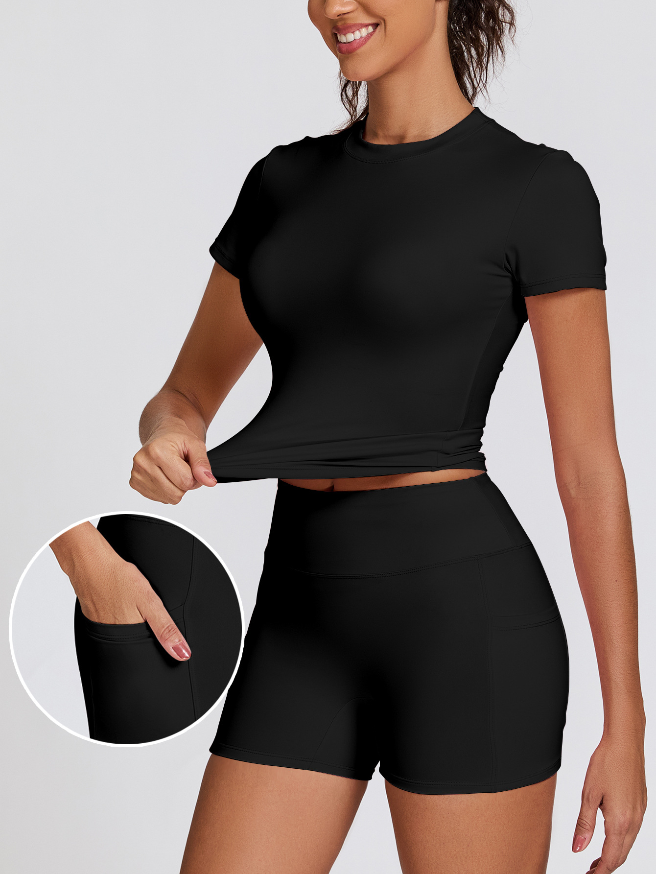 2026 요가복 스포츠 세트 피트니스복 타이트 탑 피치힙 반바지 포켓 세트 2피스 세트