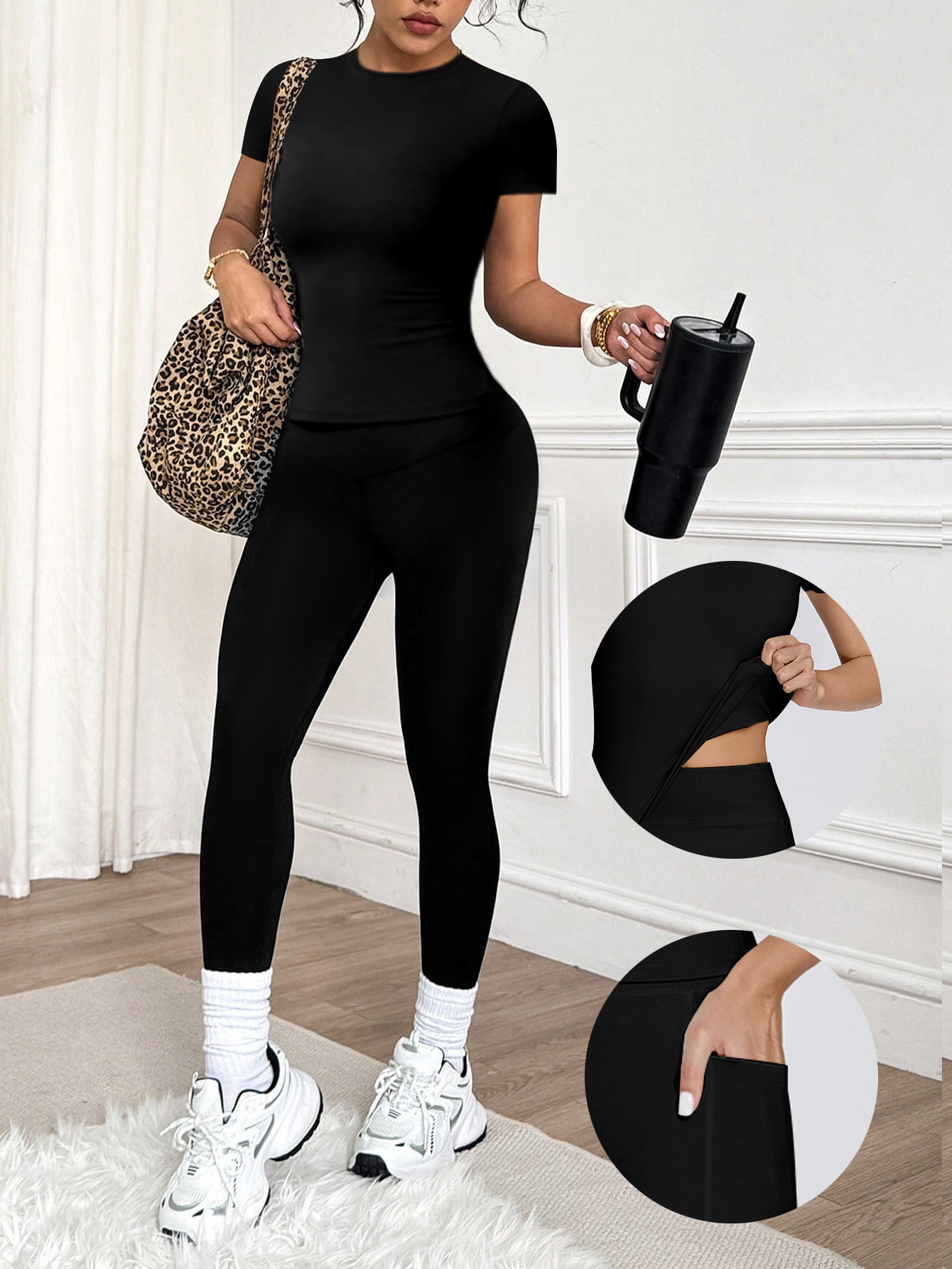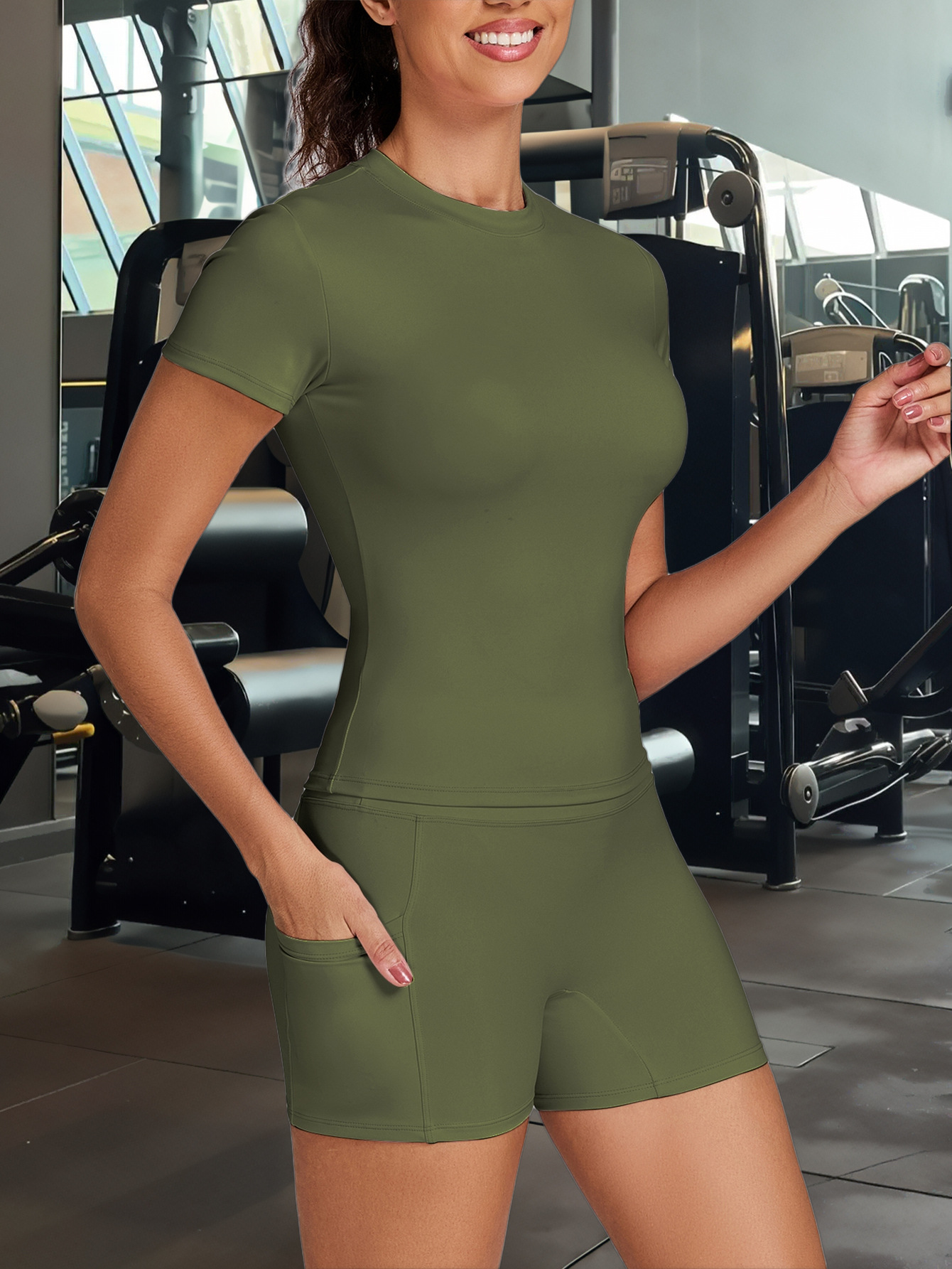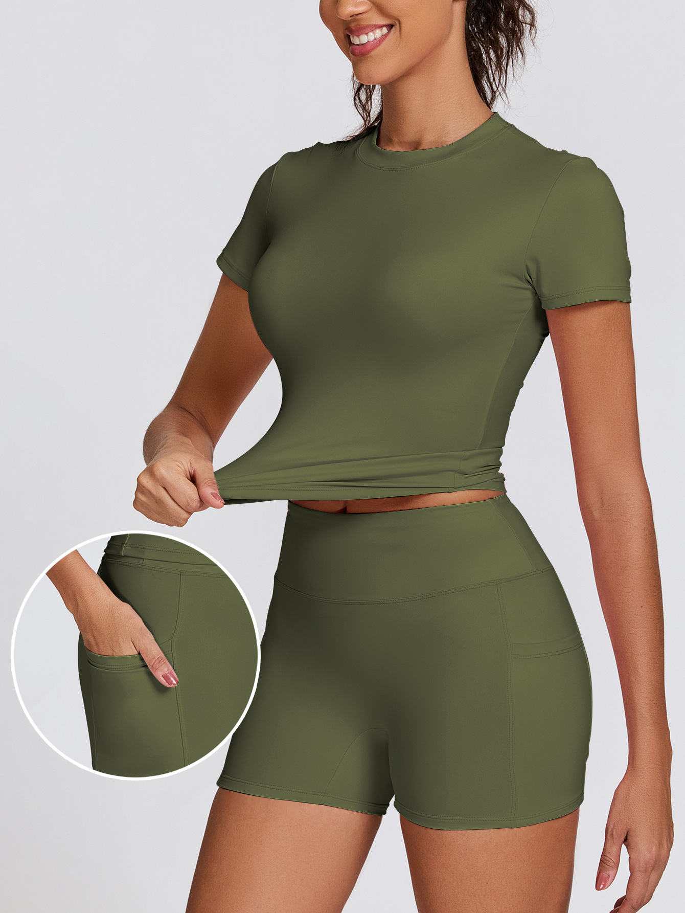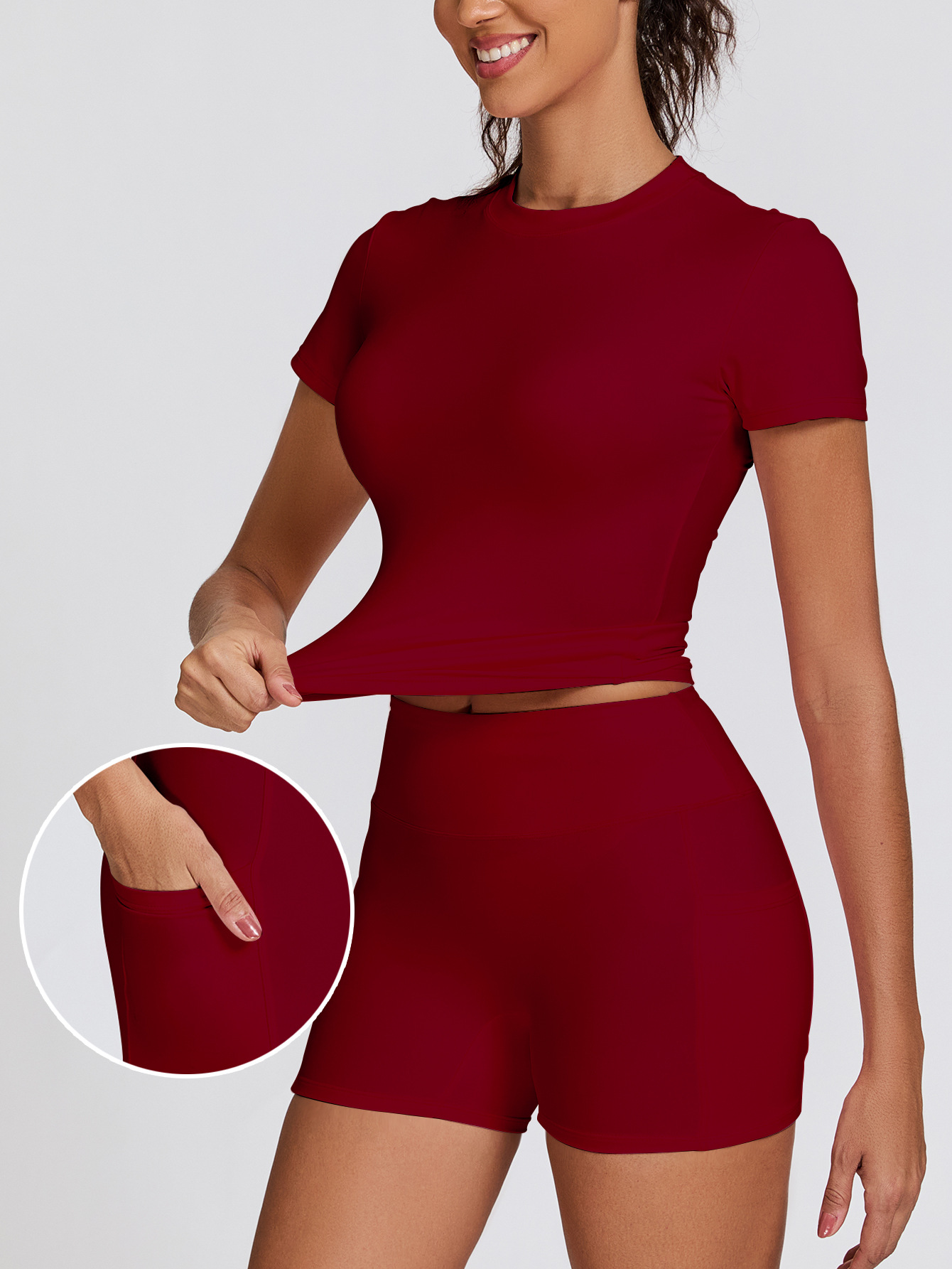 2026 요가복 스포츠 세트 피트니스복 타이트 탑 피치힙 반바지 포켓 세트 2피스 세트