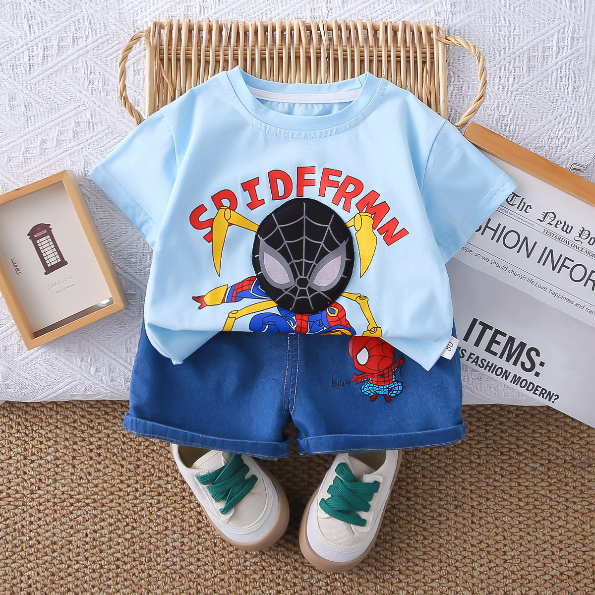 국경 간 여름 어린이 의류 도매 만화면 티셔츠 반바지 세트 0-5 세 소년 여름 반팔 세트스토어 가기