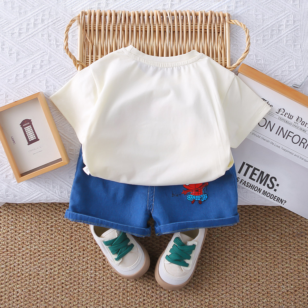 국경 간 여름 어린이 의류 도매 만화면 티셔츠 반바지 세트 0-5 세 소년 여름 반팔 세트