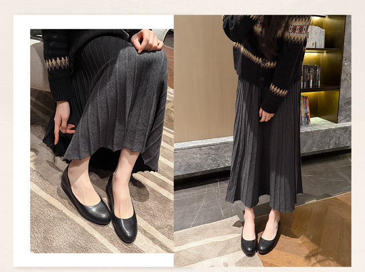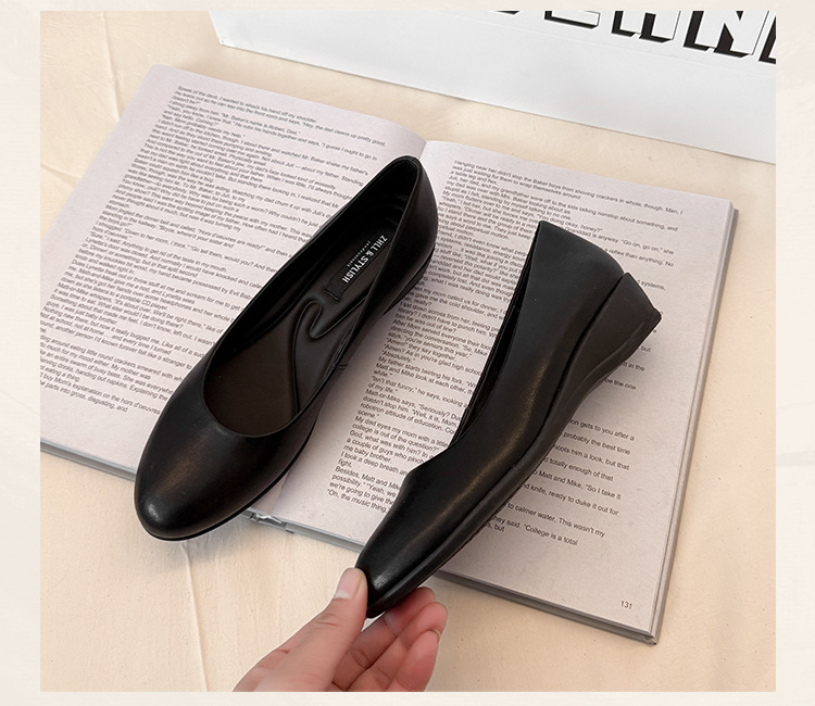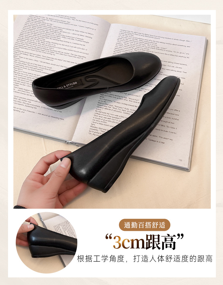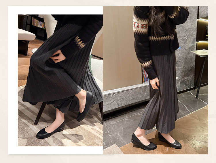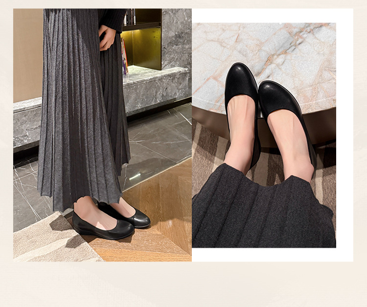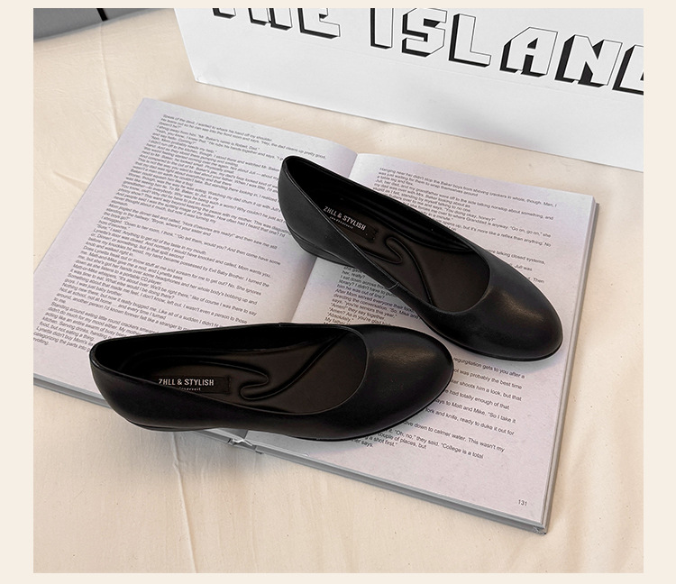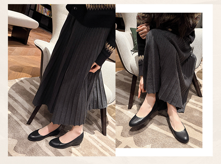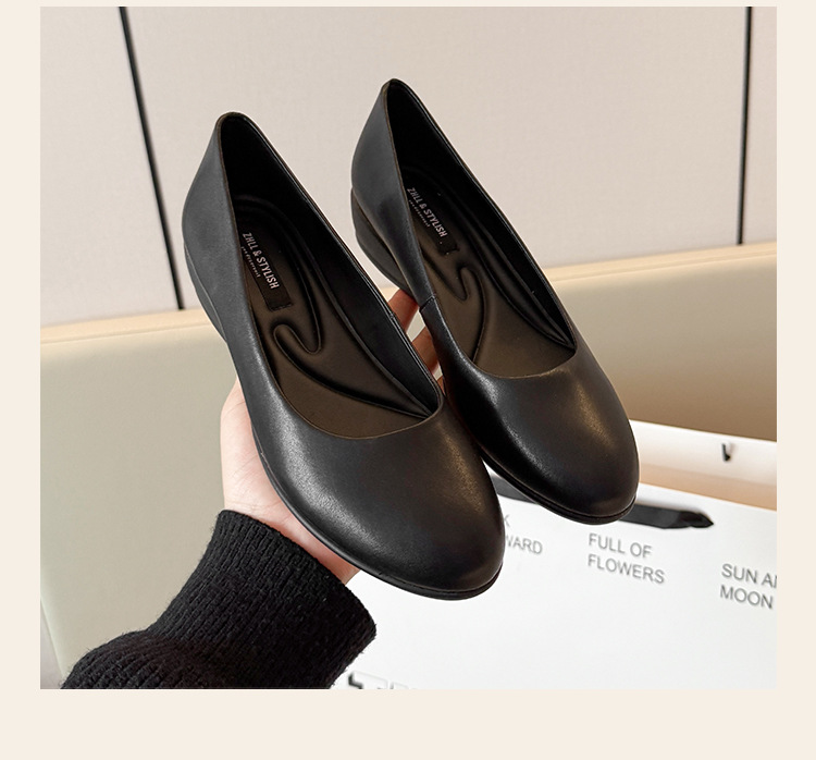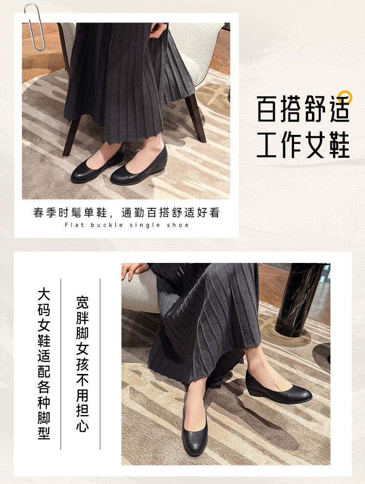 006-1-2 봄 2025 레트로 정품 가죽/마이크로 파이버 3CM 통근 조커 신발 뚱뚱한 플러스 사이즈 여성용 신발스토어 가기