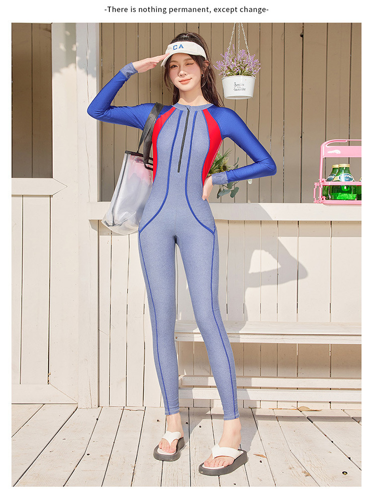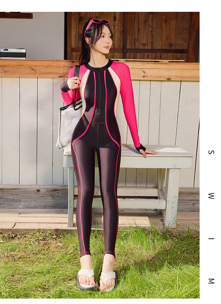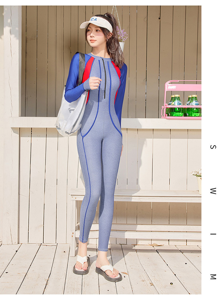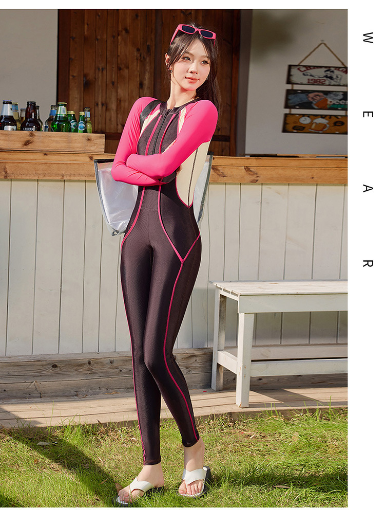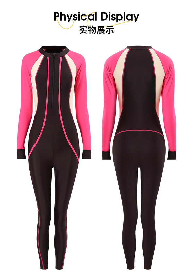 跨境新款连体游泳衣女长袖长裤全身防晒服大码泳装修身训练潜水服