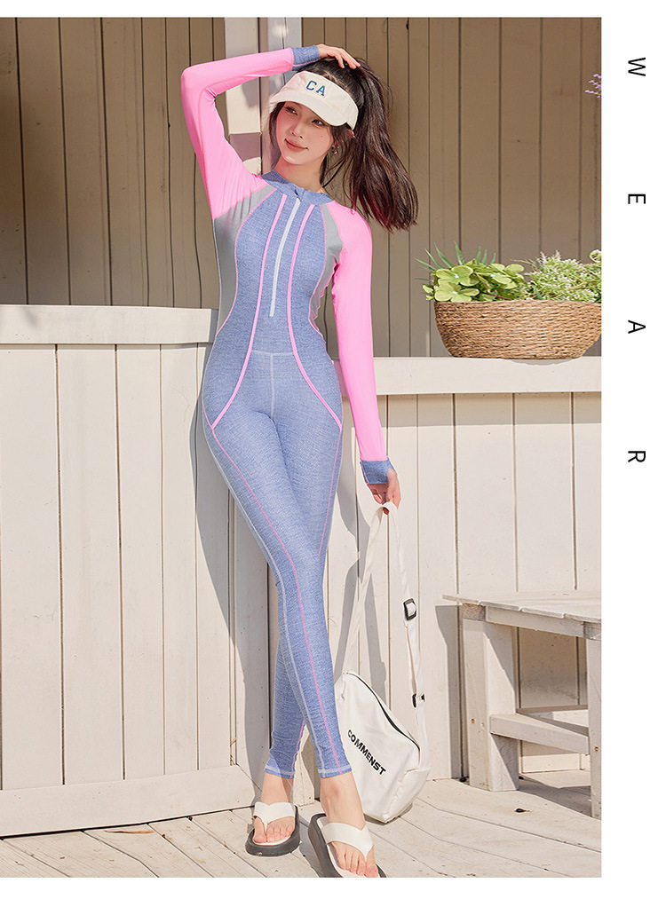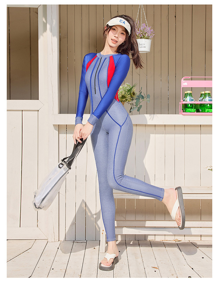 여성용 크로스보더 신형 원피스 수영복, 긴팔 바지, 전신 자외선 차단복, 대형 수영복, 슬림핏 트레이닝 잠수복스토어 가기