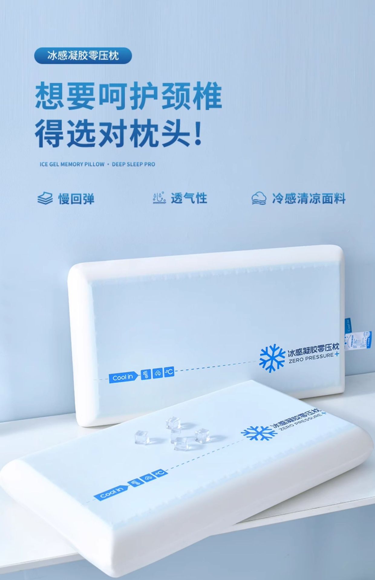• [절묘한 선물 가방] 아이스 젤 제로 압력 베개 - 중간 베개 (으깬 아이스 블루 내부 코어)