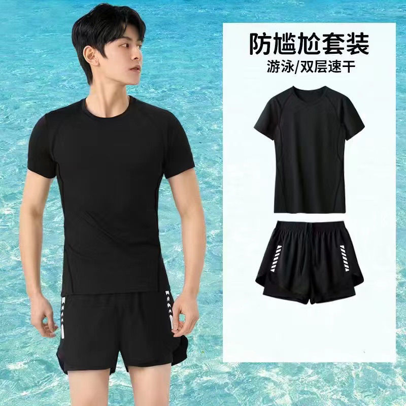 남성 수영복 세트 서핑 자외선 차단 복서 노출 방지 3점 속건 수영 팬티 온천 장비 남성 3종 세트스토어 가기