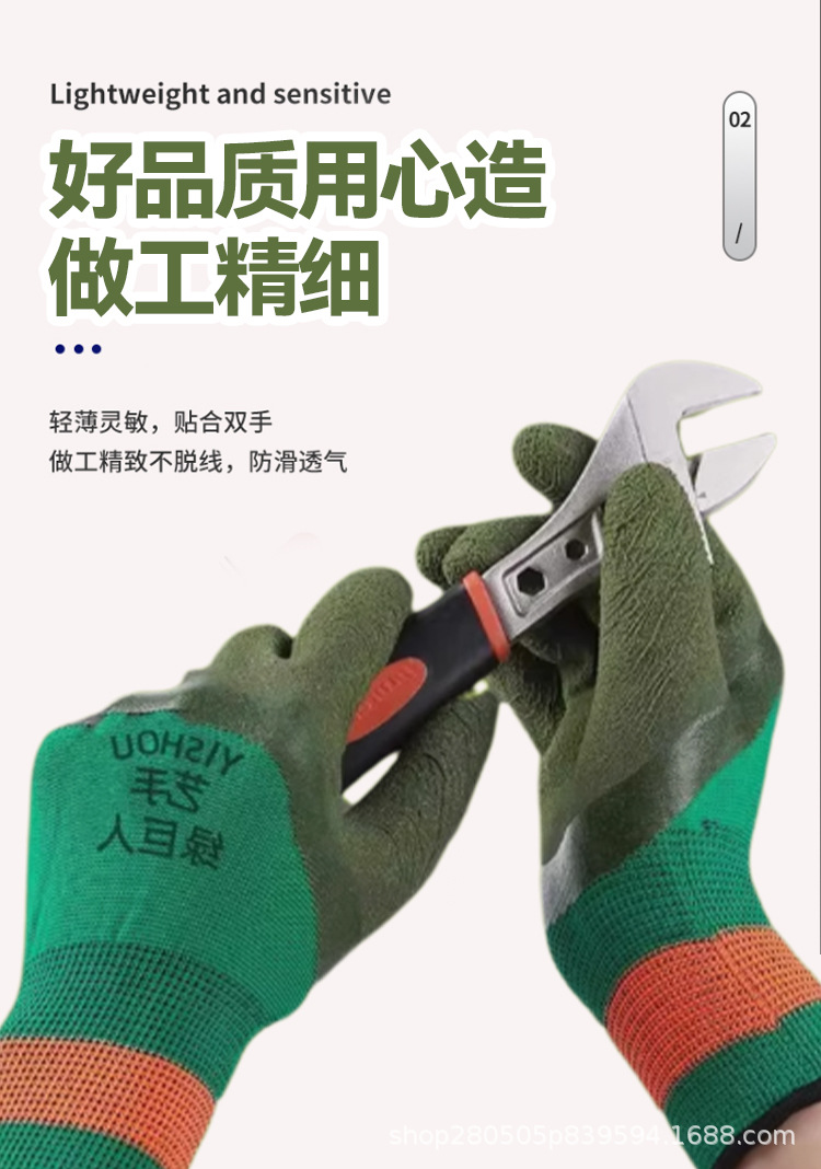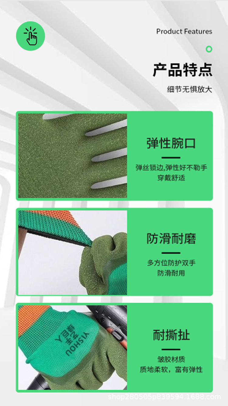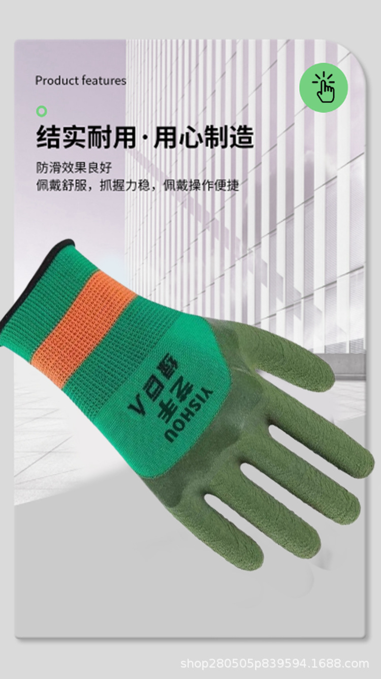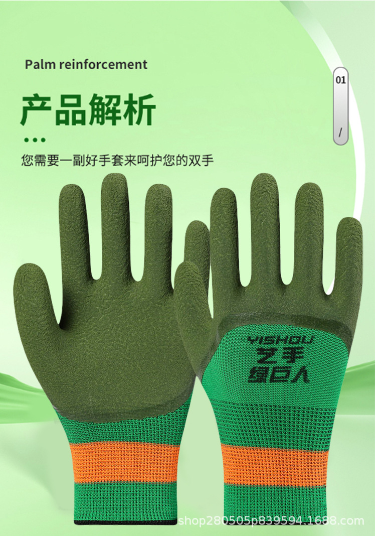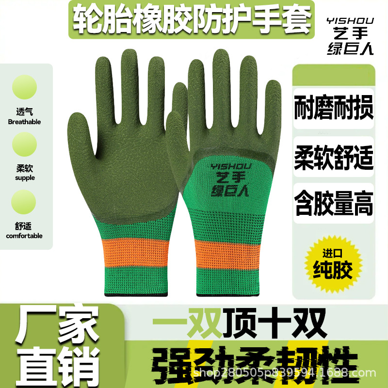 아티스트 그린 히어로 안전 장갑 작업용 내마모성 산업단지 고무 미끄럼 방지 통기성 편안함 제조업체 도매 보호스토어 가기
