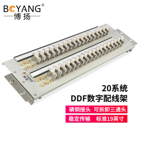 博扬 20系统DDF数字配线架19英寸 端子单元板含40口三通头 2M两兆E1同轴电缆接头终端连接器 BY-DDF-20
