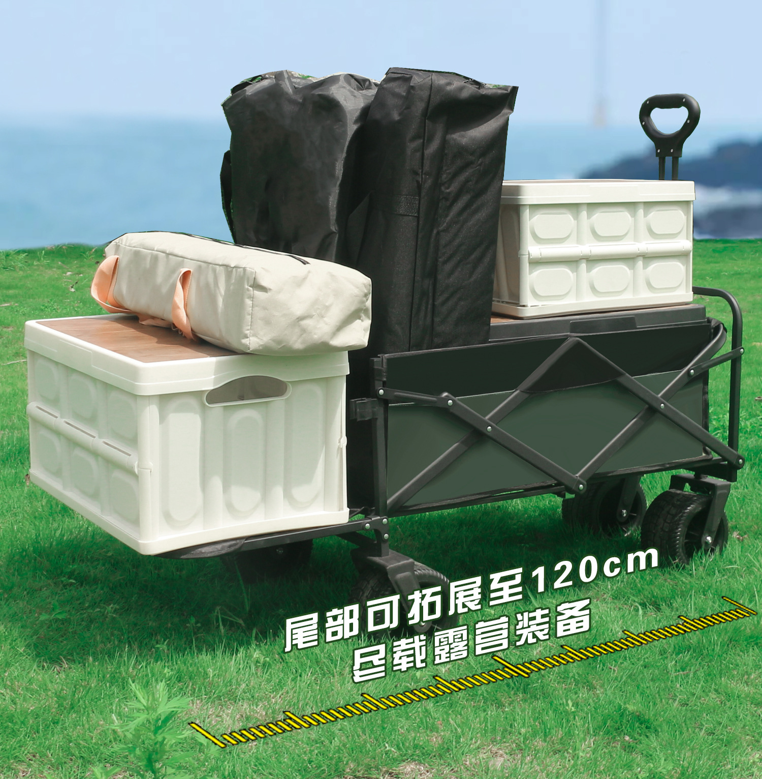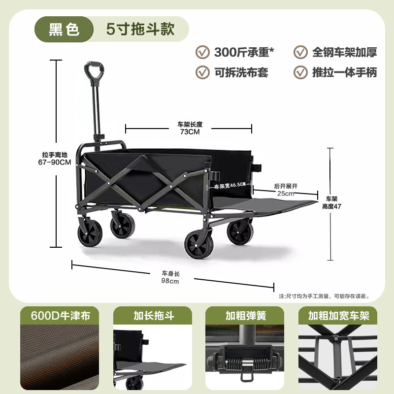야외 캠핑카 트롤리, 접이식 트레일러, 스톨, 초대형 트롤리, 핸드 풀백 오픈 캠핑카