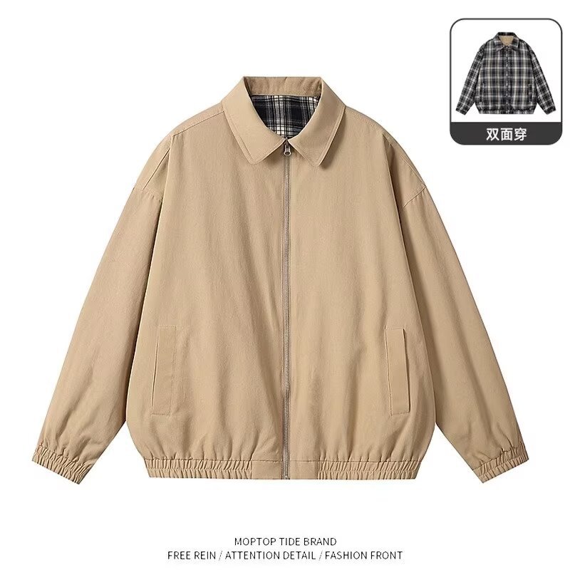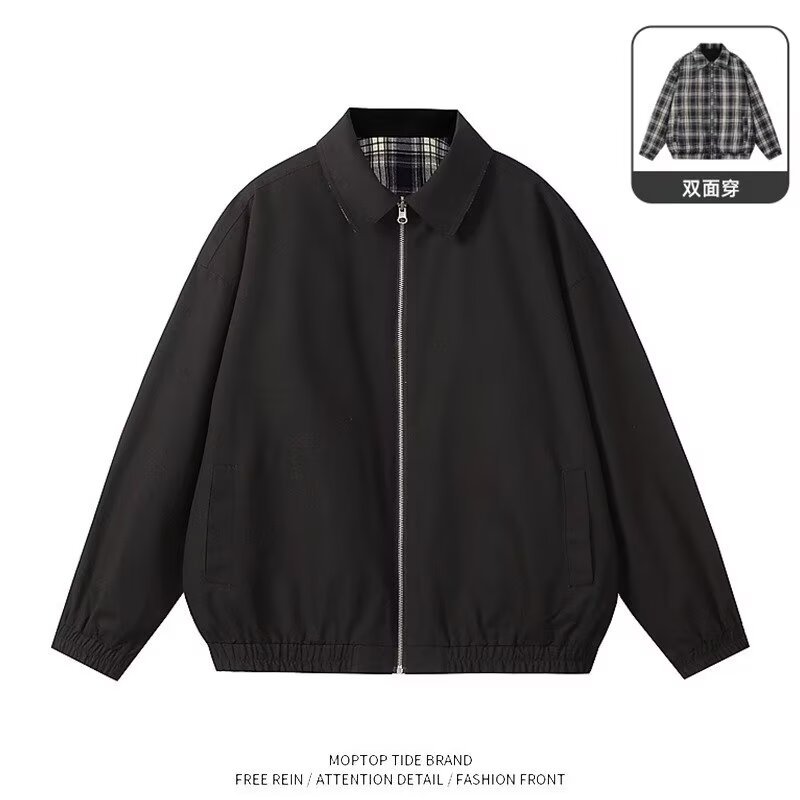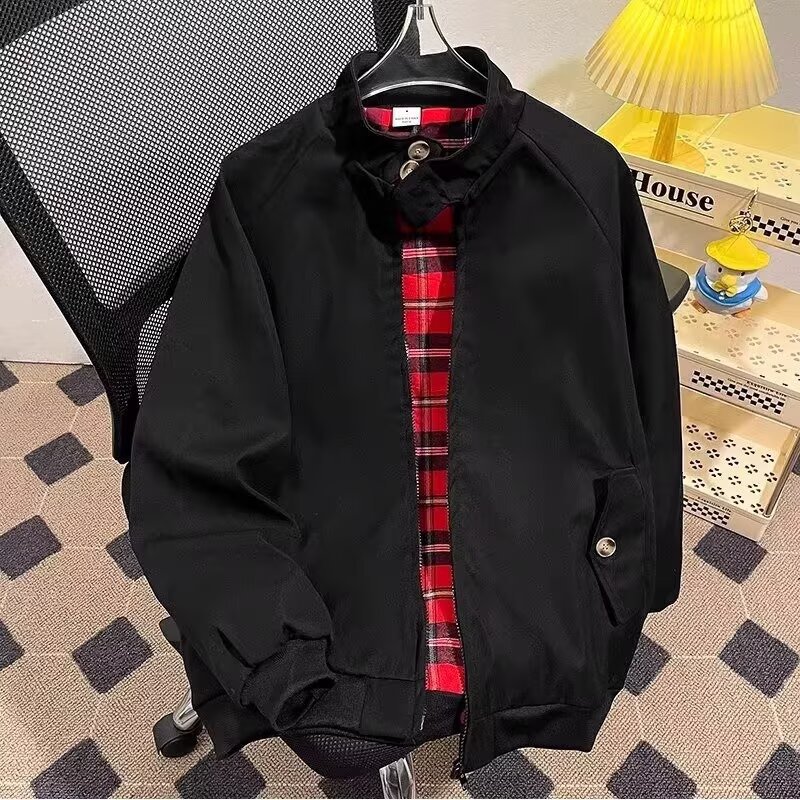 아메리칸 캐주얼 양면 스플라이스 스탠드 칼라 체크 무늬 재킷 남성 봄, 가을 신작 양면 야구 재킷 탑스토어 가기