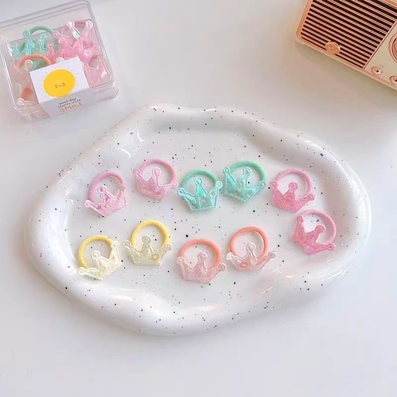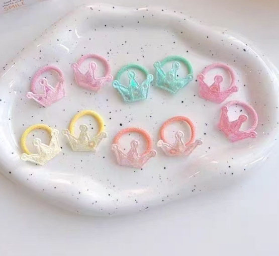 • F6268-6#글리터 머리끈 10개입 OPP봉투(크라운)