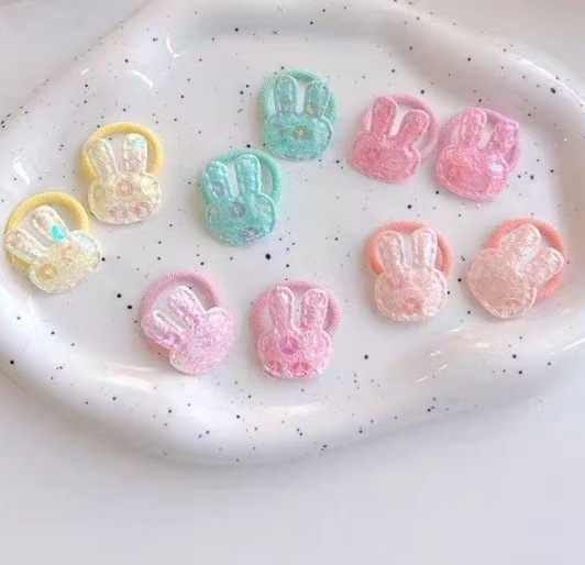 • F6268-1#글리터 머리끈 10개입 (토끼)