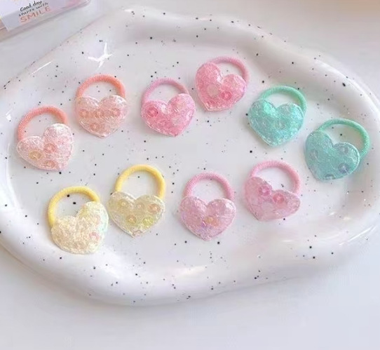 • F6268-7#글리터 머리끈 10개입 OPP봉투(사랑)
