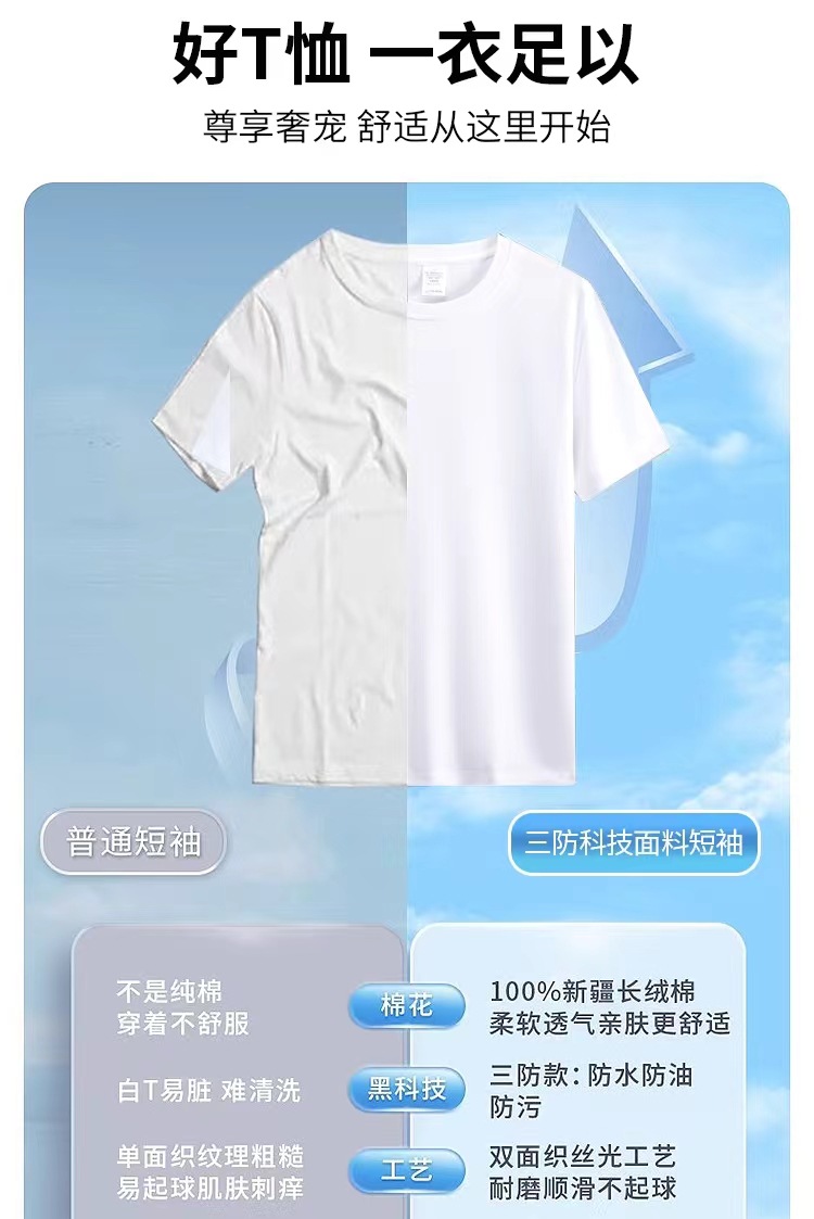 2025 여름 퓨어 코튼 블랙 기술 3 가지 증거 남성 티셔츠 새로운 올 매치 캐주얼 솔리드 컬러 라운드 넥 짧은 소매 남성 도매스토어 가기