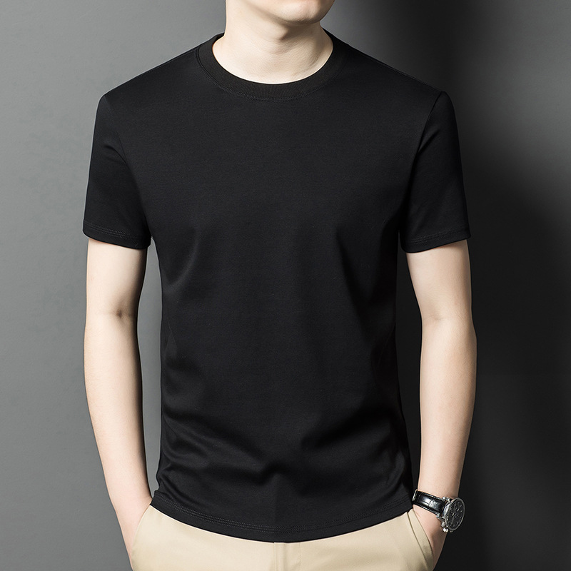2025 여름 퓨어 코튼 블랙 기술 3 가지 증거 남성 티셔츠 새로운 올 매치 캐주얼 솔리드 컬러 라운드 넥 짧은 소매 남성 도매