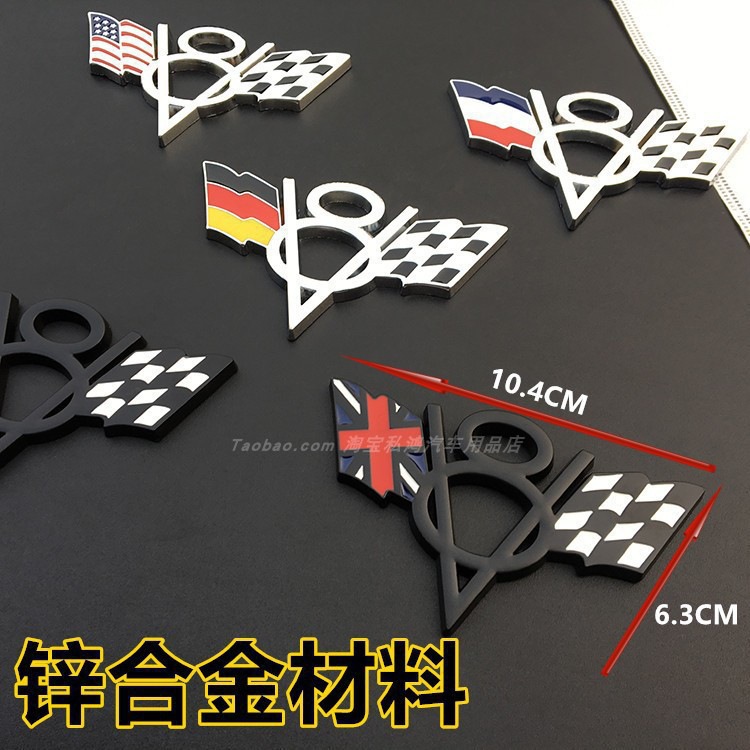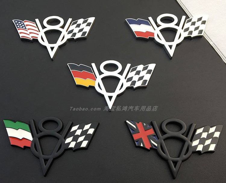 V8 이탈리아 금속 차폐 스크래치 자동차 로고 수정 프랑스 독일 미국 3D 입방체 배기량 로고 스티커스토어 가기