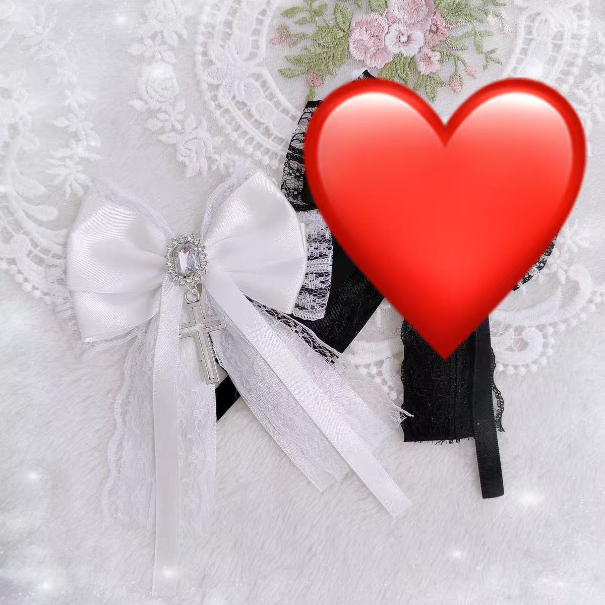 원래 광산 시리즈 대량 생산 모든 경기 레이스 활 가장자리 클립 어두운 스타일 크로스 로리타 헤어 액세서리