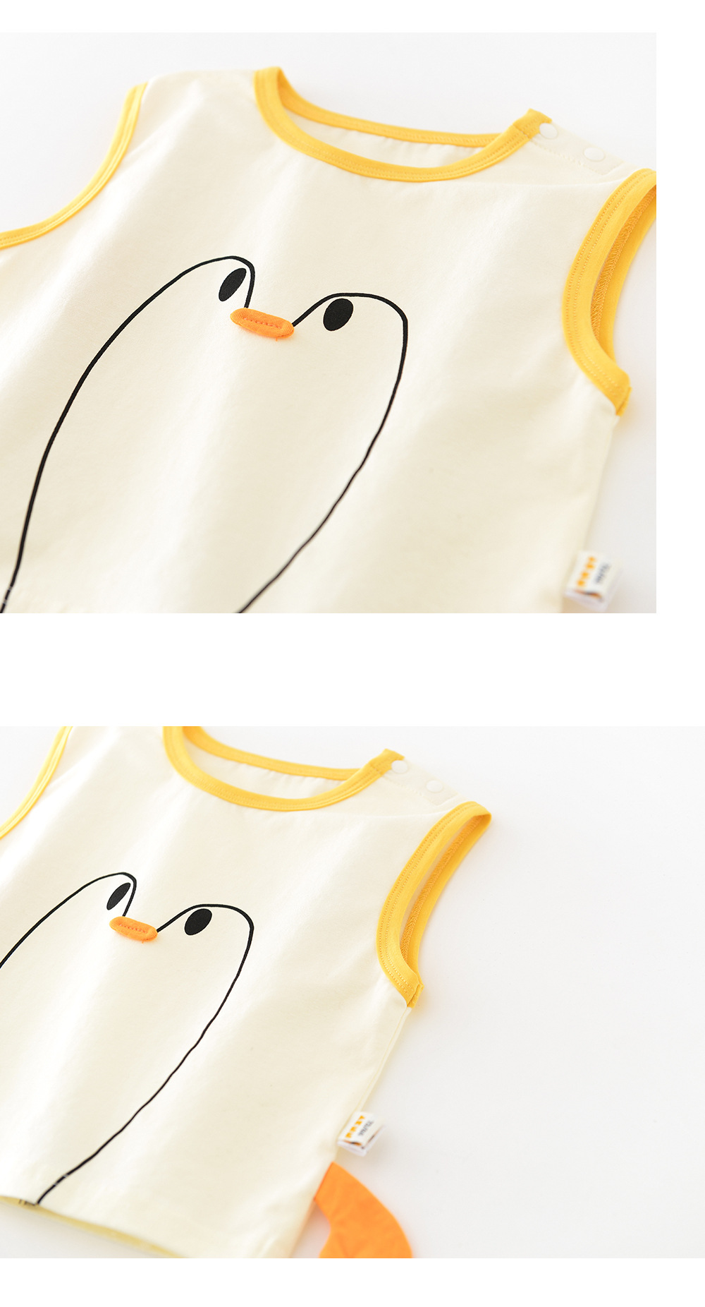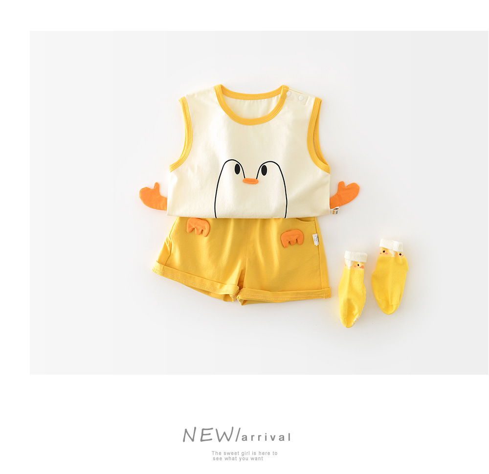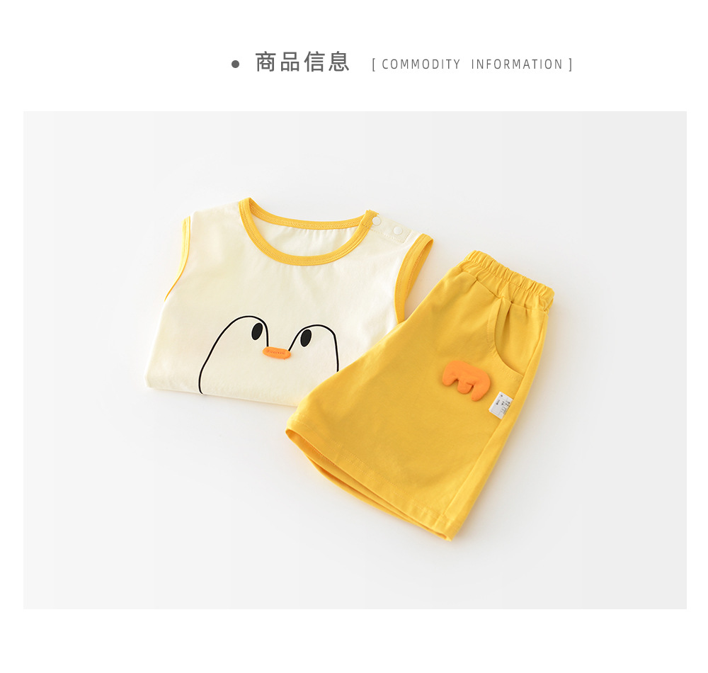 2025 년 여름 새 한국 어린이 큰 흰 거위 조끼 세트 아기 만화 반바지 투피스 52927스토어 가기
