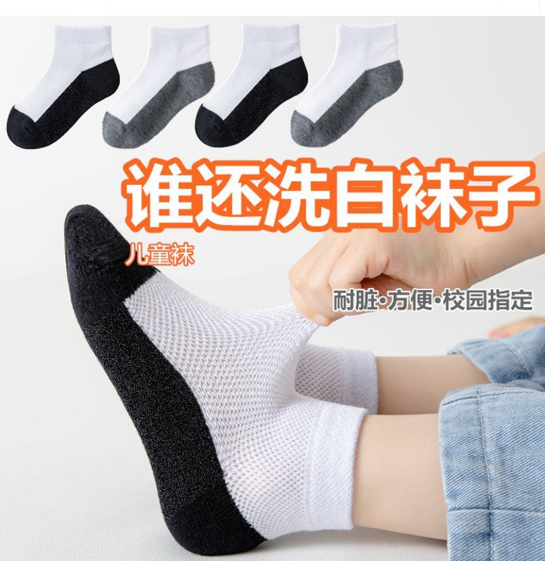 Zhuji 캠퍼스 학생 흰색 양말 소년 튜브 양말 메쉬 양말 통기성 봄과 여름 어린이 양말 소녀 도매