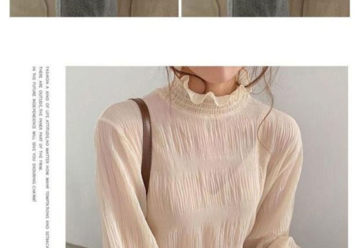 뚱뚱한 여성을위한 플러스 사이즈 여성 쉬폰 바닥 셔츠 MM2025 봄, 가을 레이스 하프 터틀넥 연령 감소 이너 탑스토어 가기