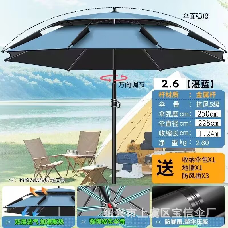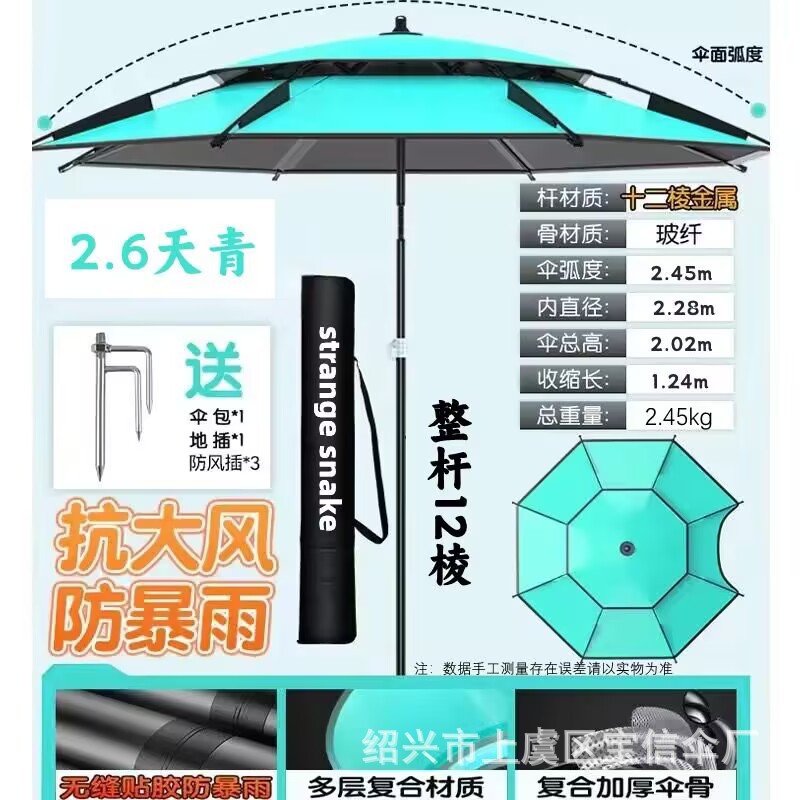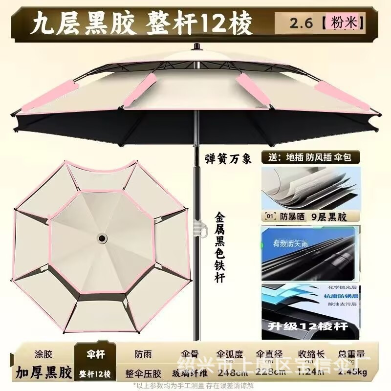 2.6 m 낚시 우산 대형 낚시 우산 야외 캠핑 우산 스톨 우산 새 우산 두껍게 검은 고무 방전과 방풍