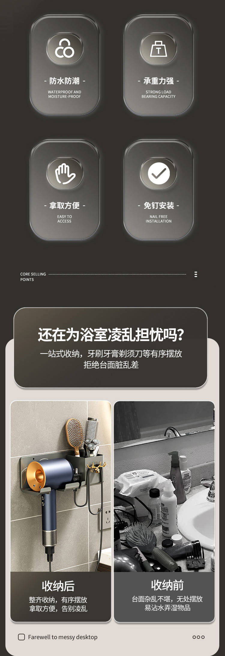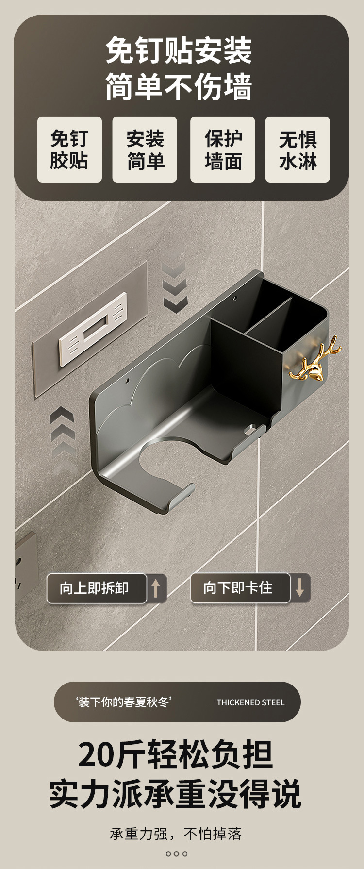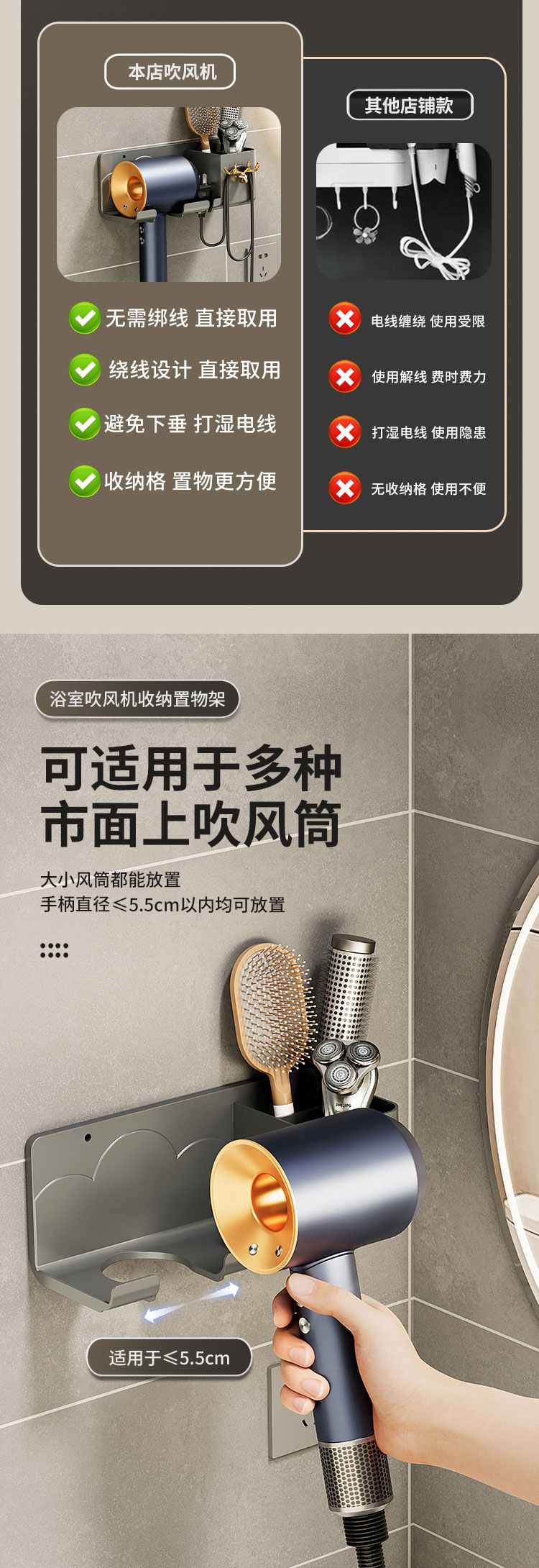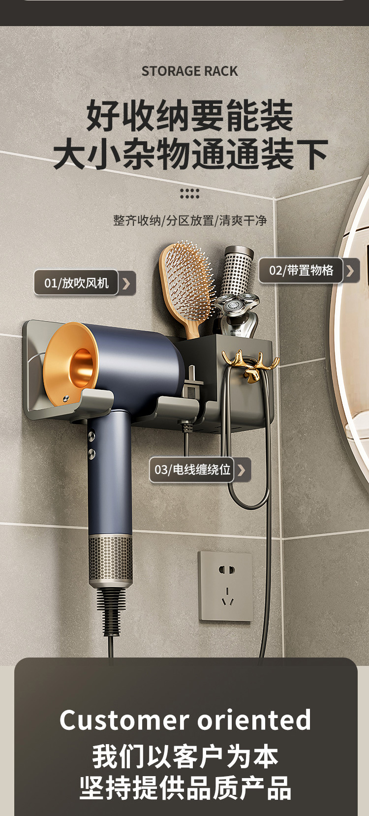 벽걸이 형 헤어 드라이어 스토리지 랙 화장실 구멍이 뚫린 헤어 드라이어 벽걸이 형 스토리지 브래킷 헤어 드라이어 랙스토어 가기