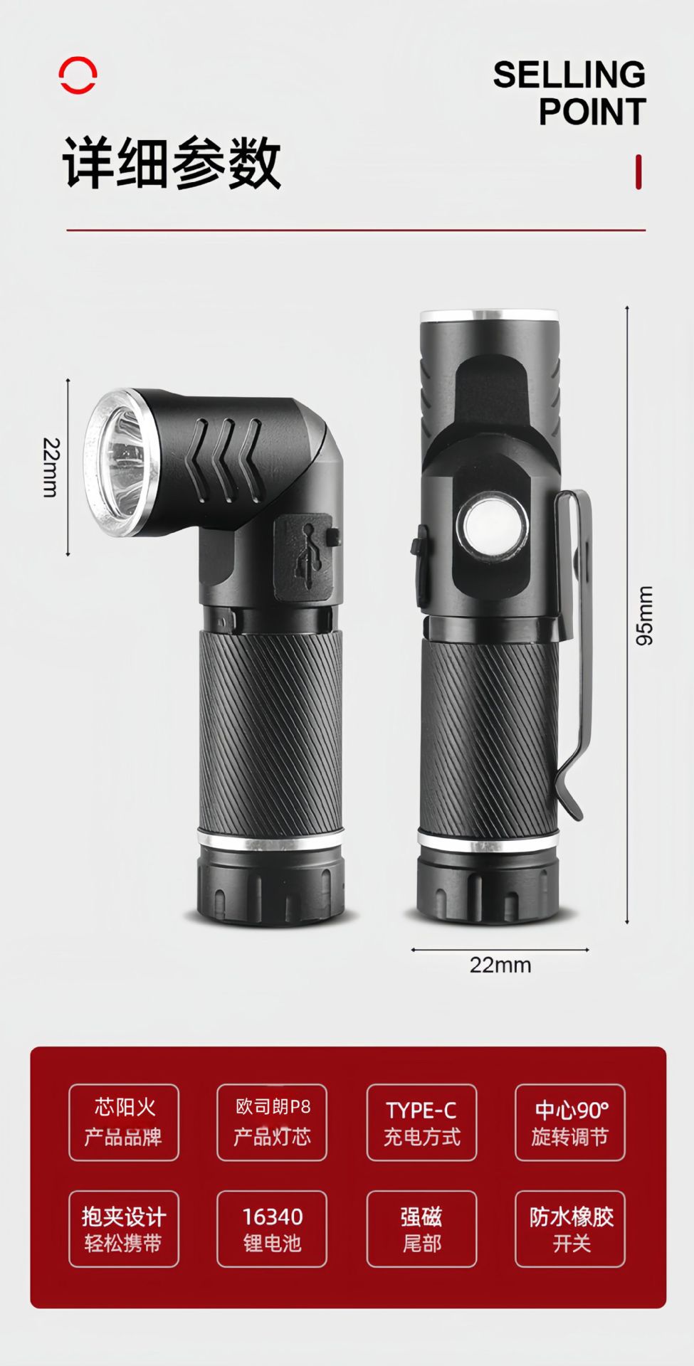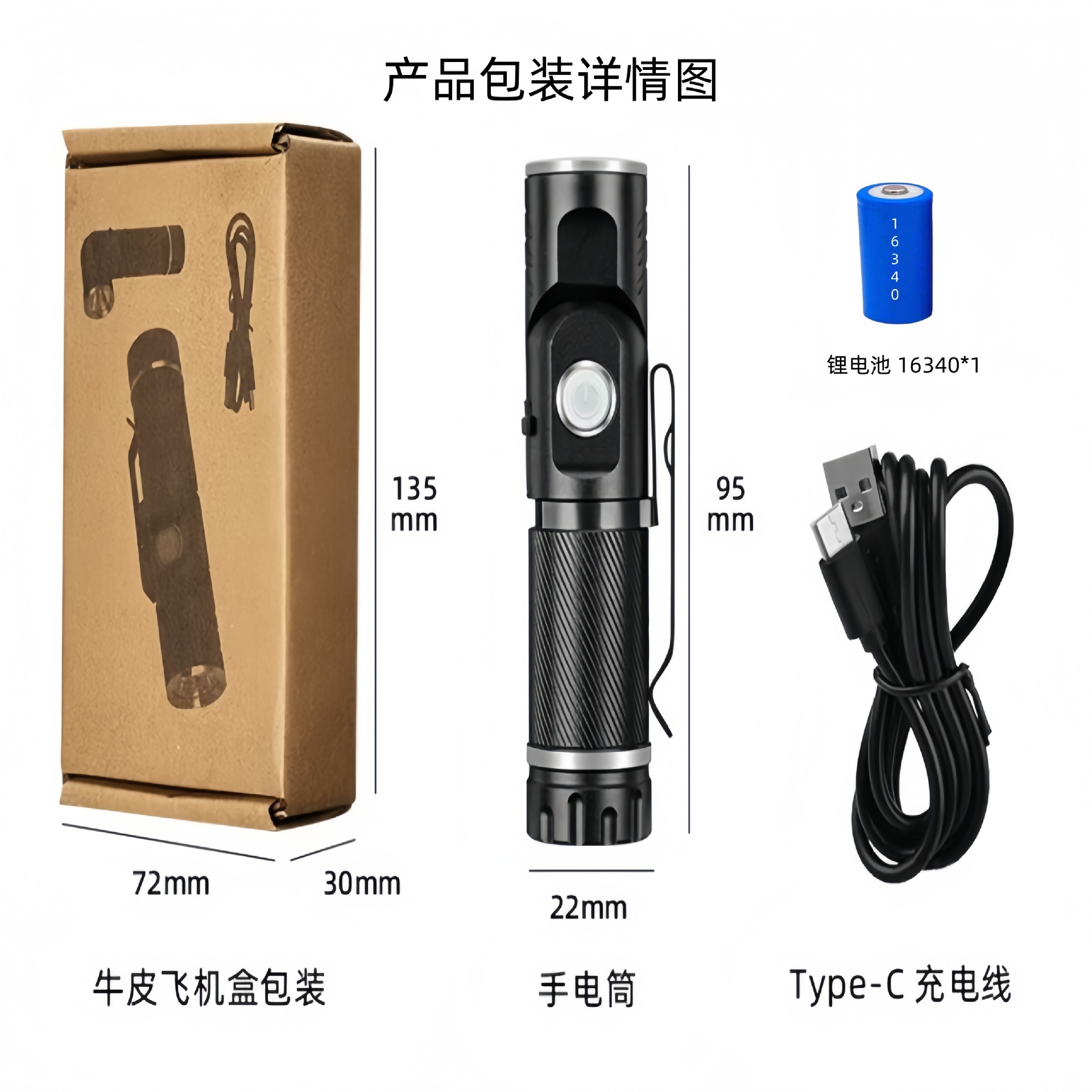 • 다기능 회전 + 자기 흡입 [16340 배터리] 포장 상자 + 충전 케이블
