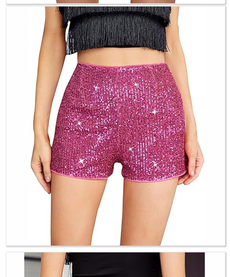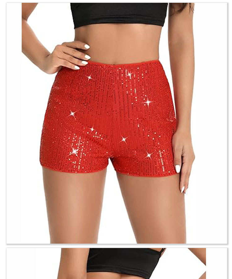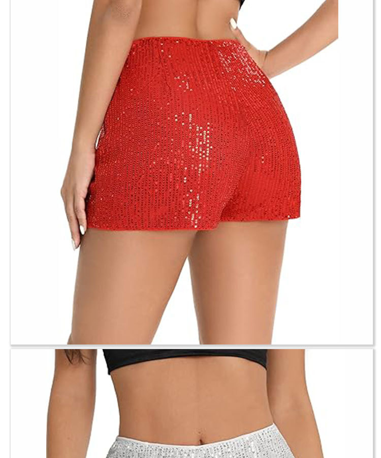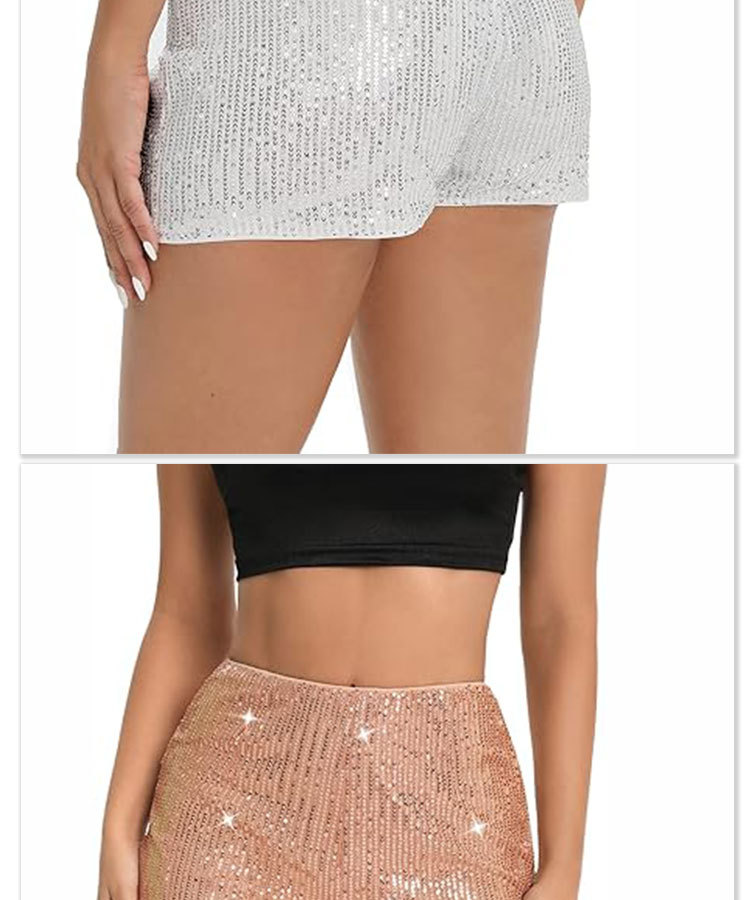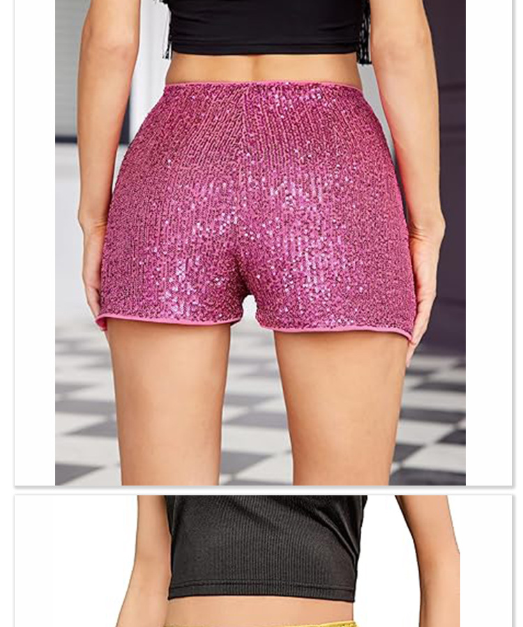 2025 봄 아마존 멀티 컬러 반짝 이는 스팽글 슬림 핫 바지 중간 허리 여성 섹시 스트레이트 반바지스토어 가기