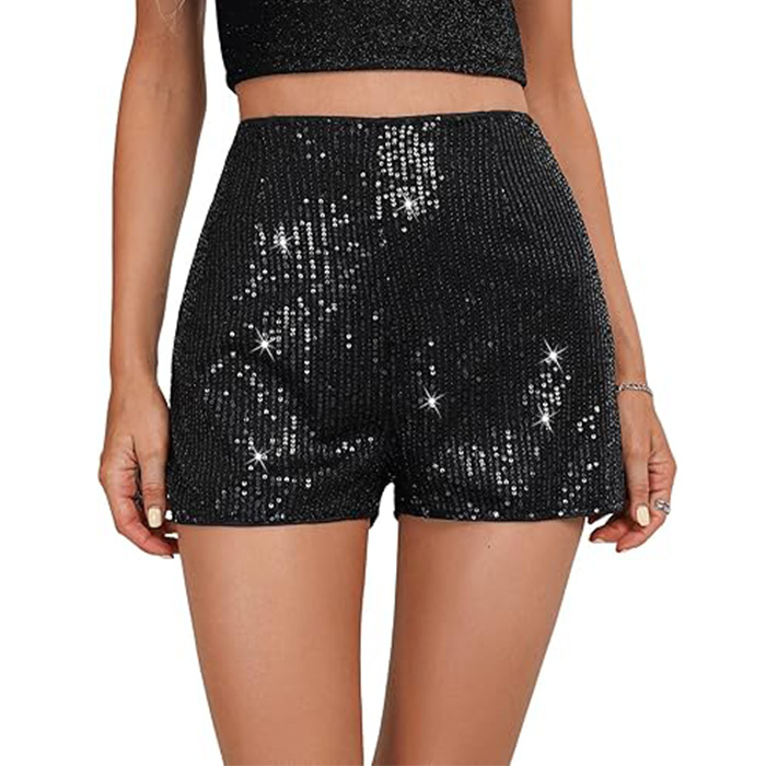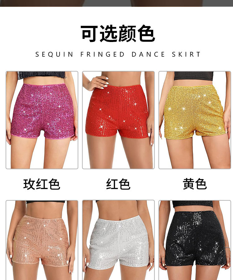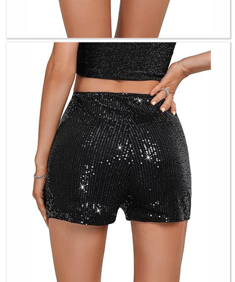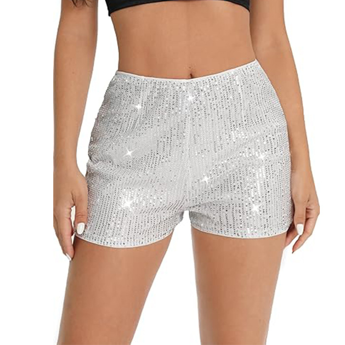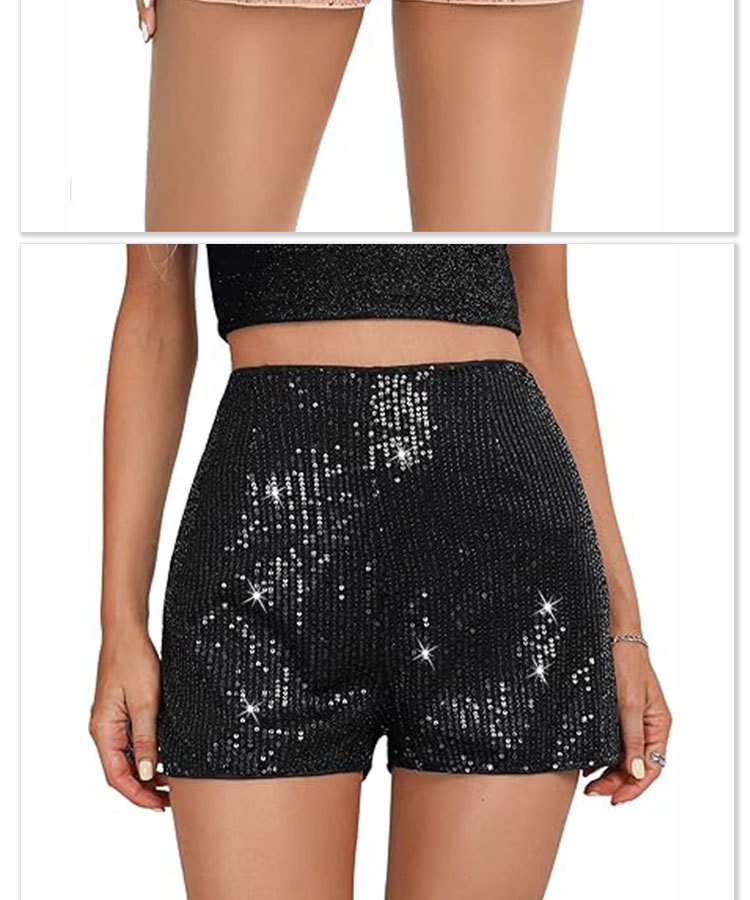 2025 봄 아마존 멀티 컬러 반짝 이는 스팽글 슬림 핫 바지 중간 허리 여성 섹시 스트레이트 반바지스토어 가기