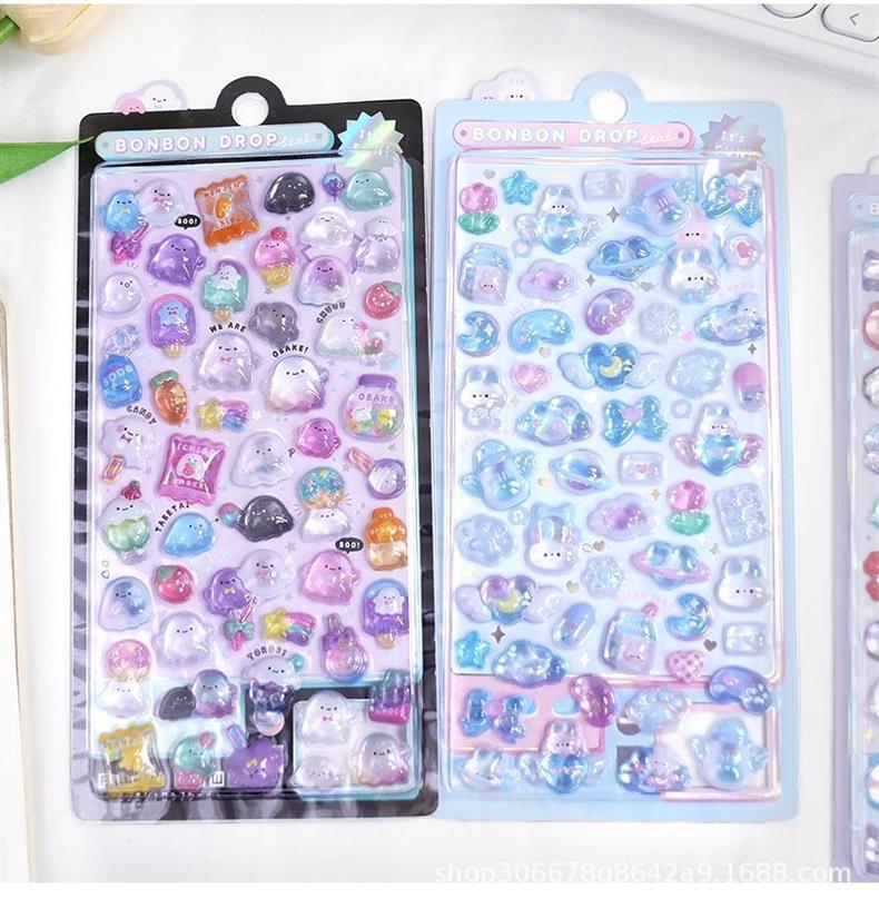 만화 구호 재미 스티커 크리스탈 다이아몬드 어린이 장식 스티커 3D 스티커 귀여운 스테레오 스티커 머리카락 세대