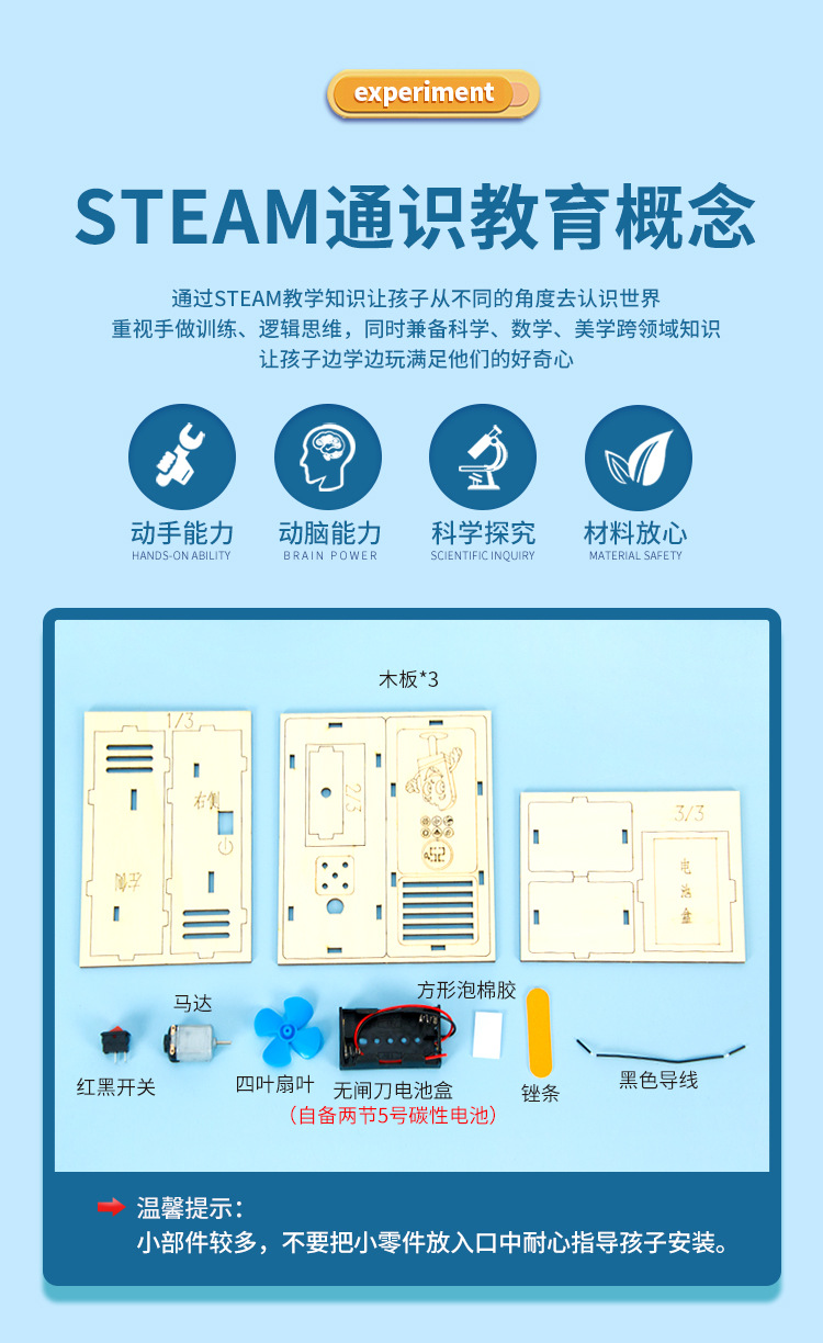 과학 실험 DIY 수제 수직 에어컨 팬 모델 어린이 수제 증기 기술 작은 생산 재료 패키지스토어 가기