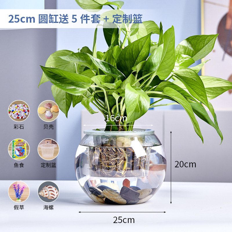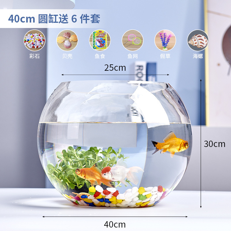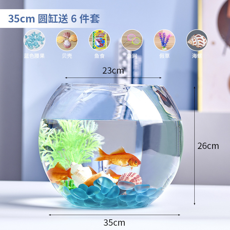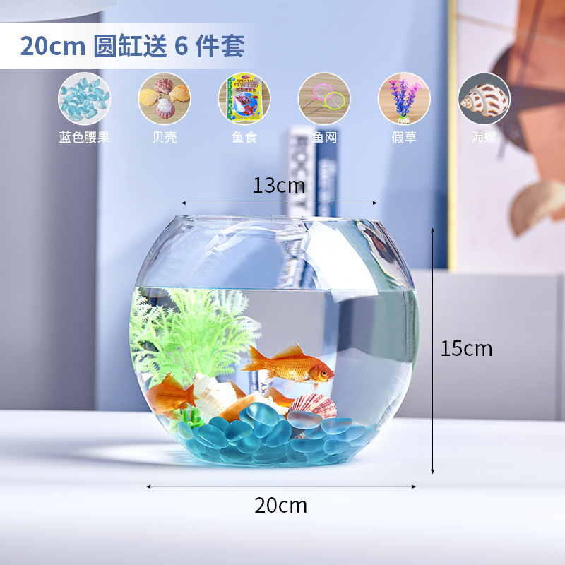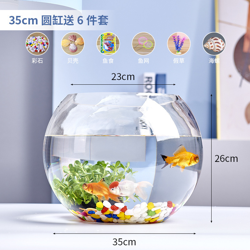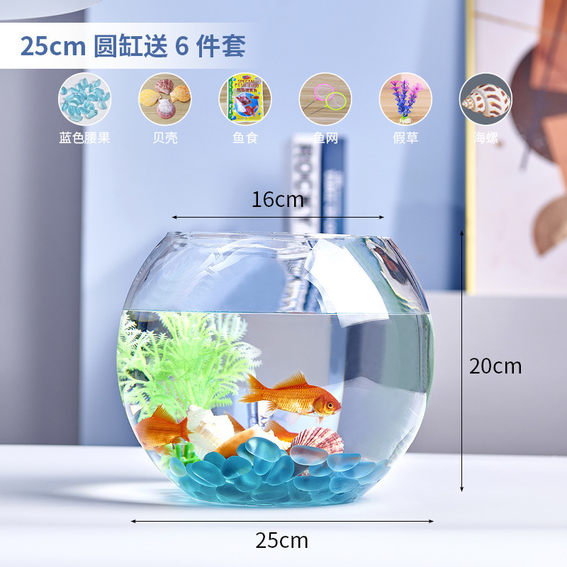 사무실 작은 어항 두꺼운 투명 유리 거북이 탱크 거실 홈 데스크탑 라운드 조경 작은 금붕어 탱크스토어 가기