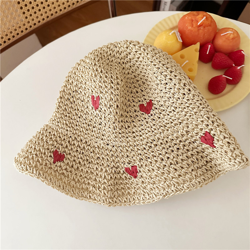 딸기 딸기 밀짚 어부 모자 여성의 봄과 여름 해변 얼굴 음영 양동이 모자 비치 처장 선 스크린 태양 모자