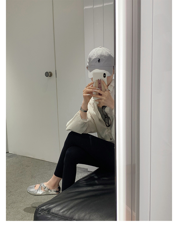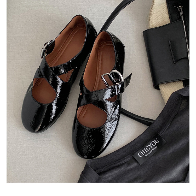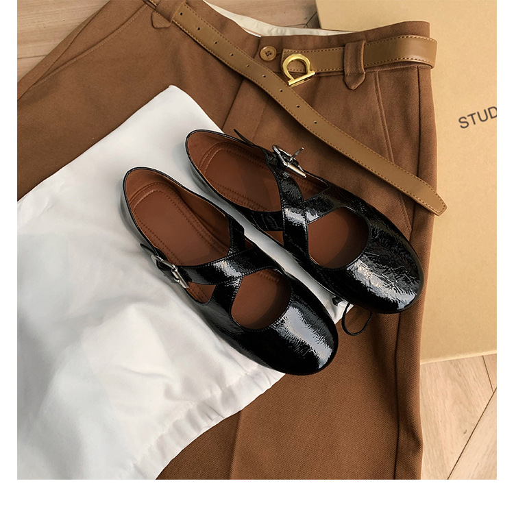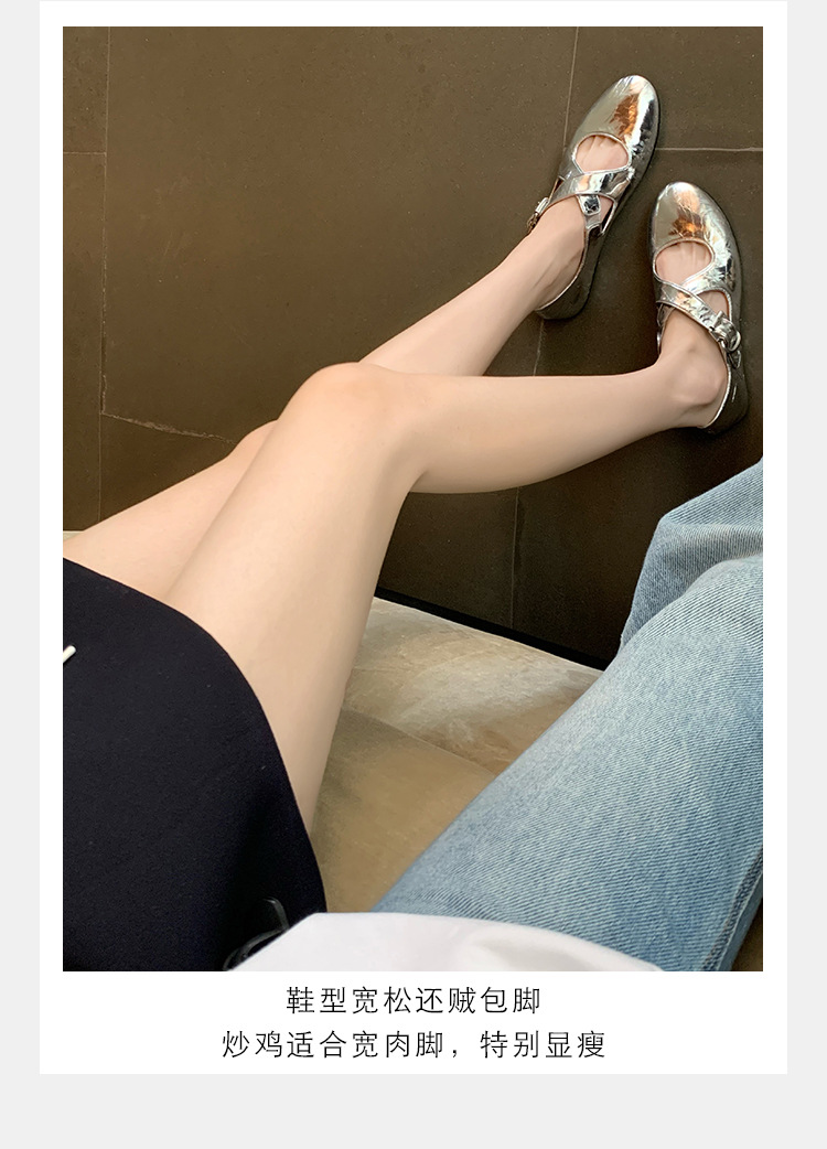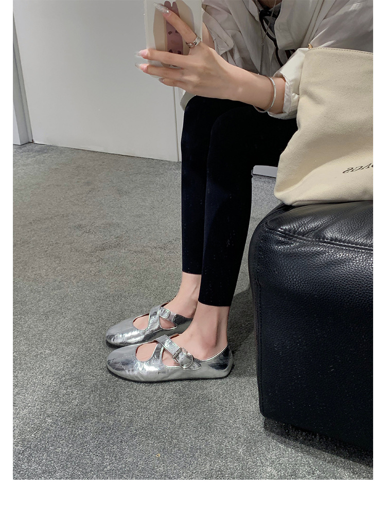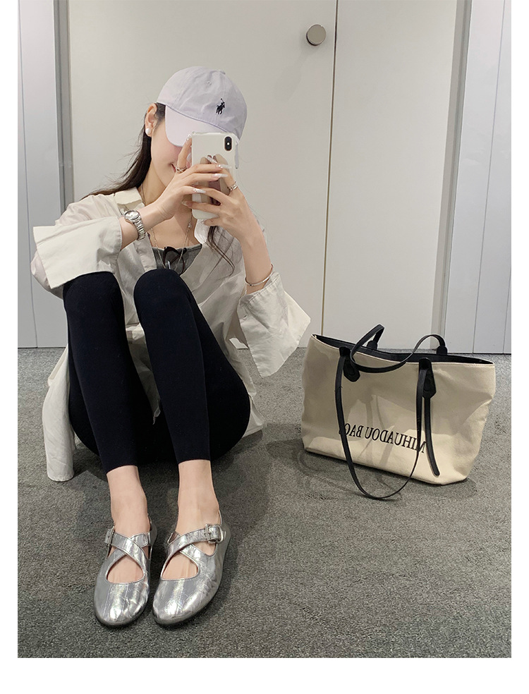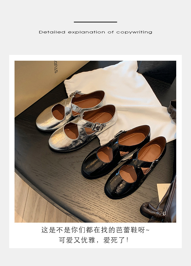 양가죽 ~ 정품 가죽 부드러운 밑창 실버 메리 제인 신발 여성 크로스 버클 라운드 토 발레 플랫 신발 작은 가죽 신발스토어 가기
