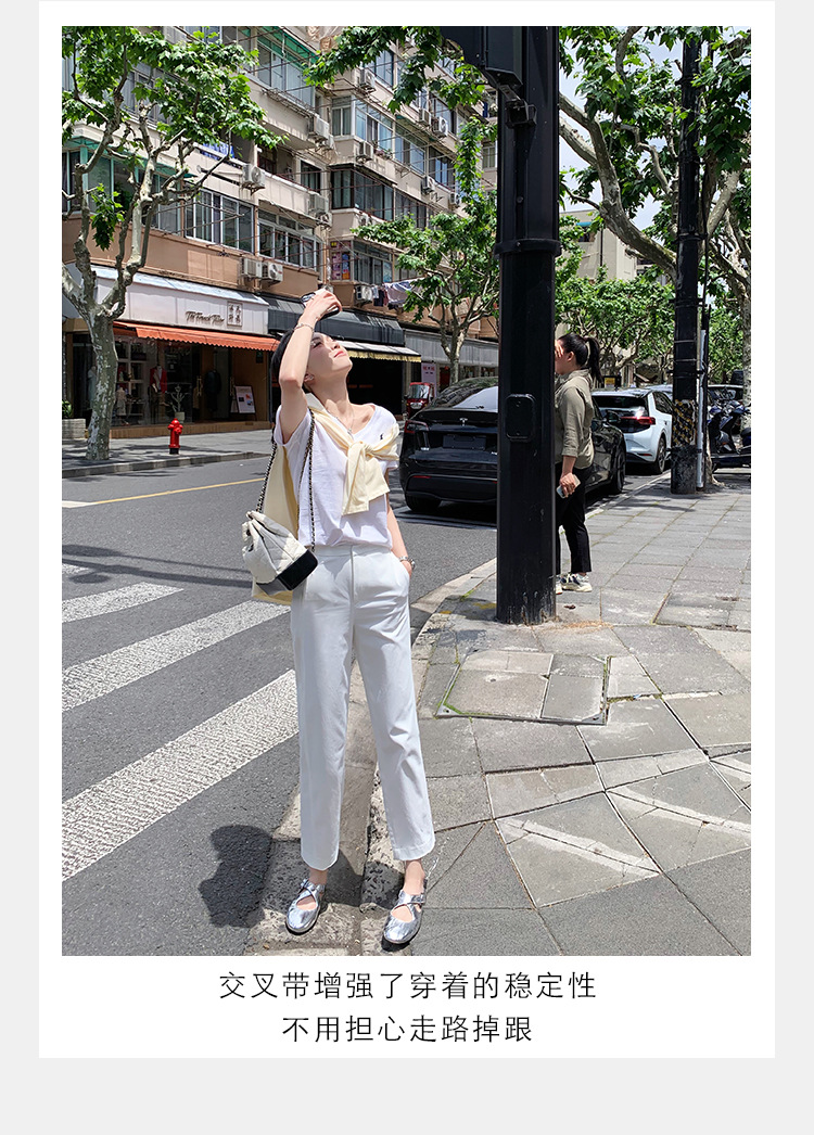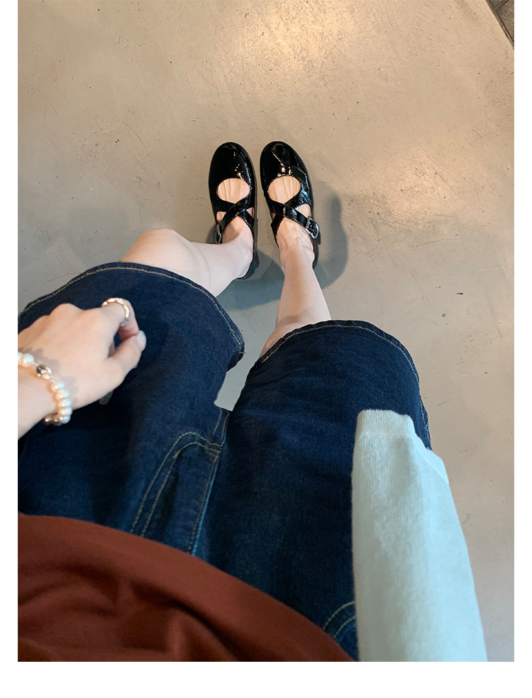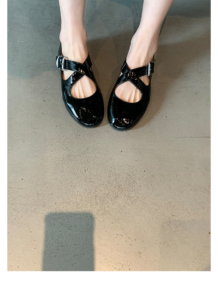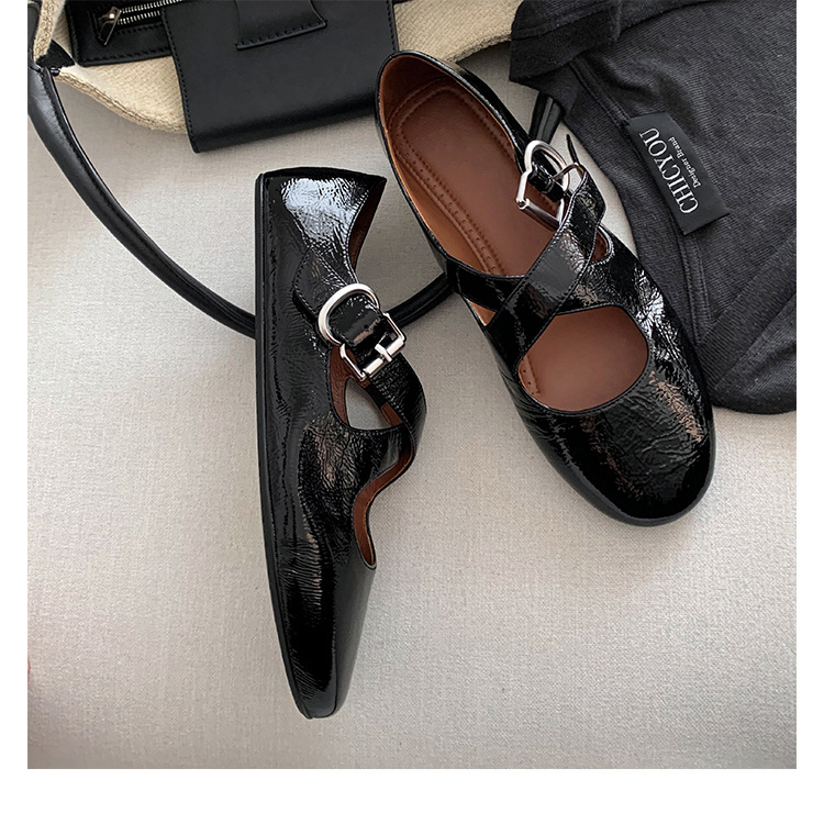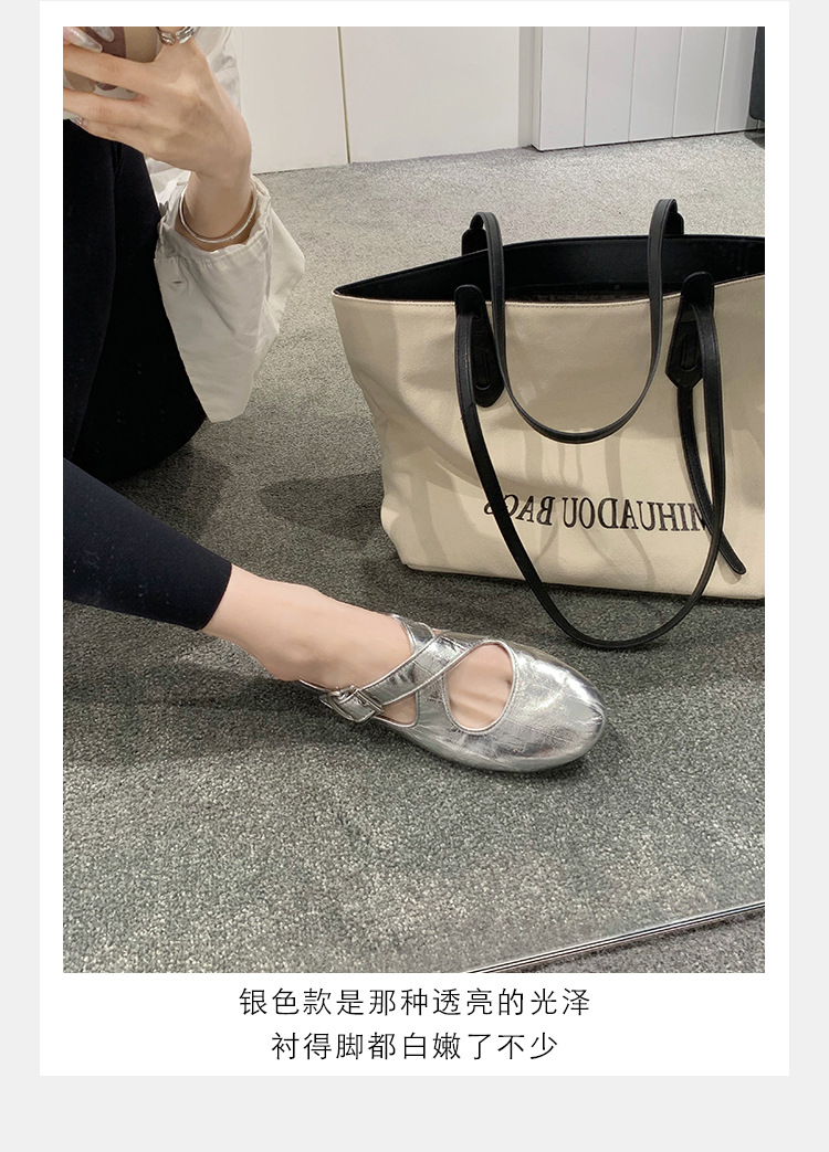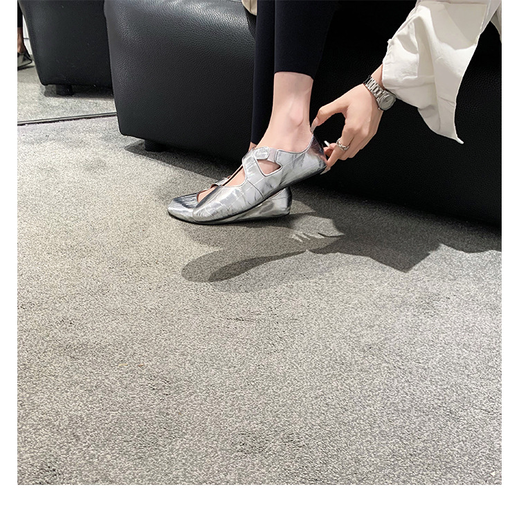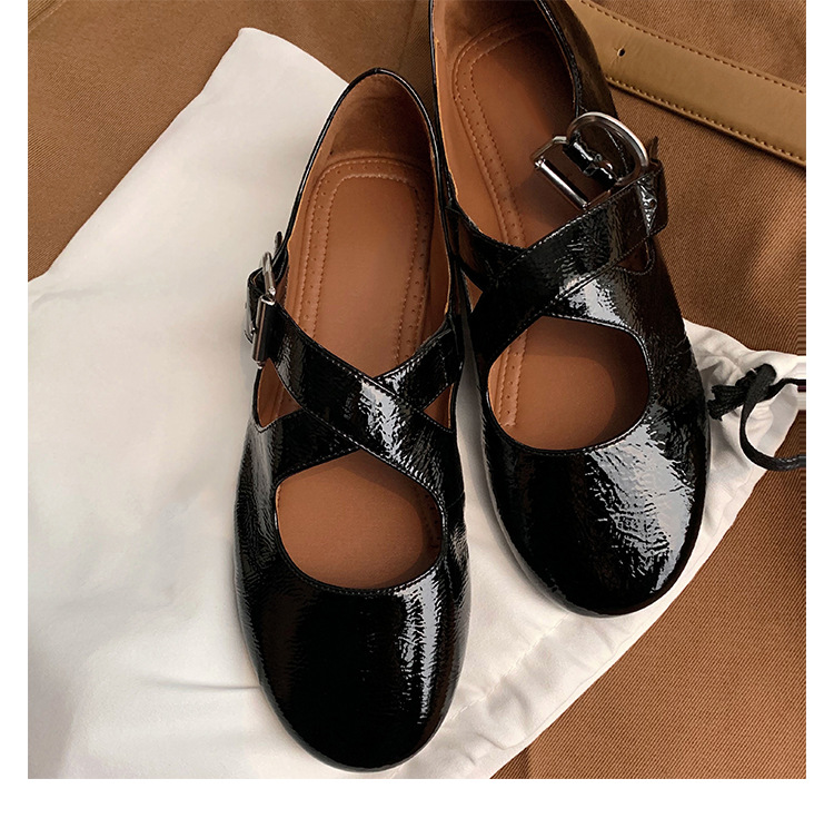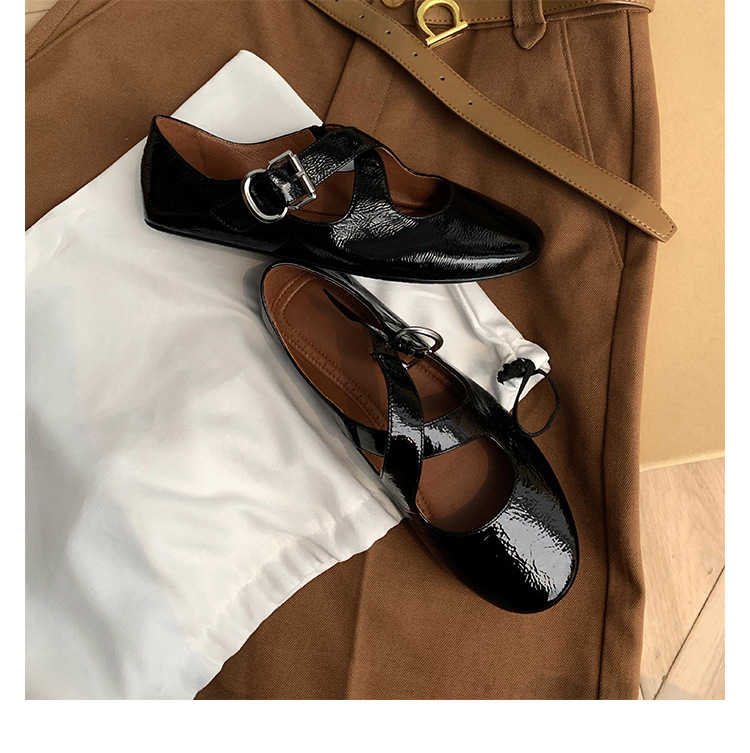 양가죽 ~ 정품 가죽 부드러운 밑창 실버 메리 제인 신발 여성 크로스 버클 라운드 토 발레 플랫 신발 작은 가죽 신발스토어 가기
