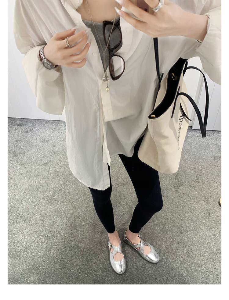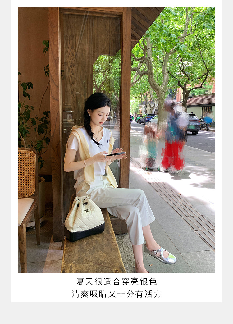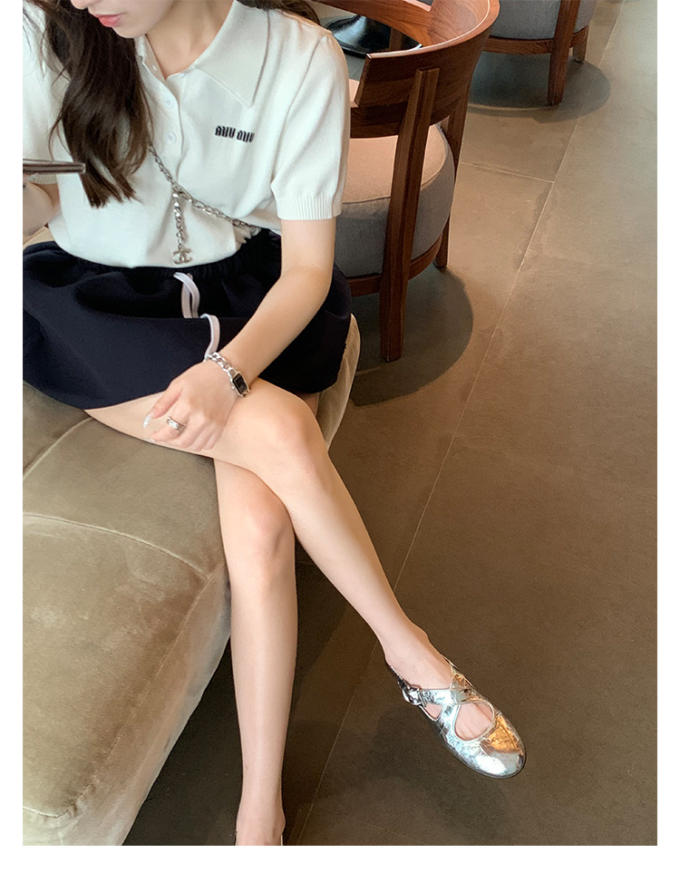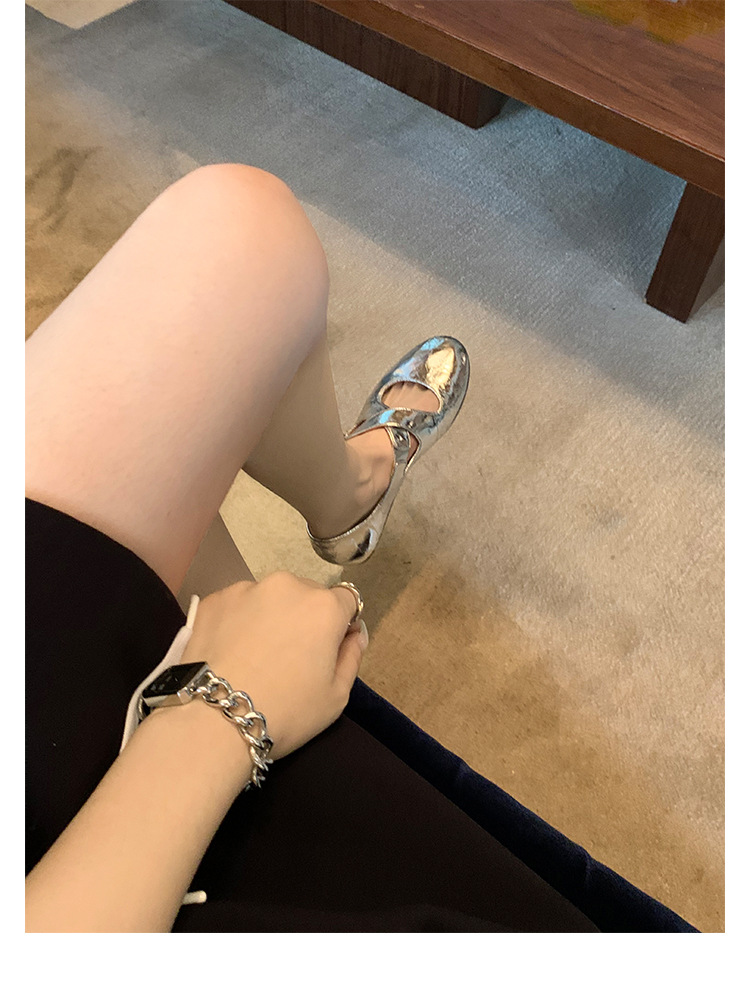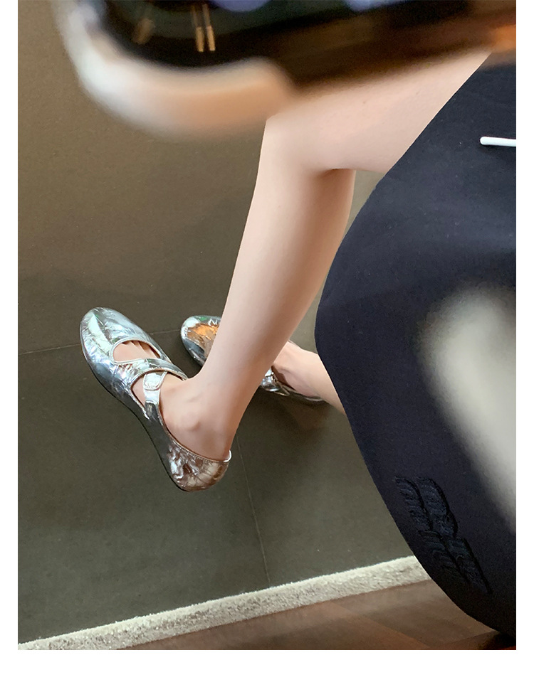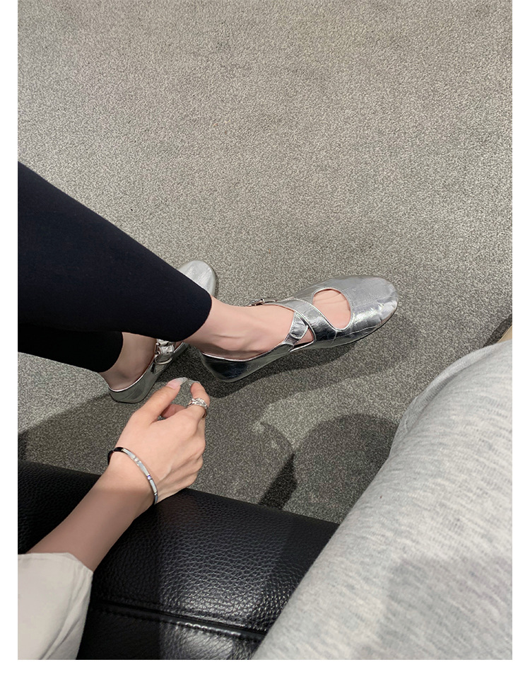 양가죽 ~ 정품 가죽 부드러운 밑창 실버 메리 제인 신발 여성 크로스 버클 라운드 토 발레 플랫 신발 작은 가죽 신발