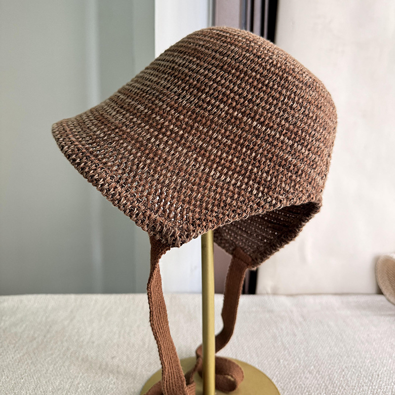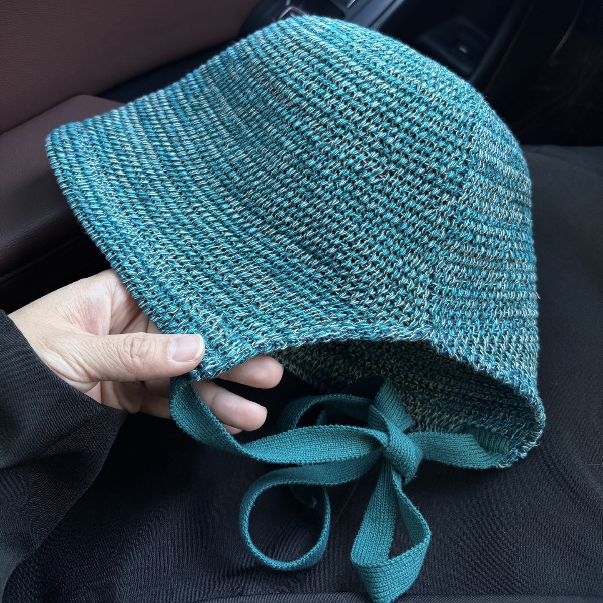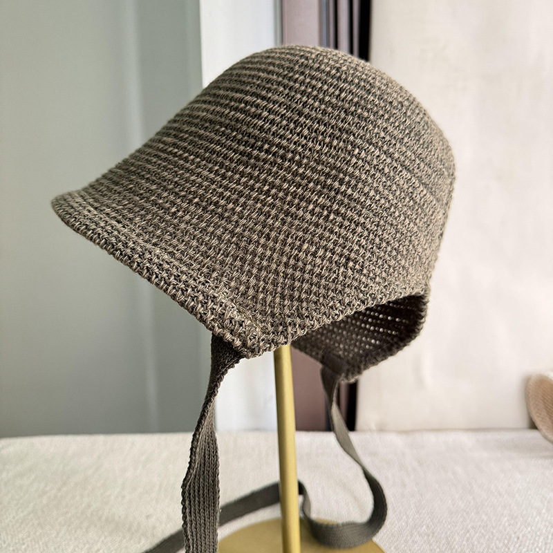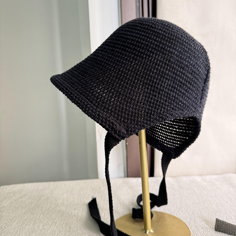出日本单倪妮同款渔夫帽女针织飘带黑色百搭开叉透气防晒洋气盆帽