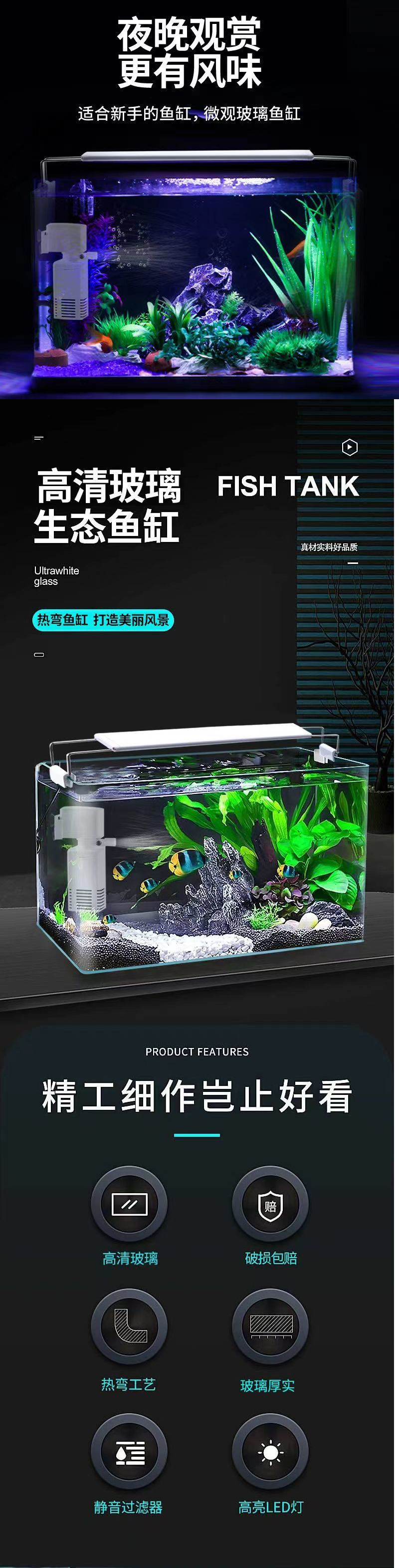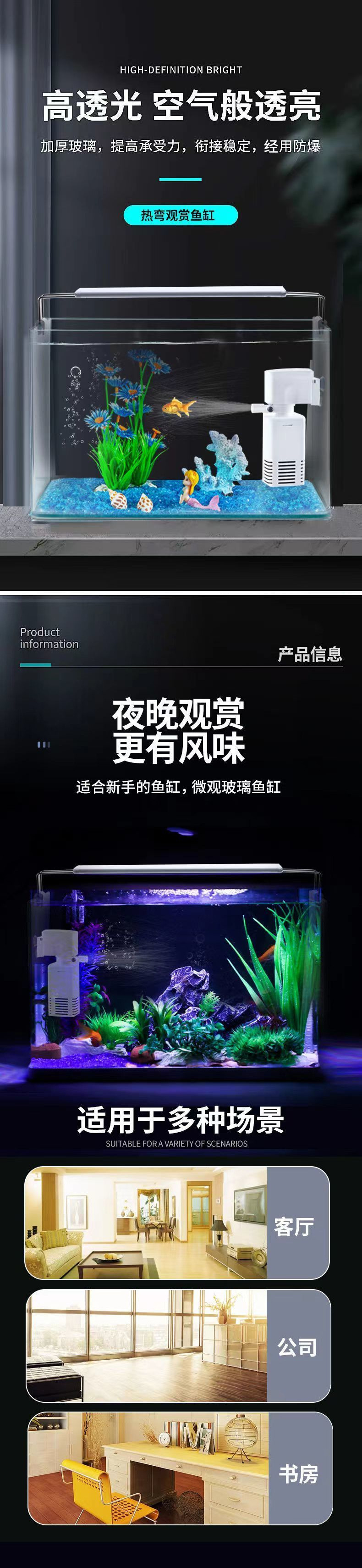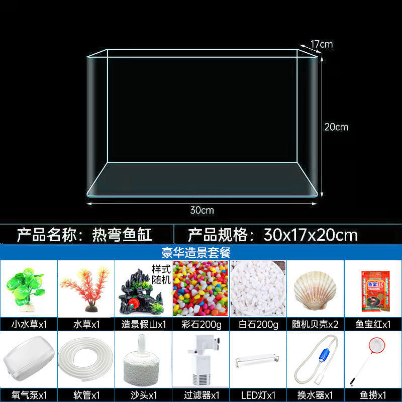 뜨거운 구부러진 유리 수조 거실 작은 수족관 데스크탑 홈 금붕어 수생 식물 조경 직사각형 생태 베어 탱크스토어 가기