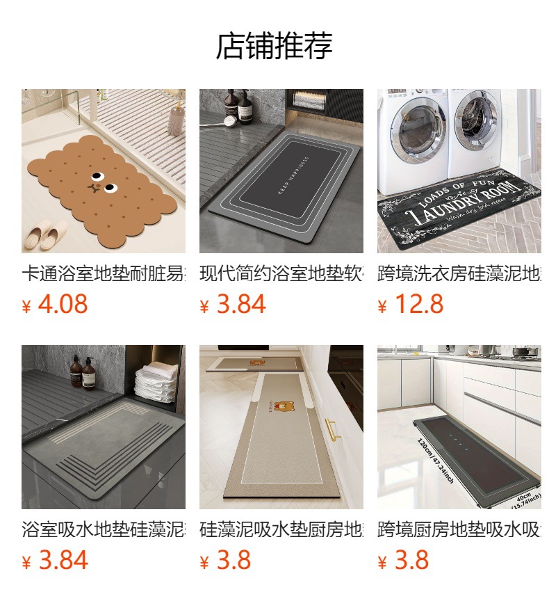 간단한 욕실 바닥 매트 가정용 흡수성 규조 진흙 바닥 매트 두꺼운 빠른 건조 내마모성 미끄럼 방지 매트 욕실 도어 용스토어 가기