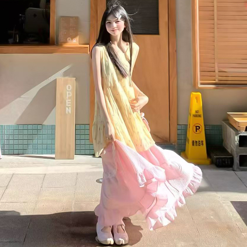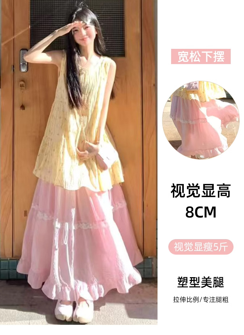 핑크 레이스 스커트 여자 여름 2025 새로운 높은 허리 슬리밍 A-라인 스커트 질감 달콤한 케이크 긴 치마