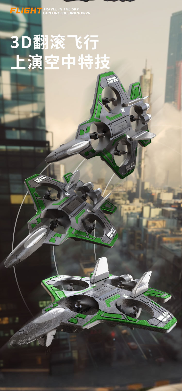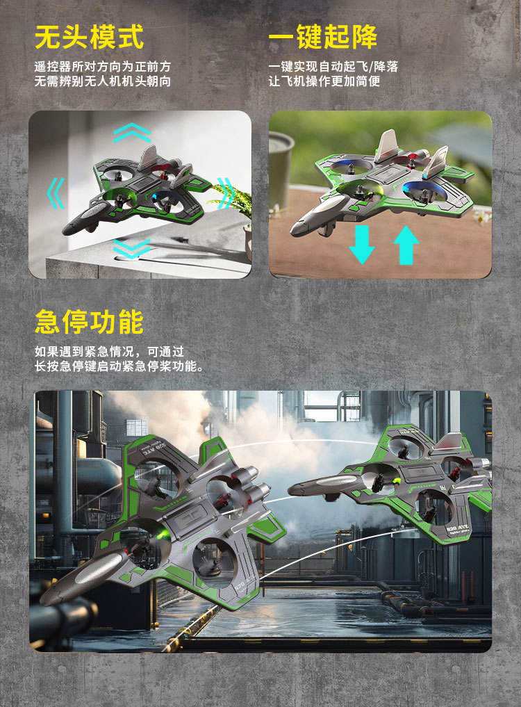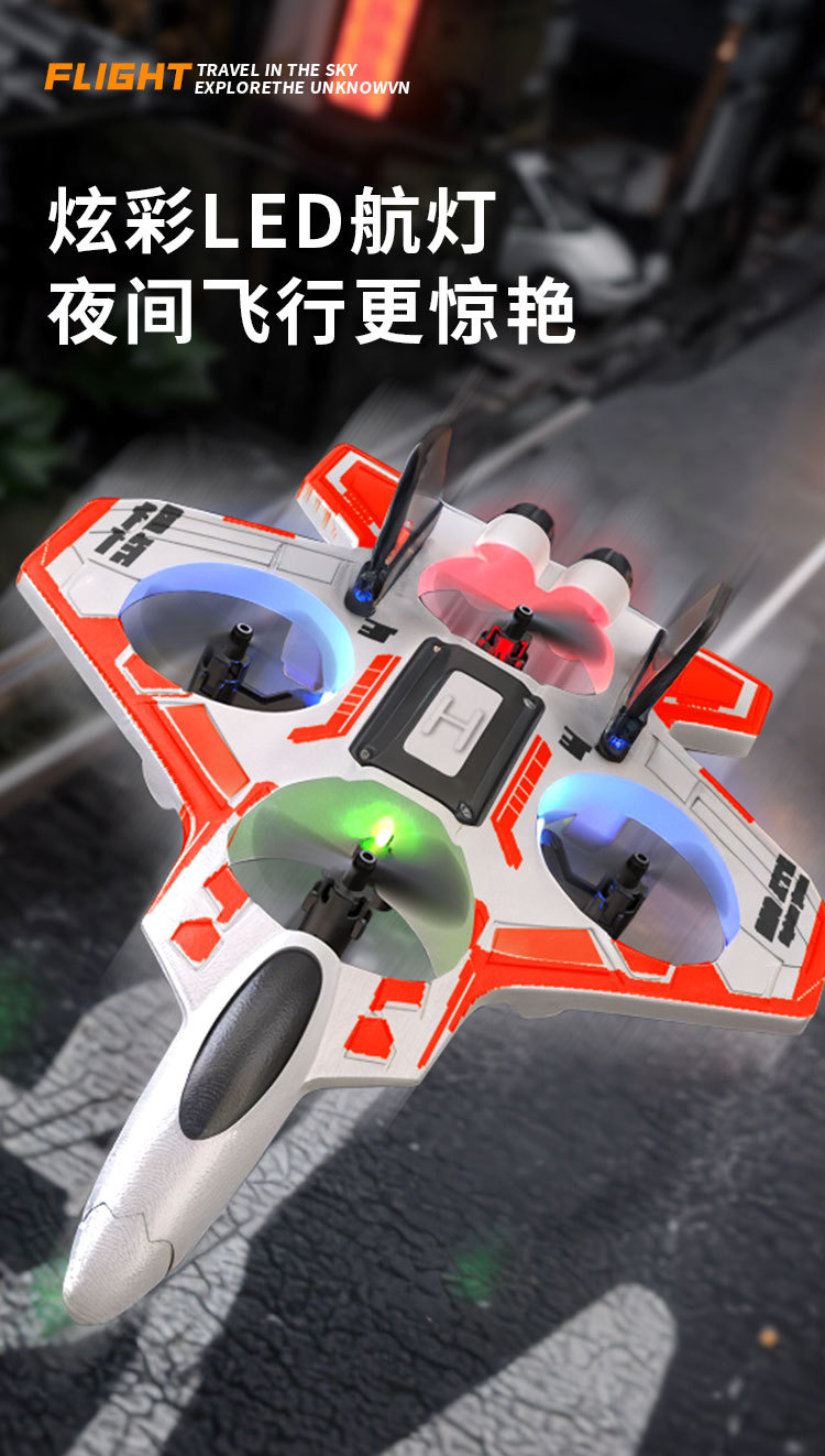 국경 간 새로운 4축 드론 폼 항공기 전기 원격 제어 낙하 방지 다채로운 조명 스턴트 고정 고도 항공기