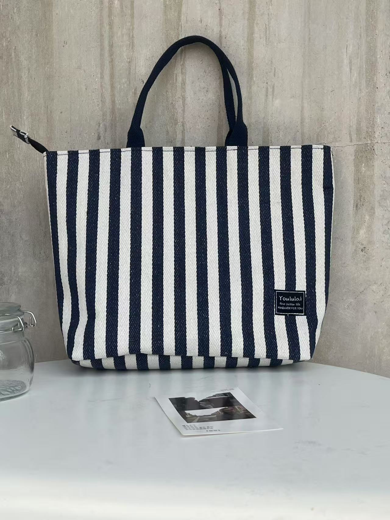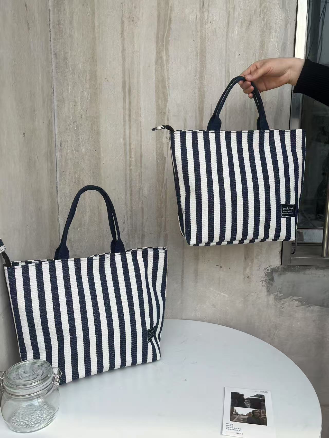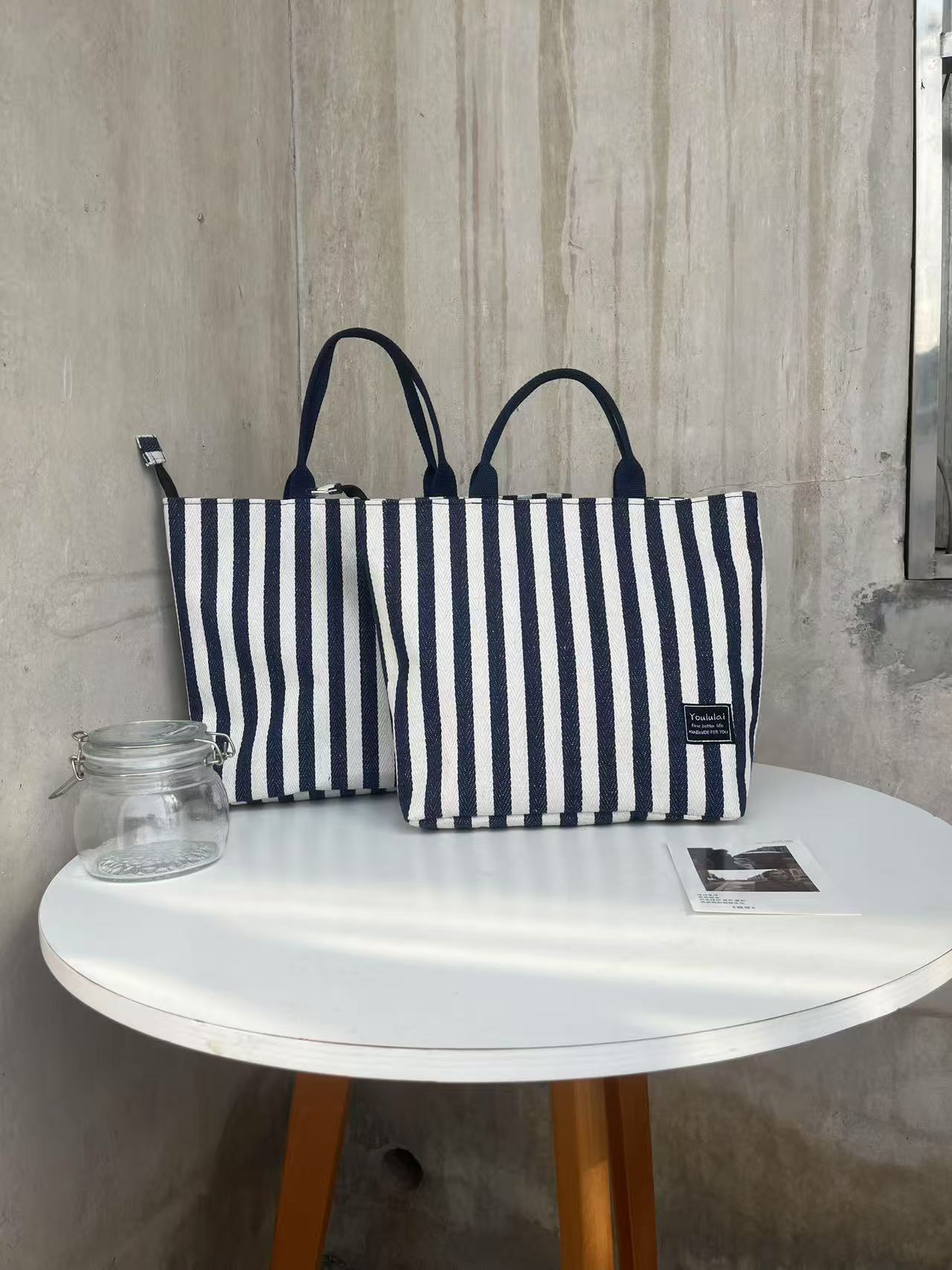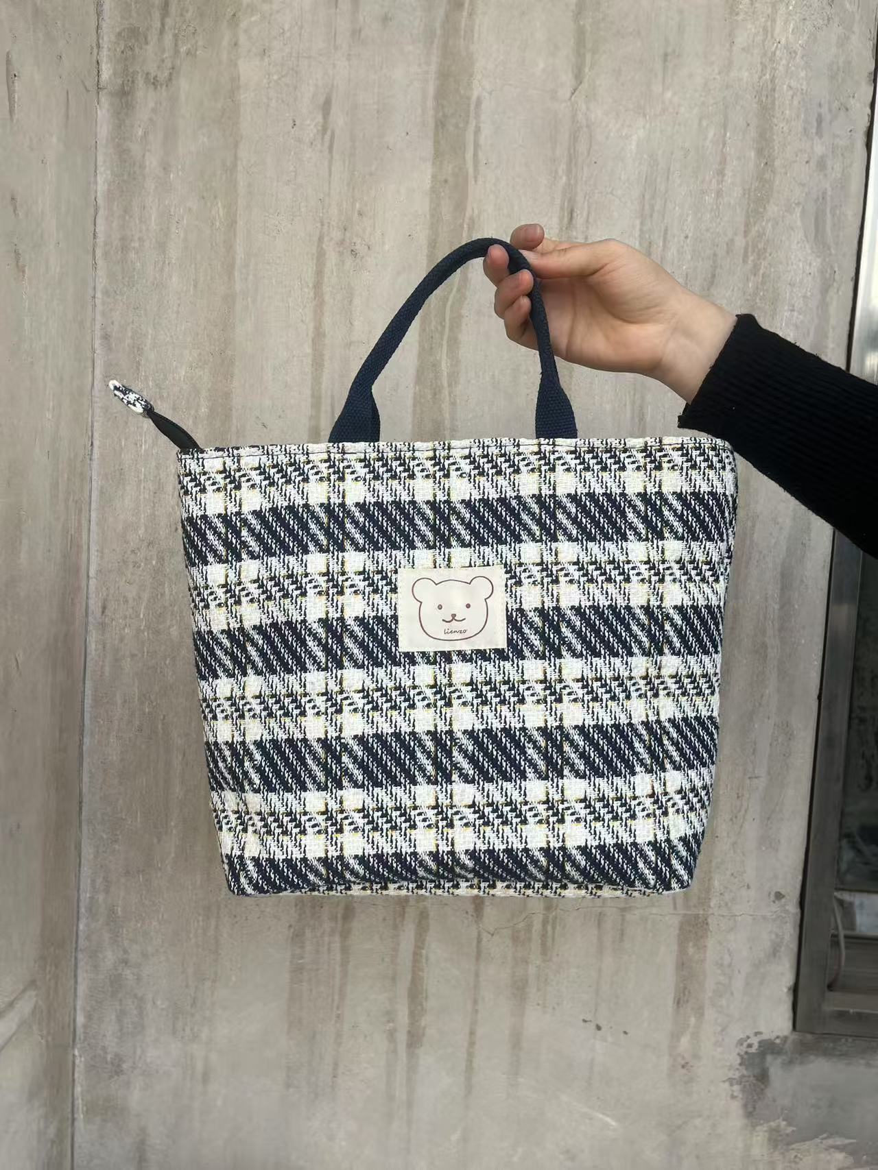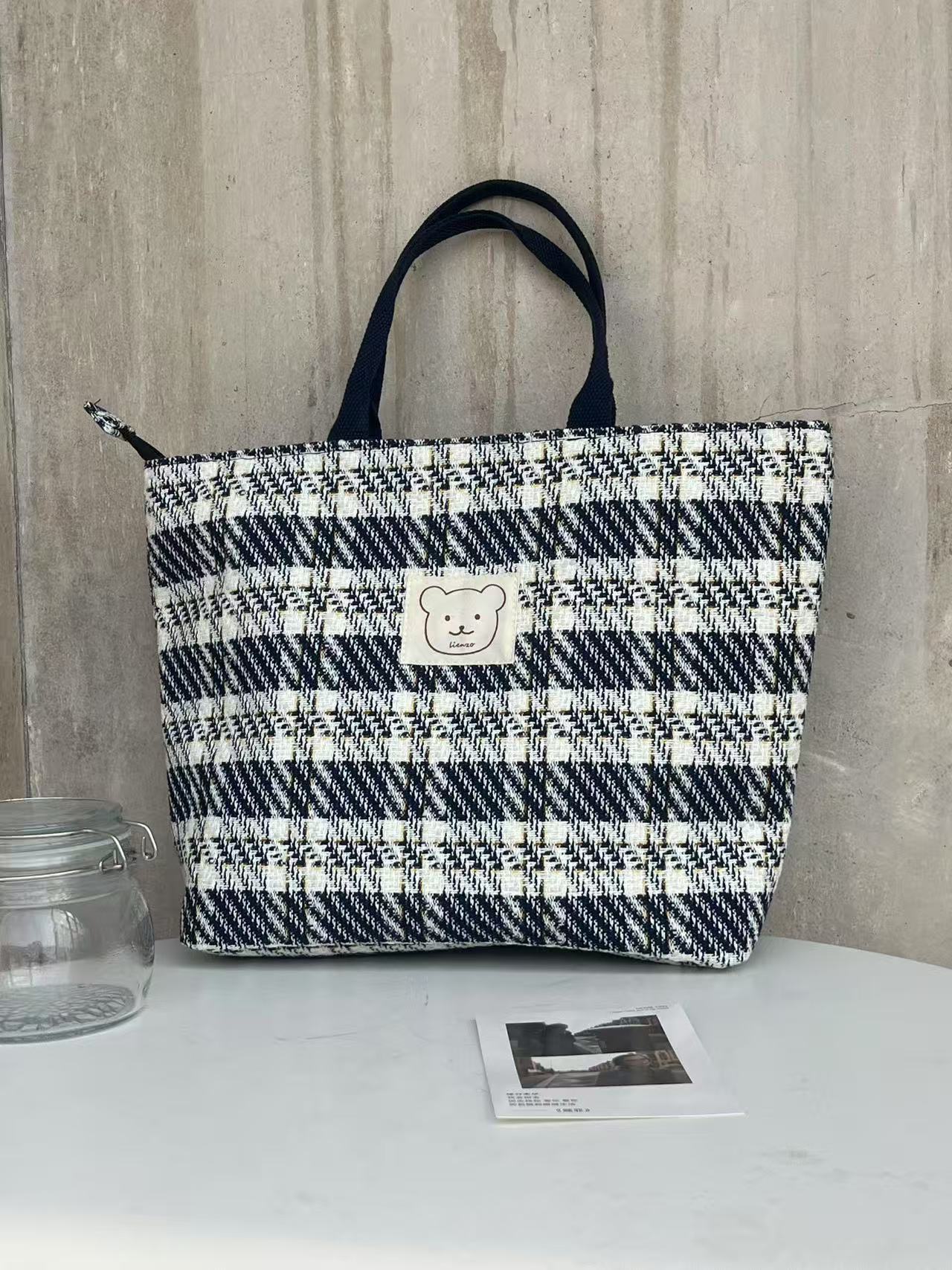 2025ins 토트 컴퓨터 가방 봄과 여름 새로운 격자 무늬 줄무늬 대용량 신선한 지퍼 휴대용 캔버스 가방스토어 가기