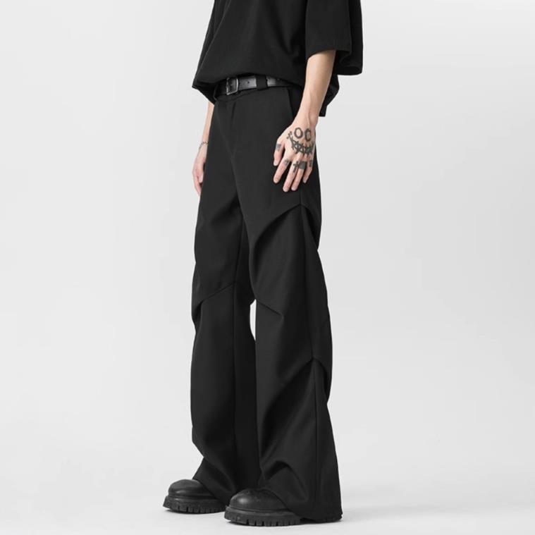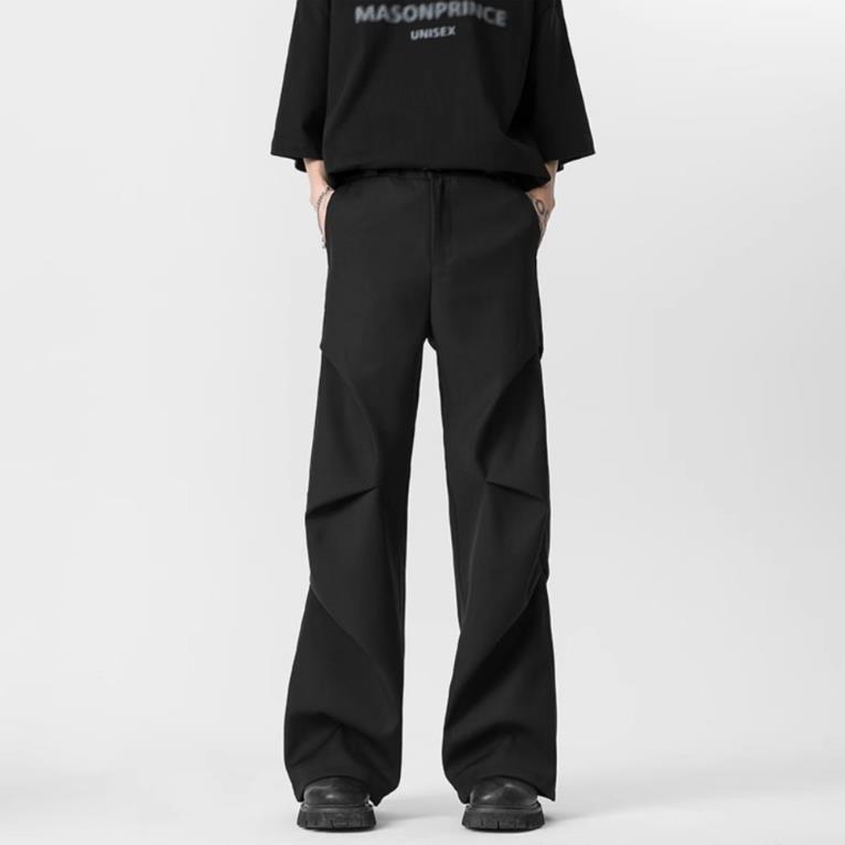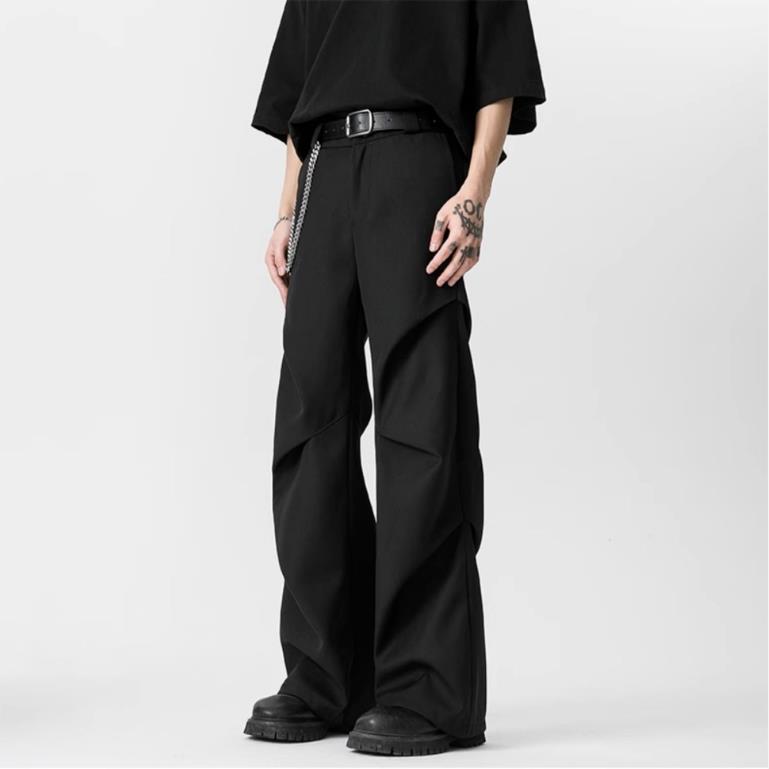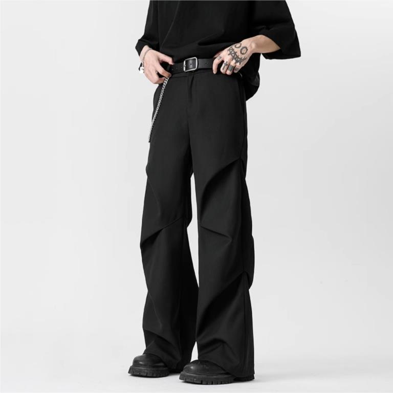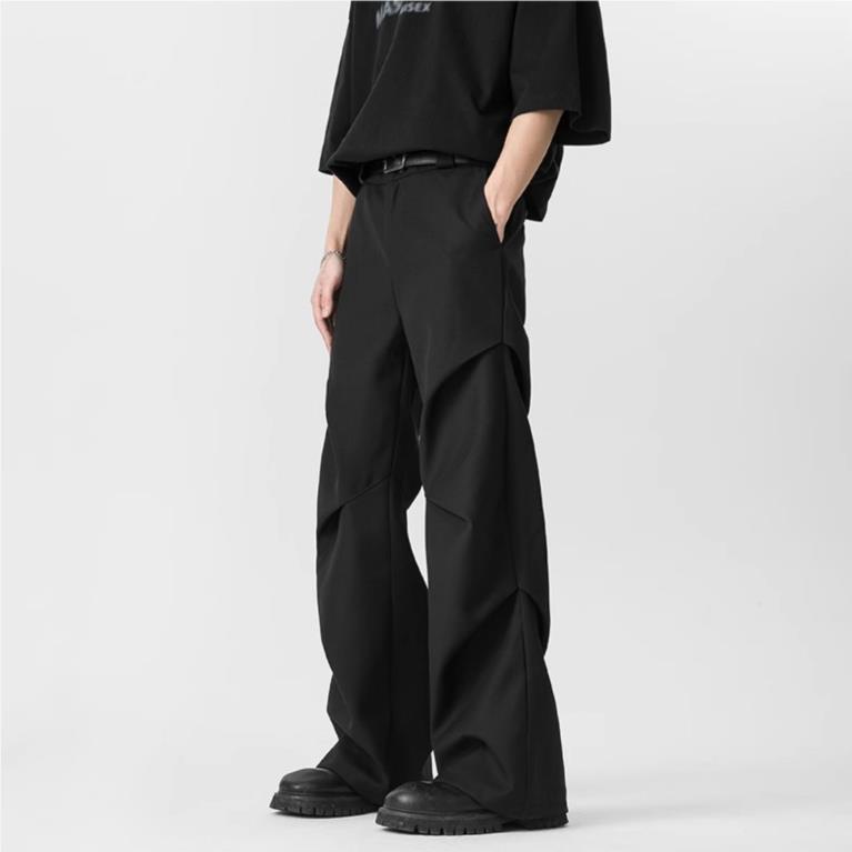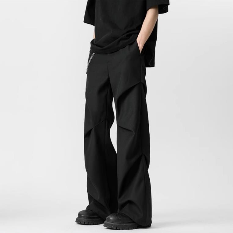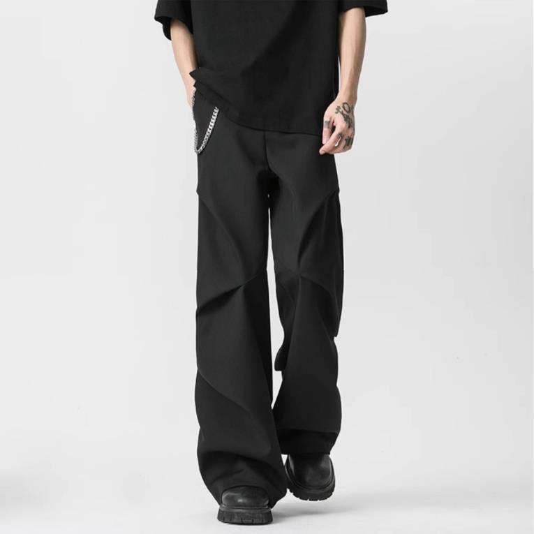 아메리칸 스타일 마이크로 폴드 캐주얼 블랙 바지 남성용 트렌디 브랜드 새로운 느슨한 스트레이트 클렌핏 긴 바지