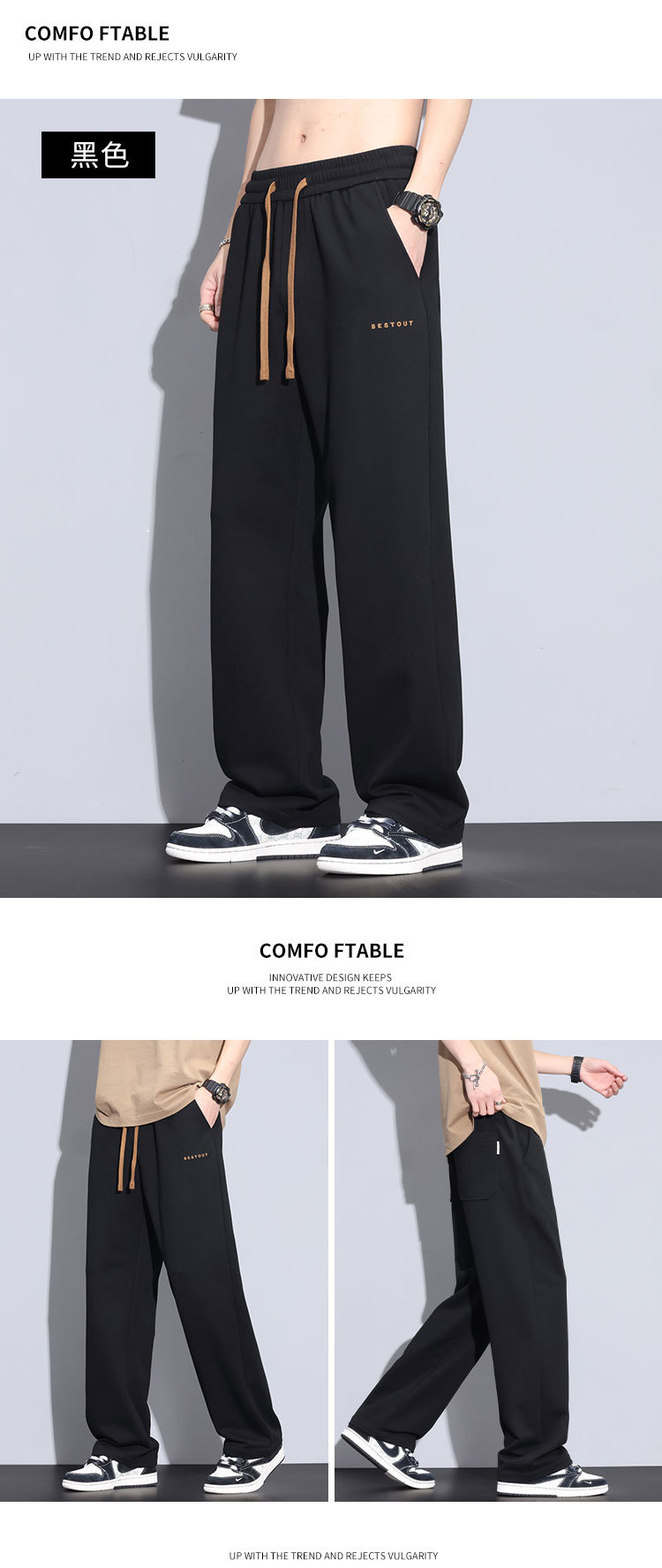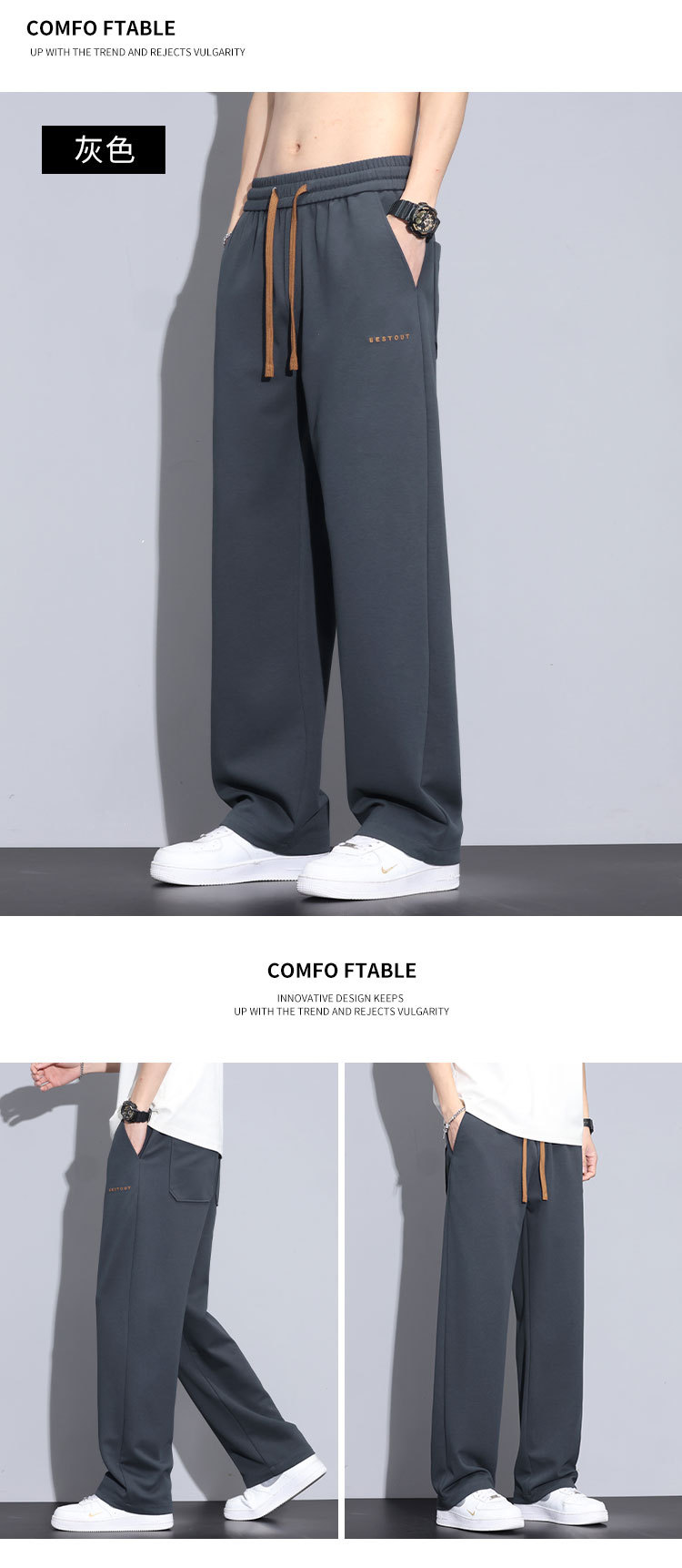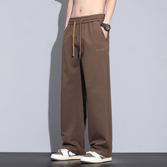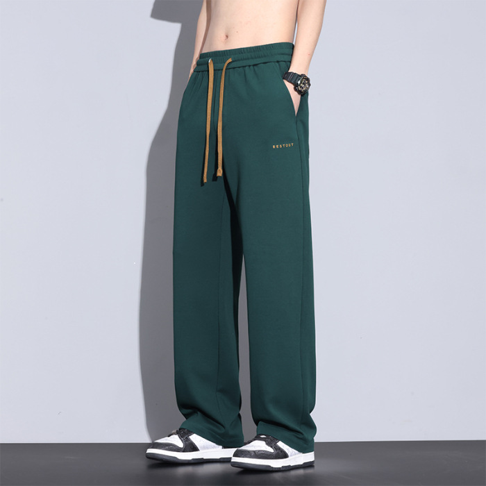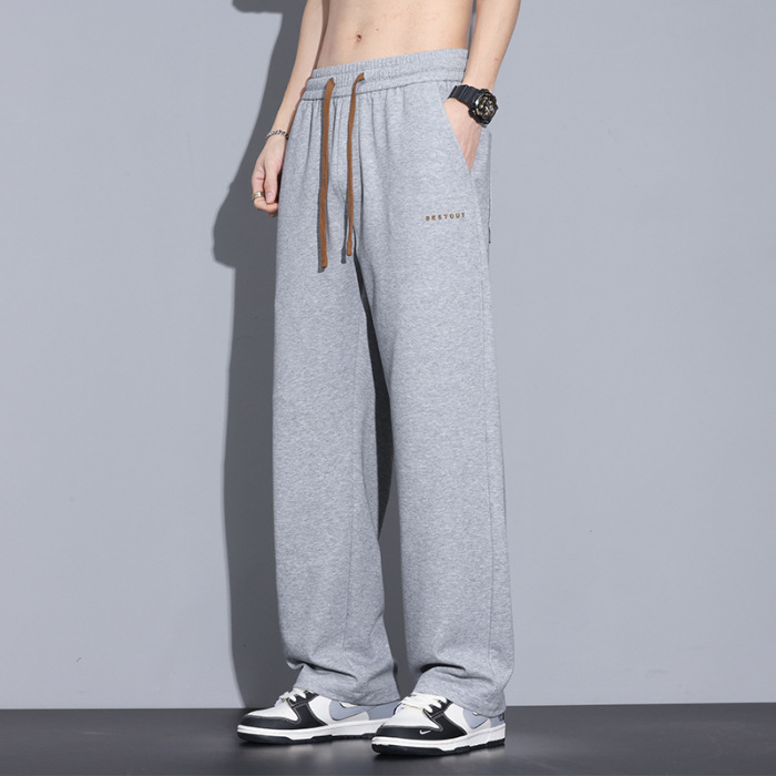 패션 면 바지 남성 여름 얇은 2025 새로운 패션 브랜드 느슨한 직선 넓은 다리 바지스토어 가기