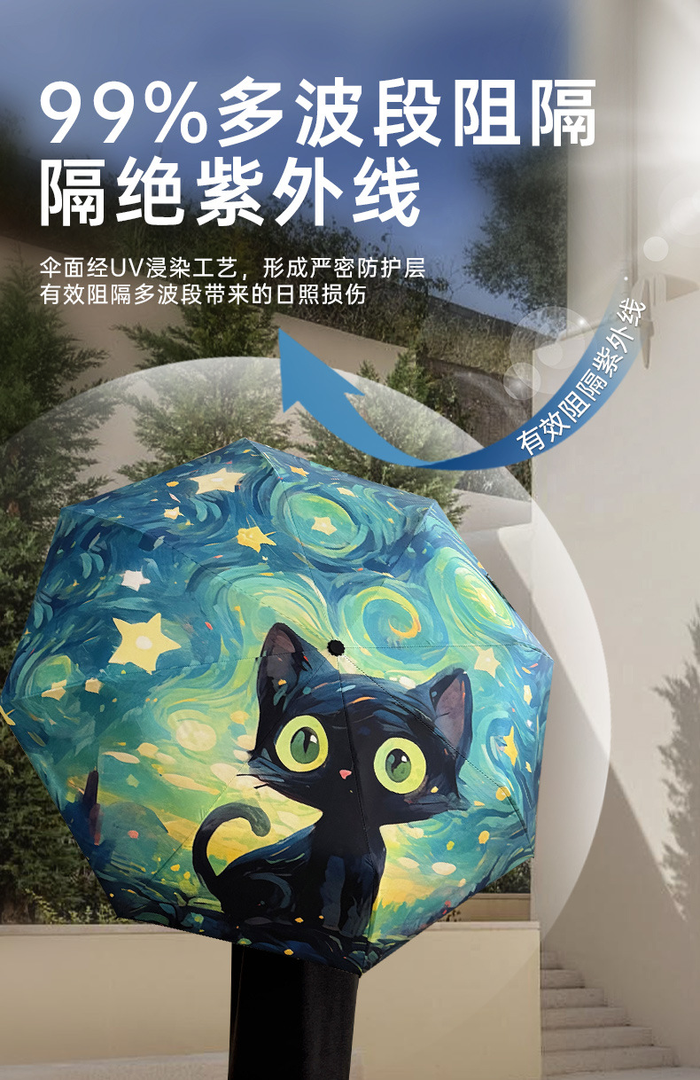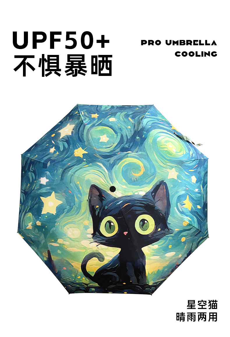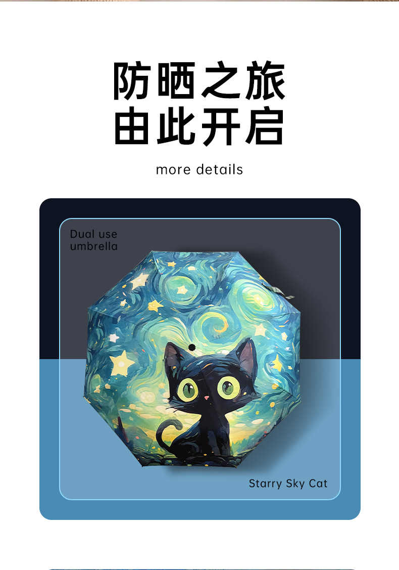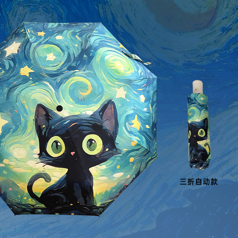 귀여운 반 고흐 고양이 접히는 우산 맑고 비 이중 목적 태양 우산 자동 검은 고무 태양 보호 자외선 보호 햇살 우산스토어 가기
