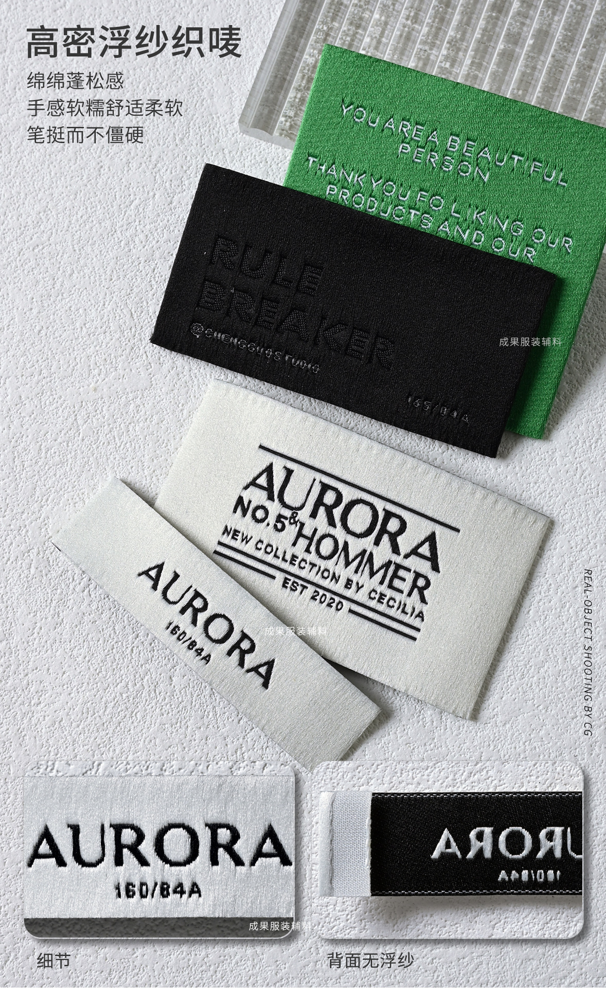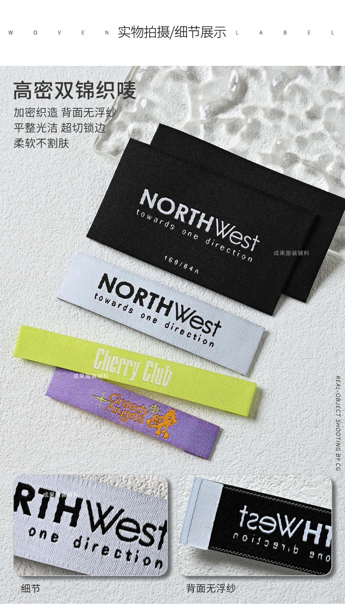 • 고밀도 플로팅 원사 직조 라벨